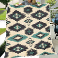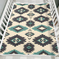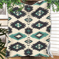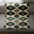 Indigenous Tribal DiamondBlanket, Black Teal Geometric Pattern