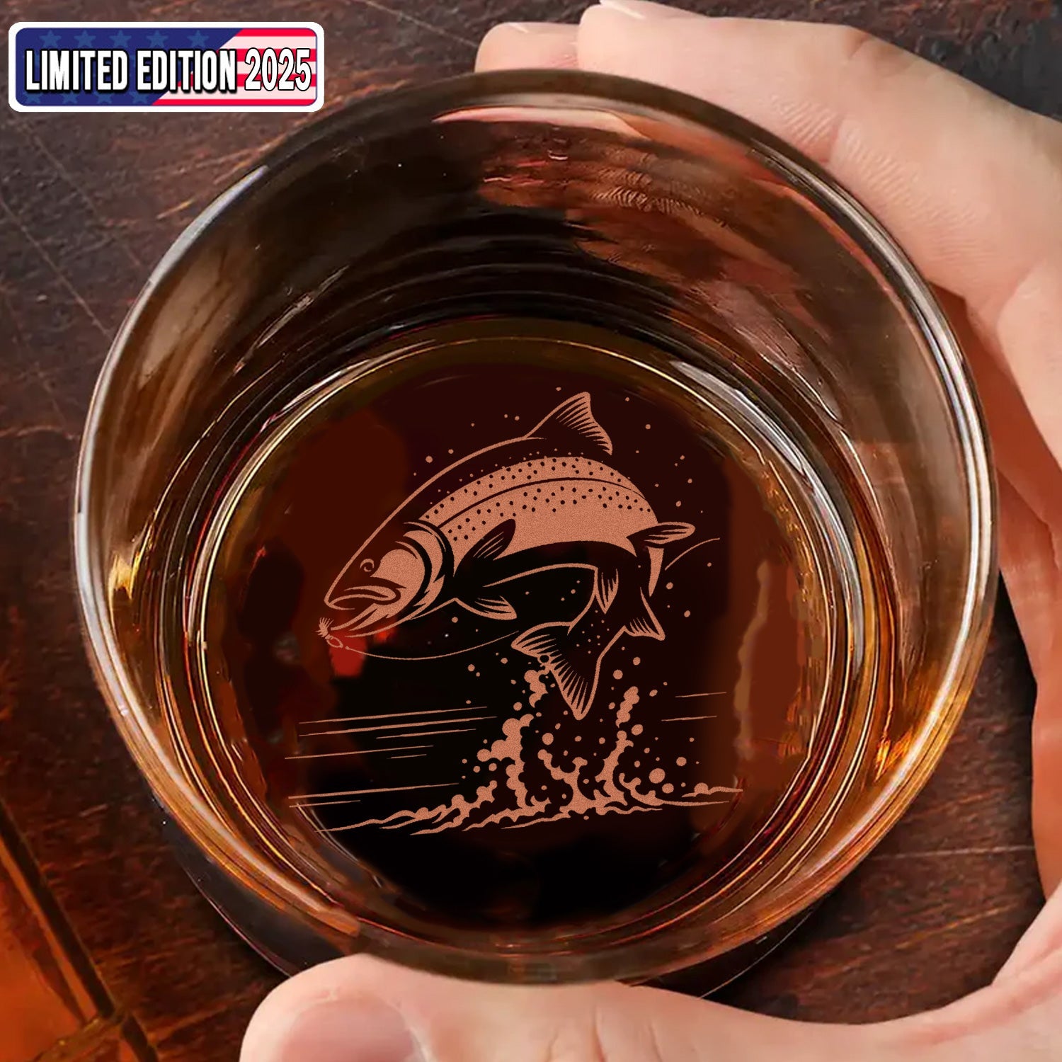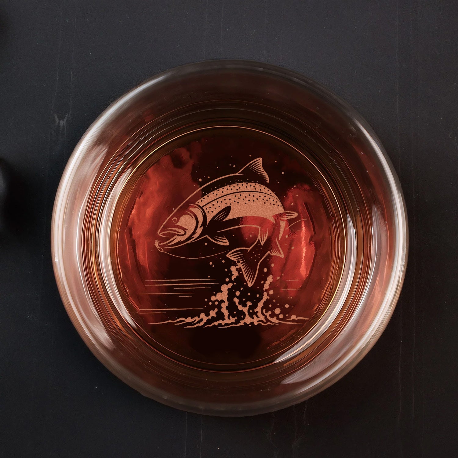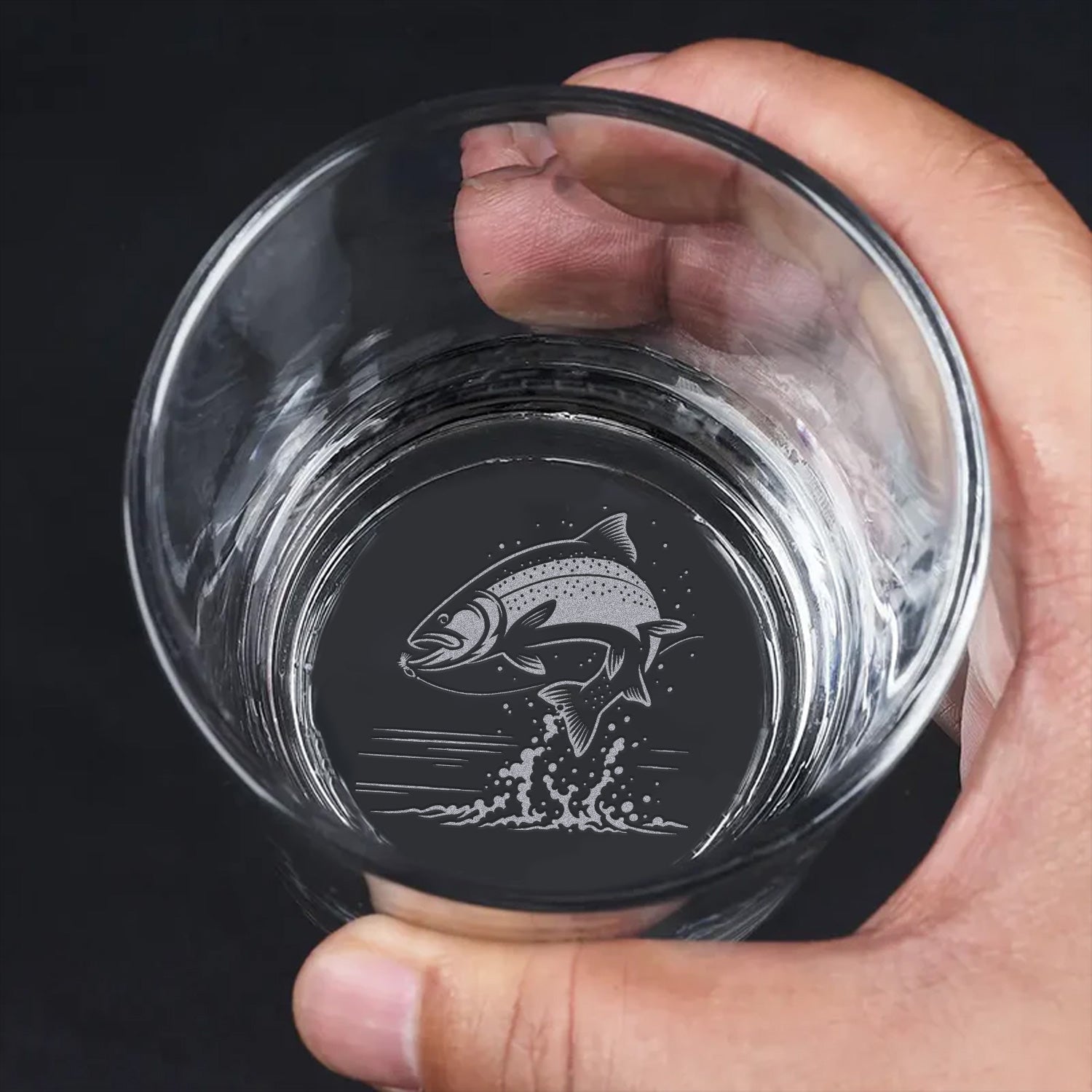 Fishing Engraved Whiskey Glass – Fish Design - Unique Gift for Fishermen & Outdoor Lovers