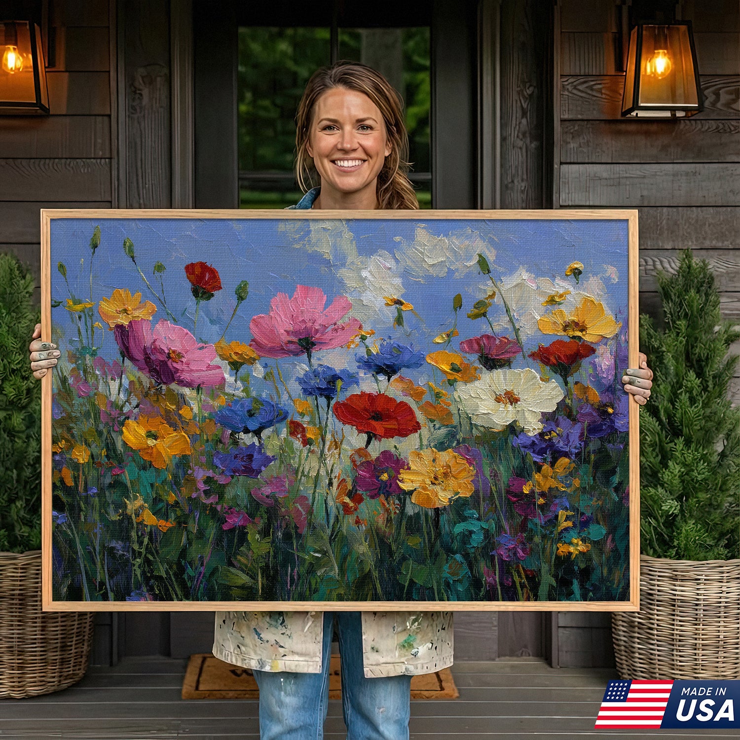 Joyful Bloom Floral Canvas – Expressive Wild Flowers Art