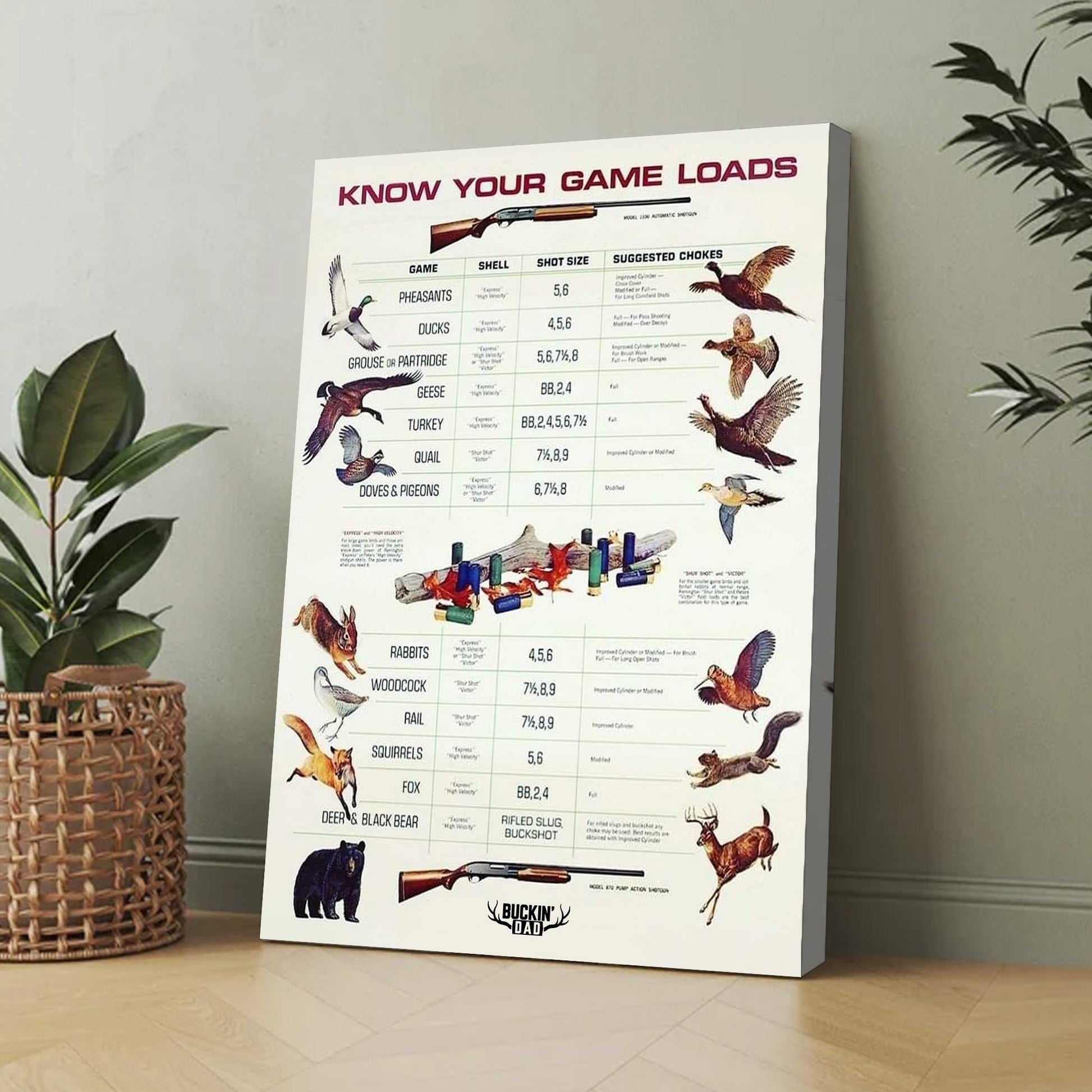 Know Your Game Loads Canvas Art - Hunting Ammo Guide | Perfect Gift for Hunters & Outdoor Enthusiasts