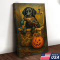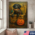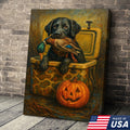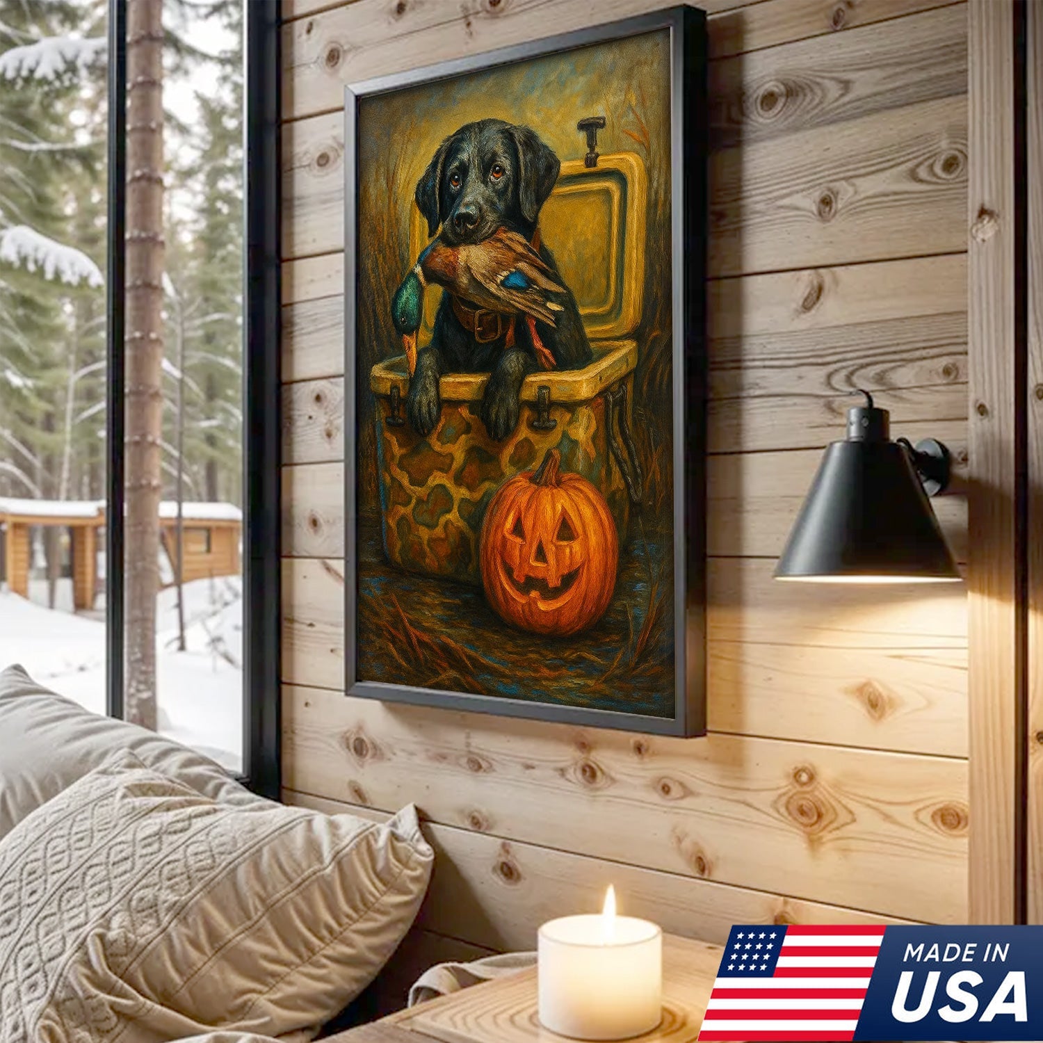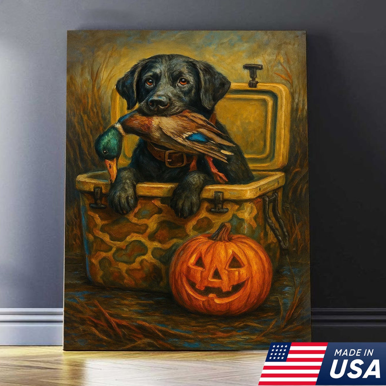 Labrador Retriever Hunting Dog Canvas Wall Art – Black Lab with Duck and Halloween Pumpkin Decor
