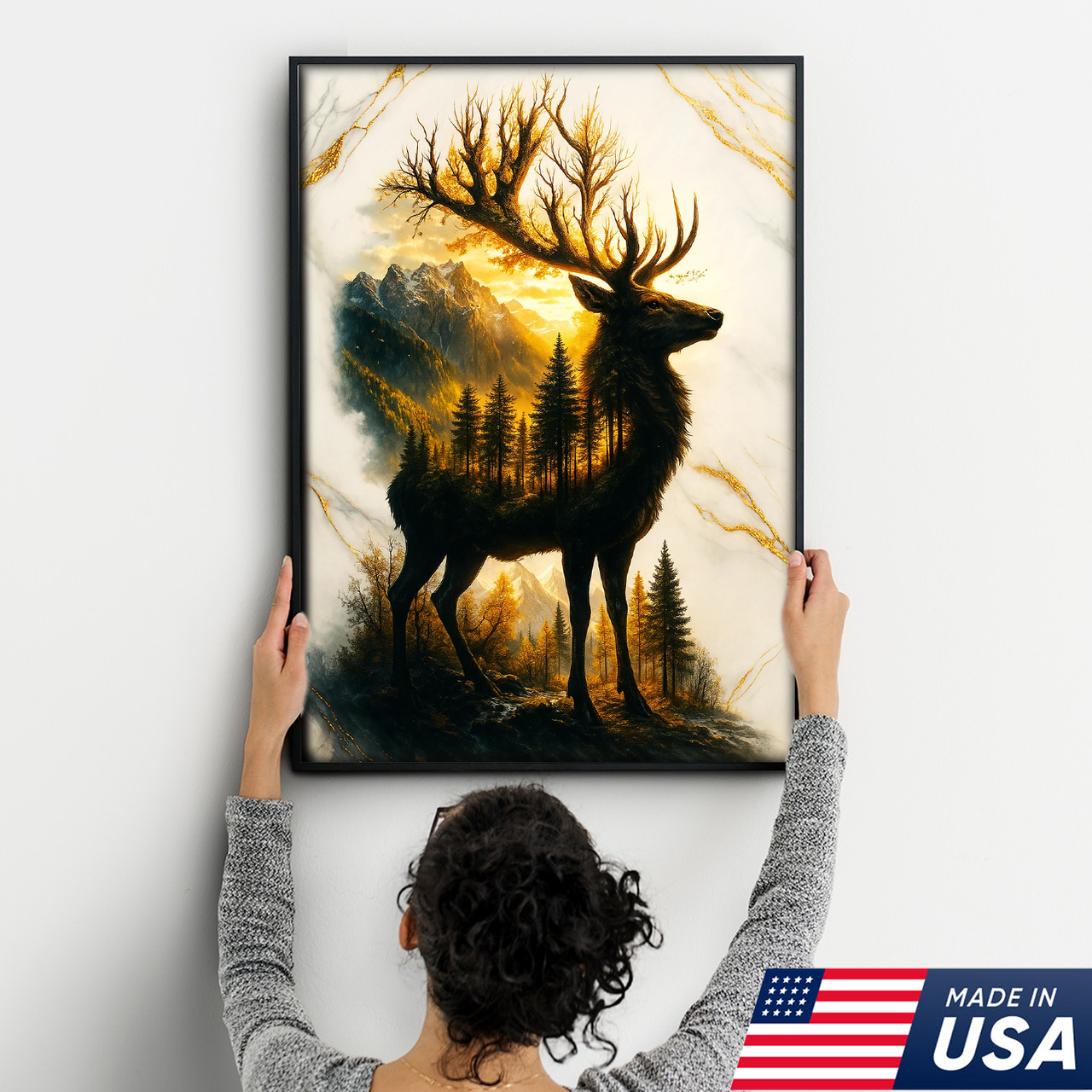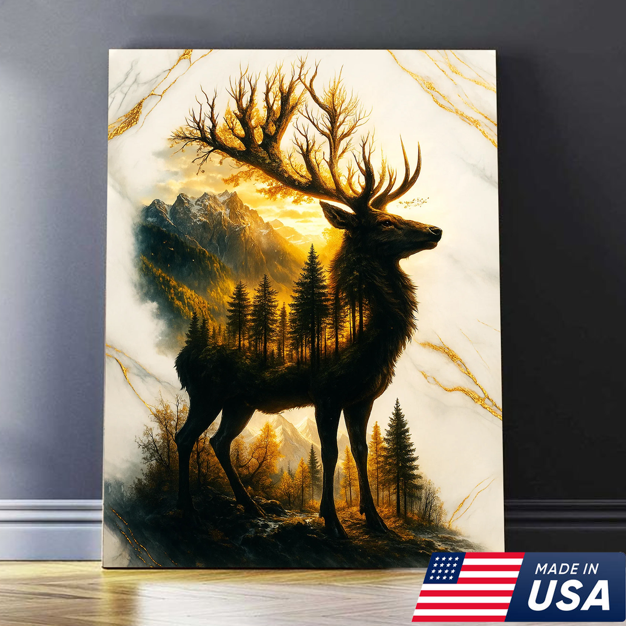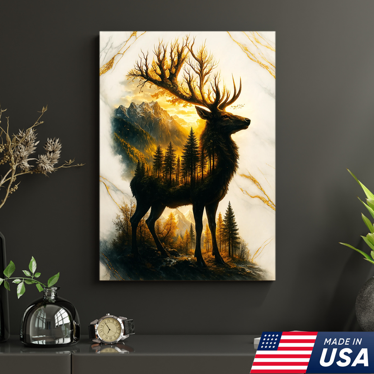 Majestic Deer Canvas Wall Art – Rustic Wildlife Decor, Forest Landscape within Buck Silhouette, Mountain Lodge Artwork