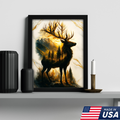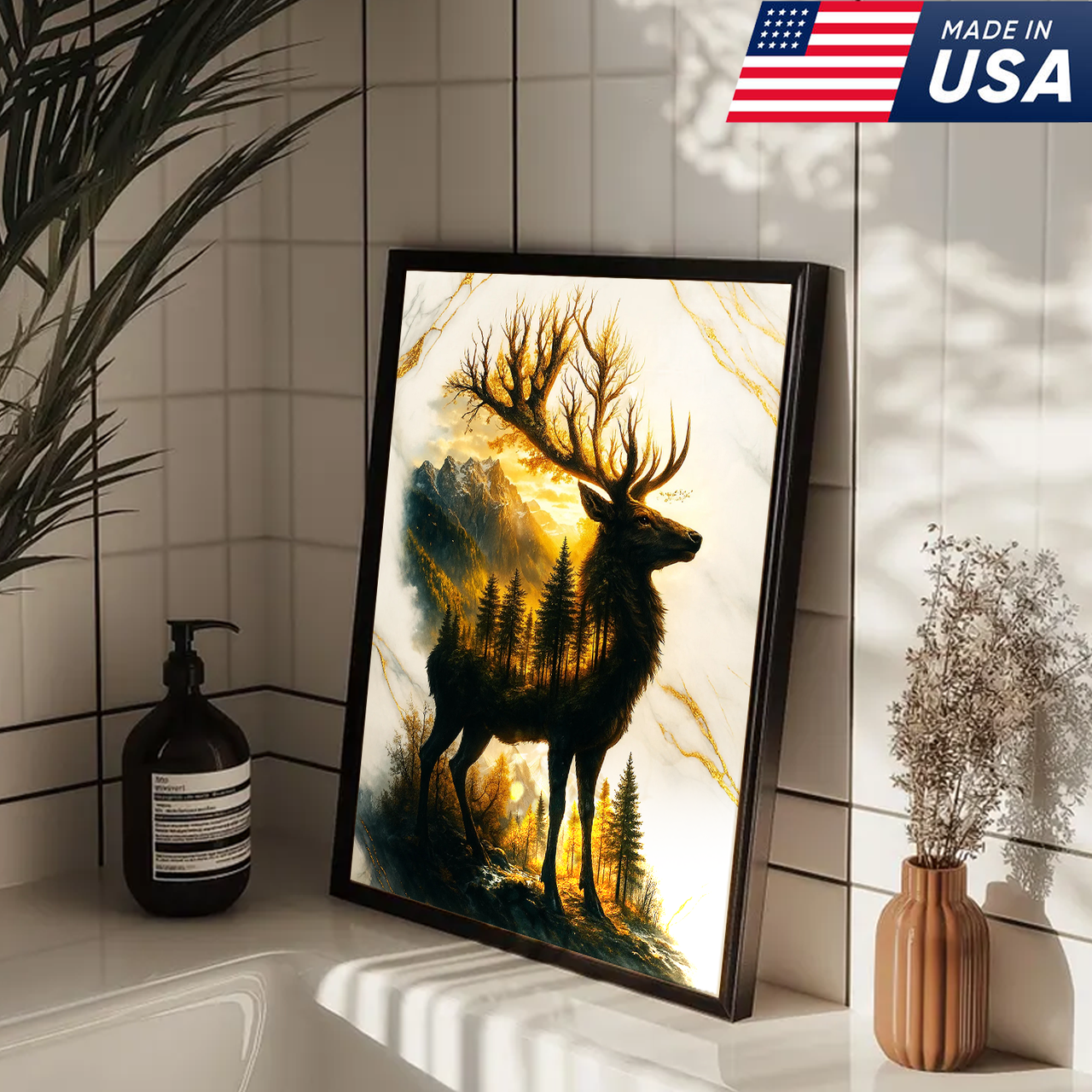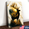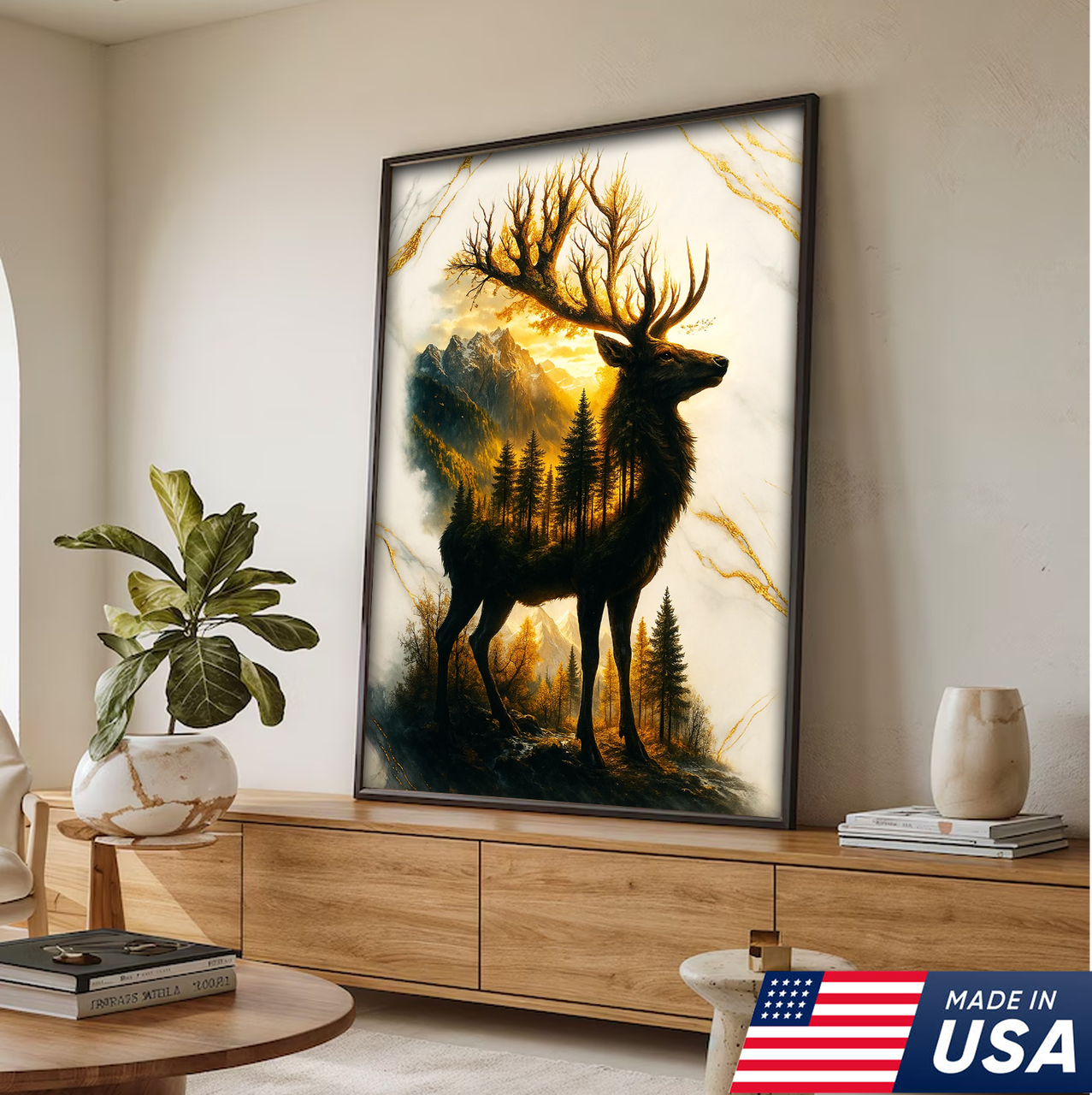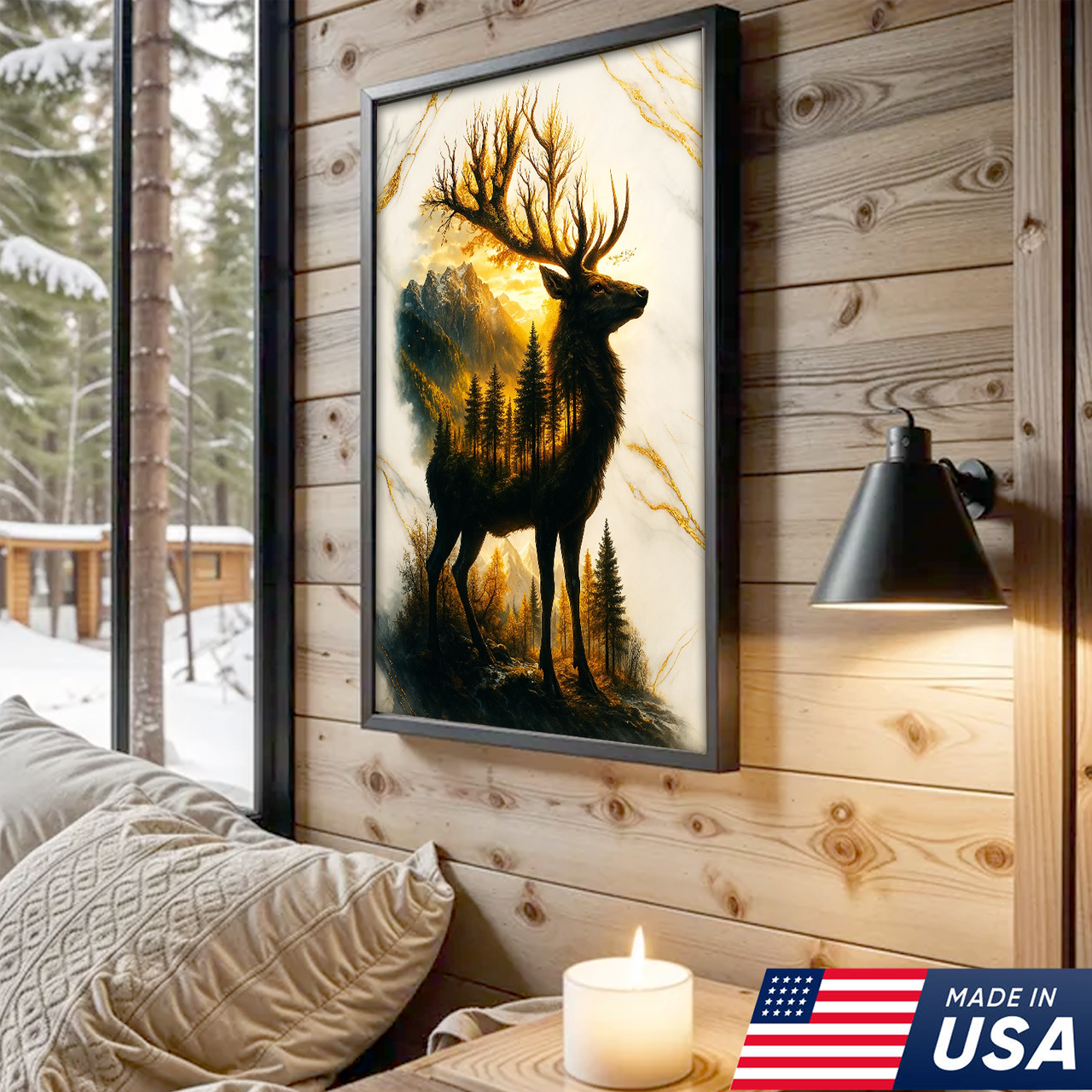 Majestic Deer Canvas Wall Art – Rustic Wildlife Decor, Forest Landscape within Buck Silhouette, Mountain Lodge Artwork