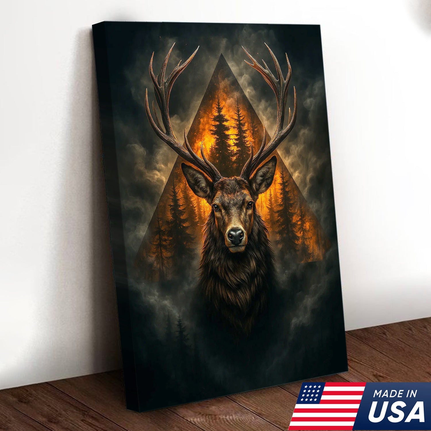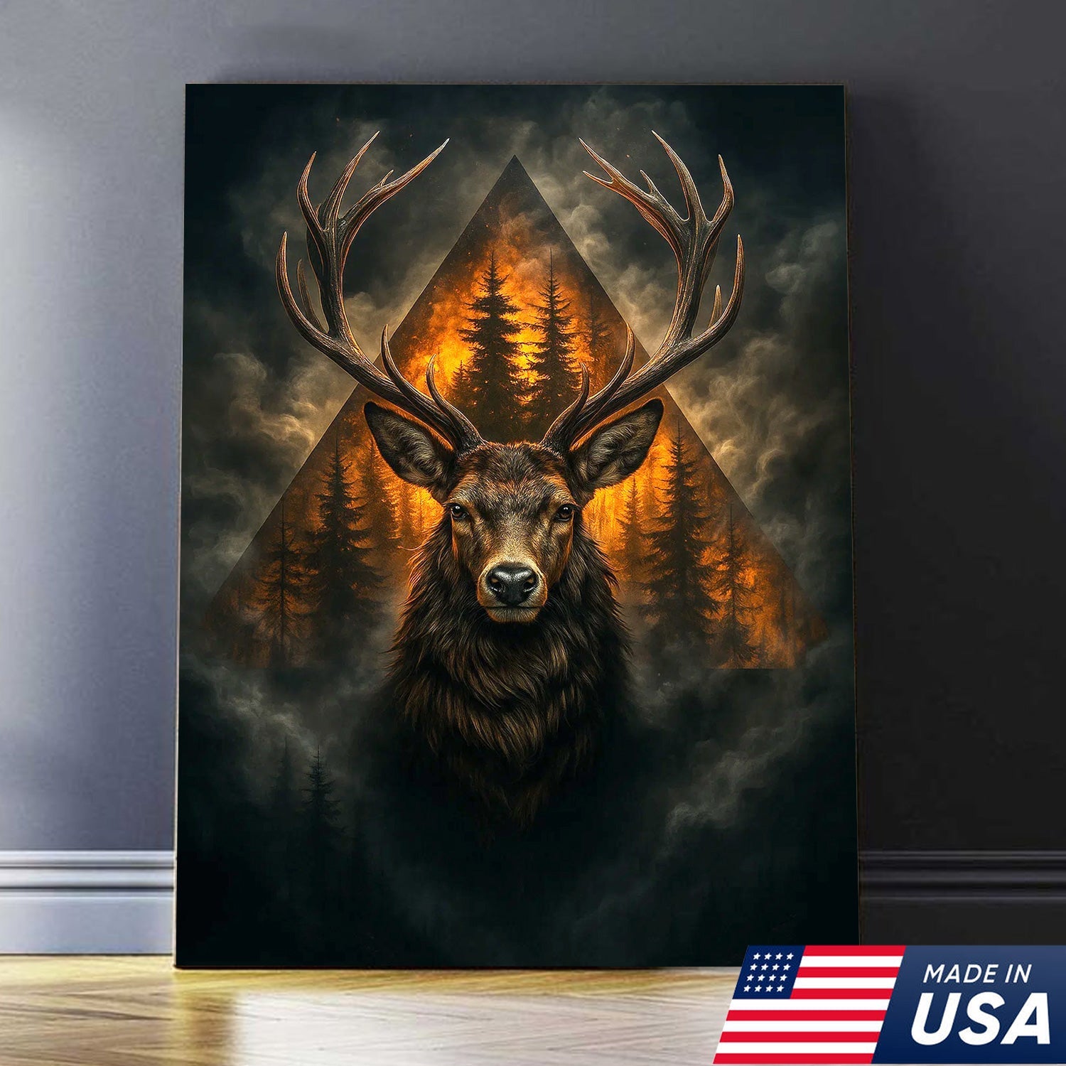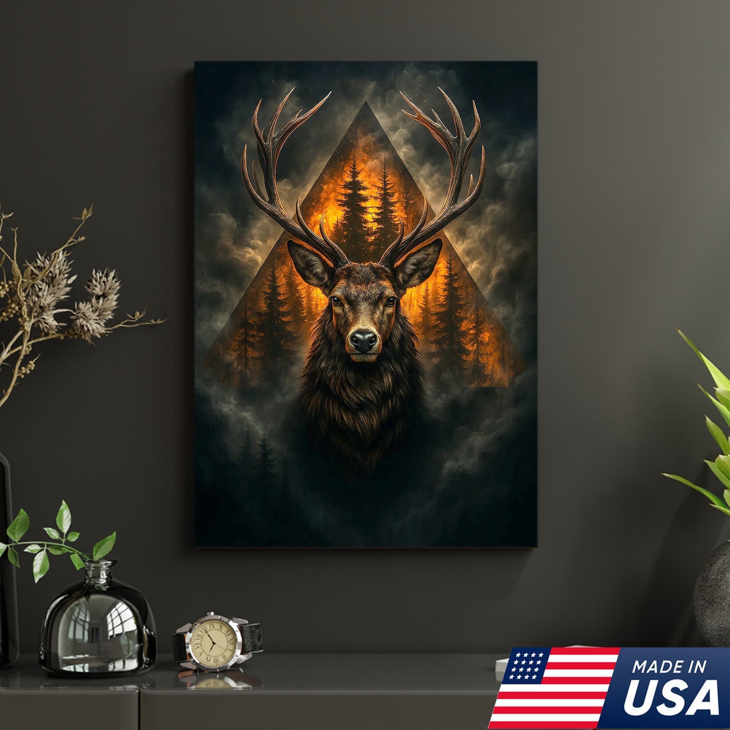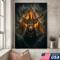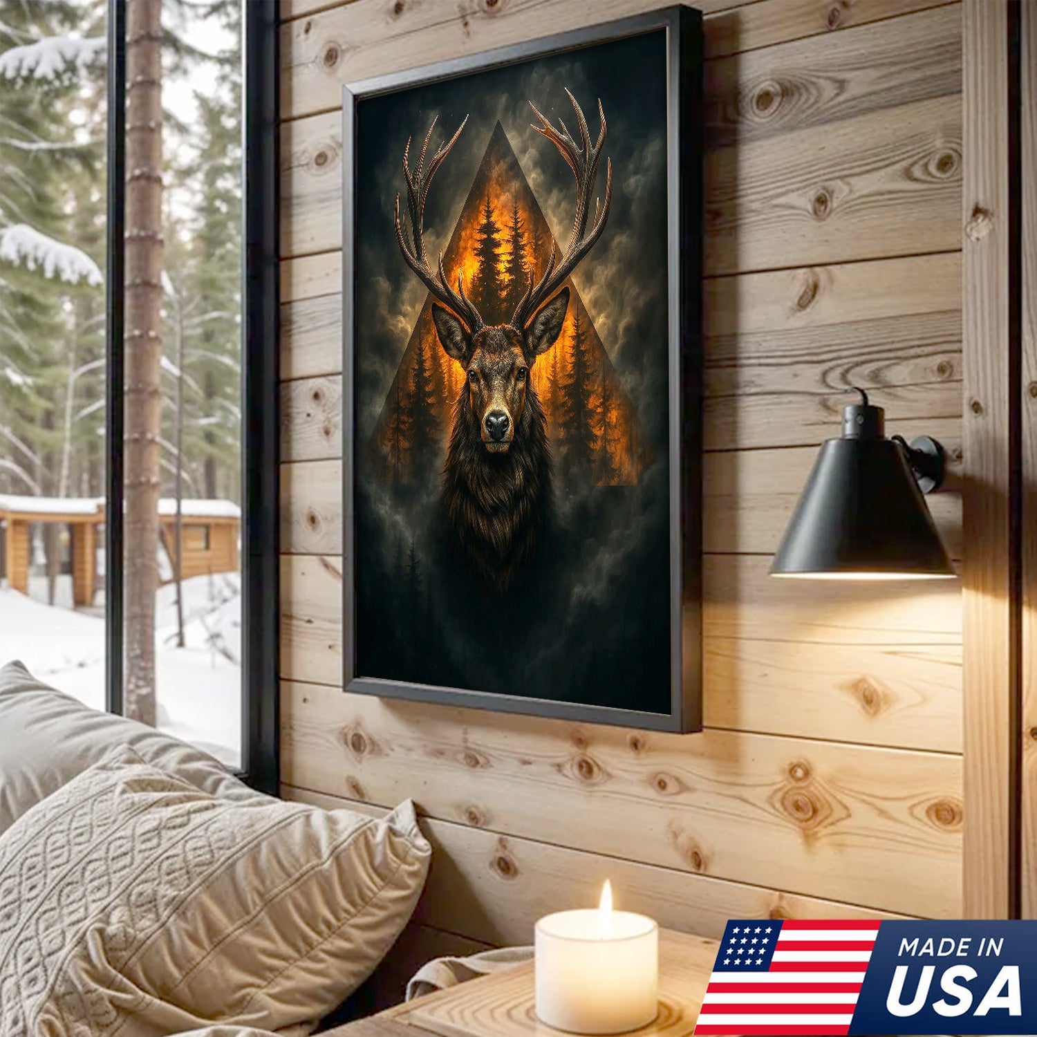 Majestic Deer Canvas Wall Art, Rustic Woodland Animal Decor, Mountain Forest Sunset Home Decoration