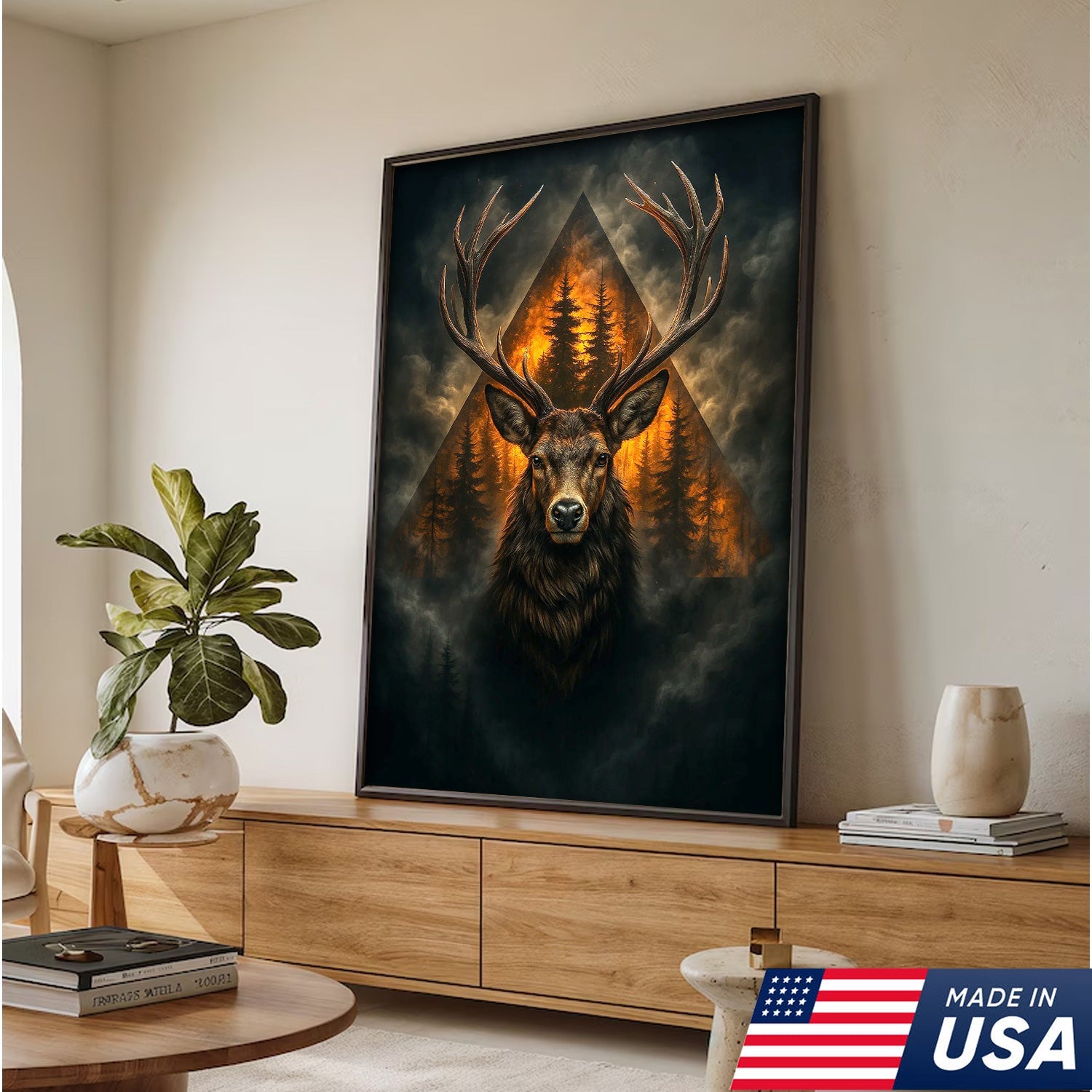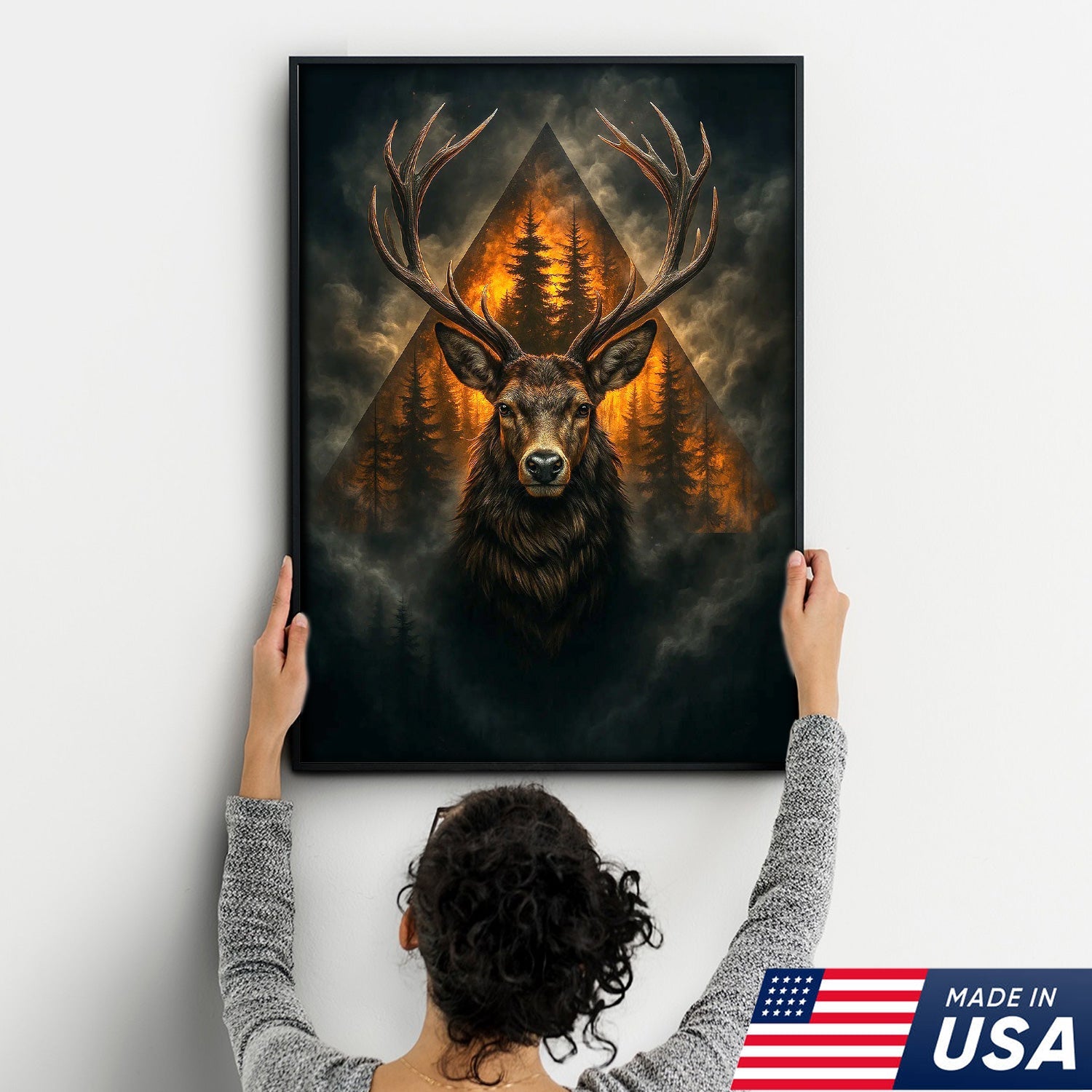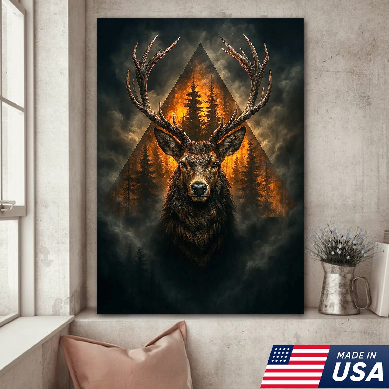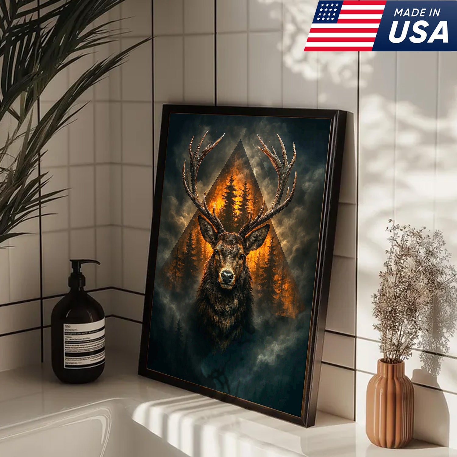 Majestic Deer Canvas Wall Art, Rustic Woodland Animal Decor, Mountain Forest Sunset Home Decoration