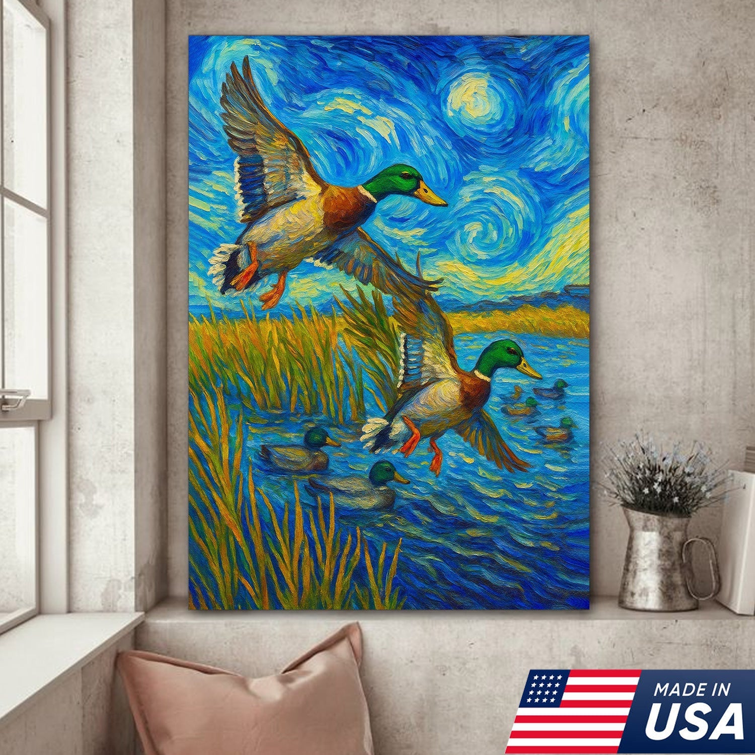 Mallard Duck Hunting Canvas Wall Art – Flying Ducks Rustic Decor