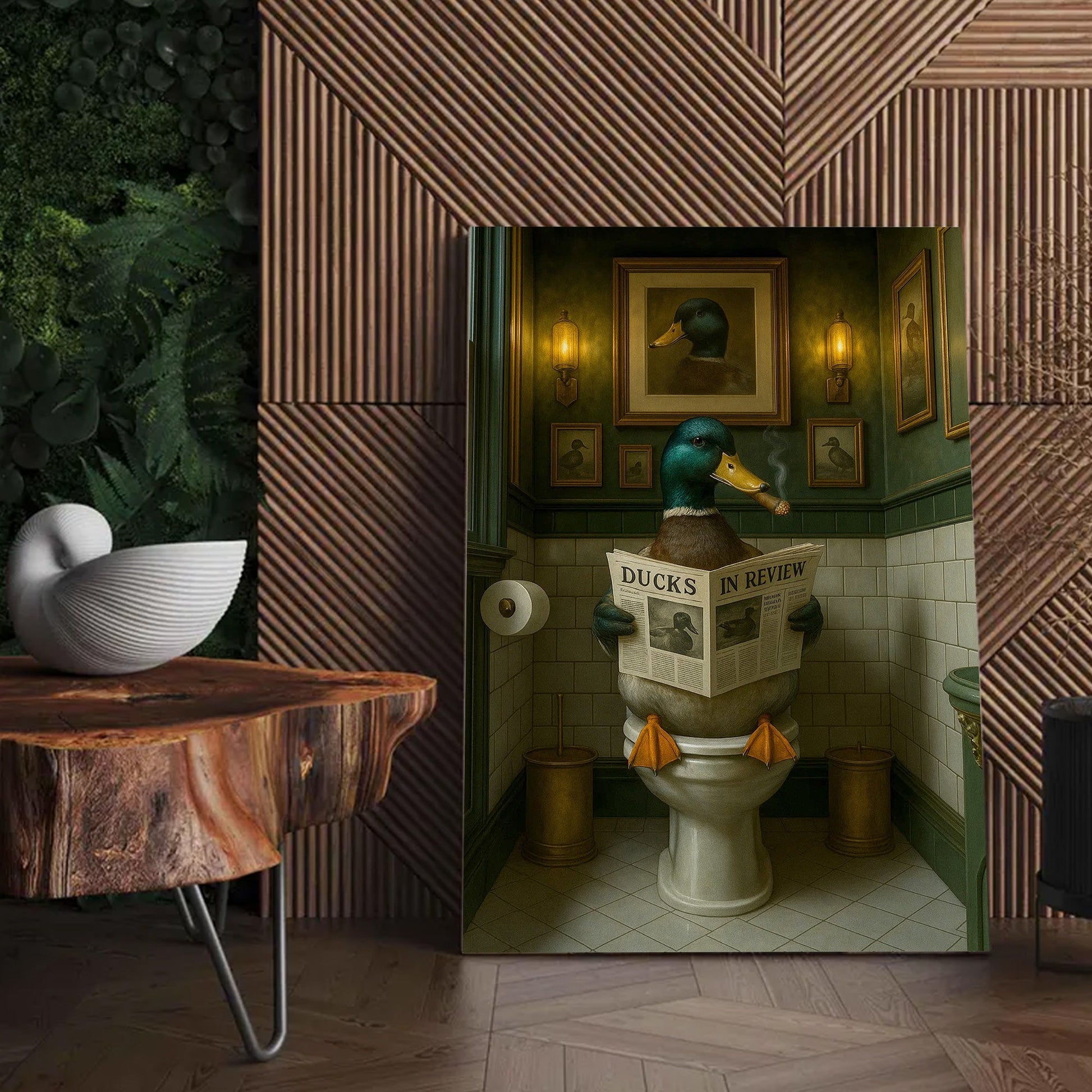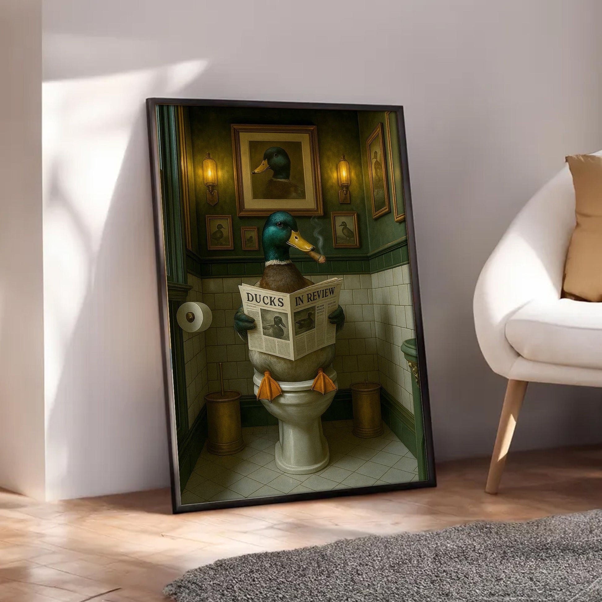 Mallard Duck Toilet Scene Poster Canvas – Smoking-Smoking Duck Reading ‘Ducks in Review’ - Gift for Outdoorsmen