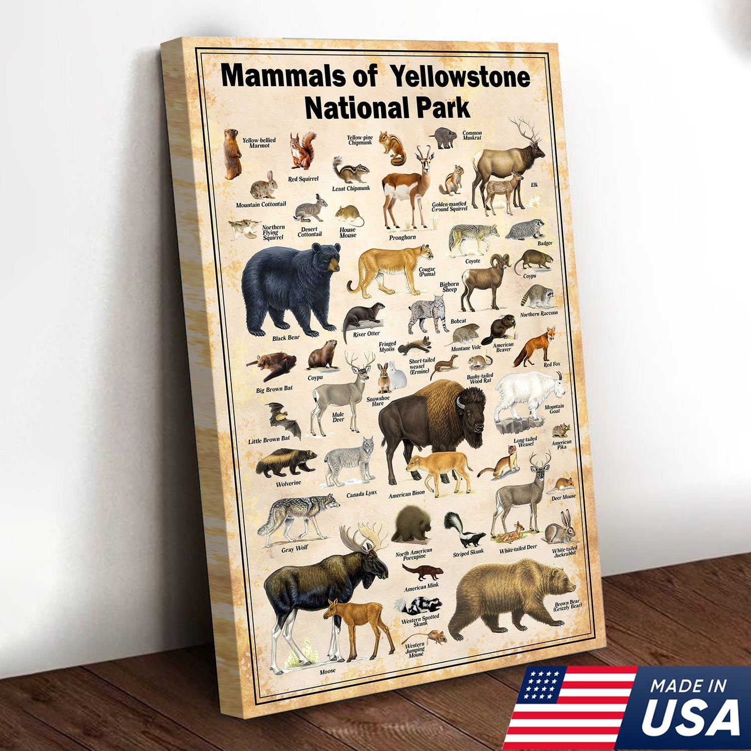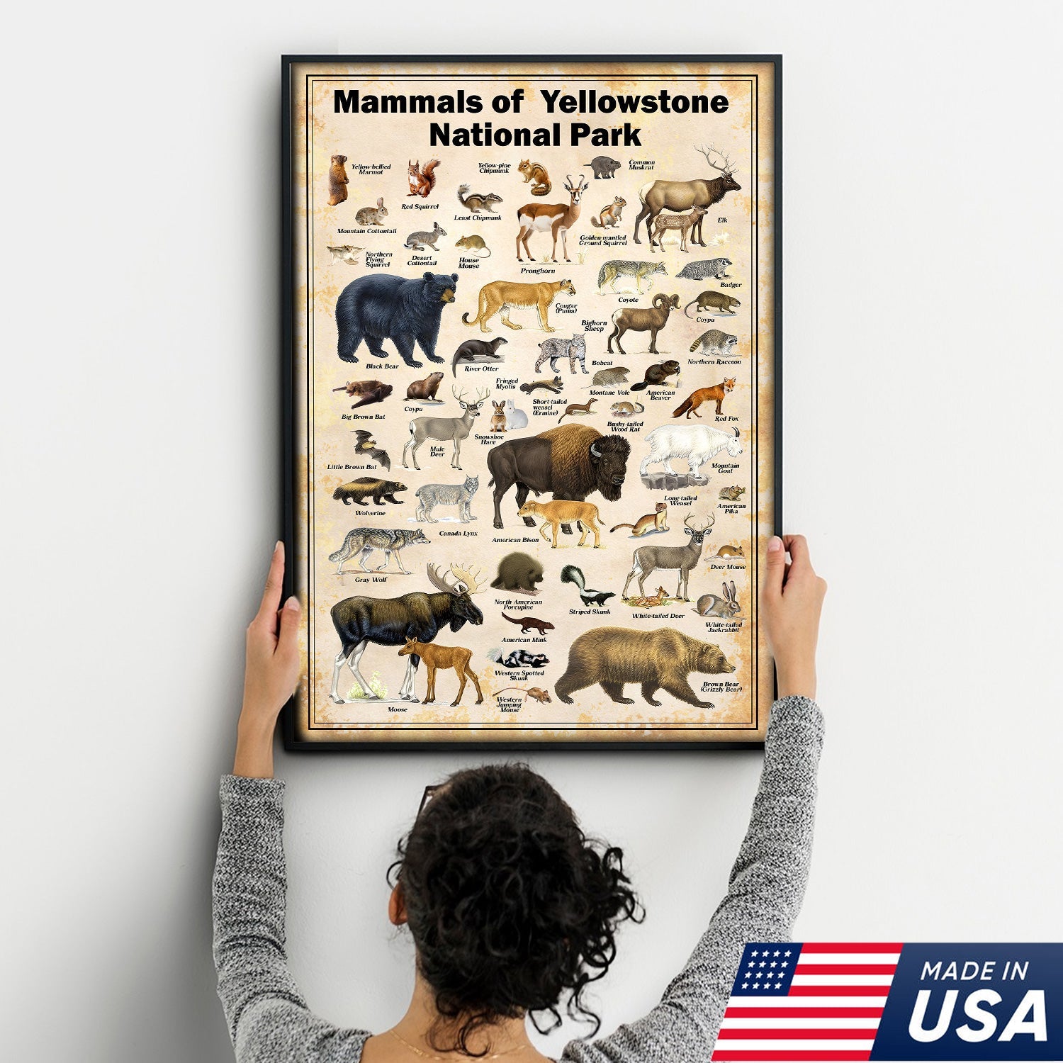 Mammals of Yellowstone National Park Poster – Wildlife Wall Art for Nature Lovers, Hunters & Kids