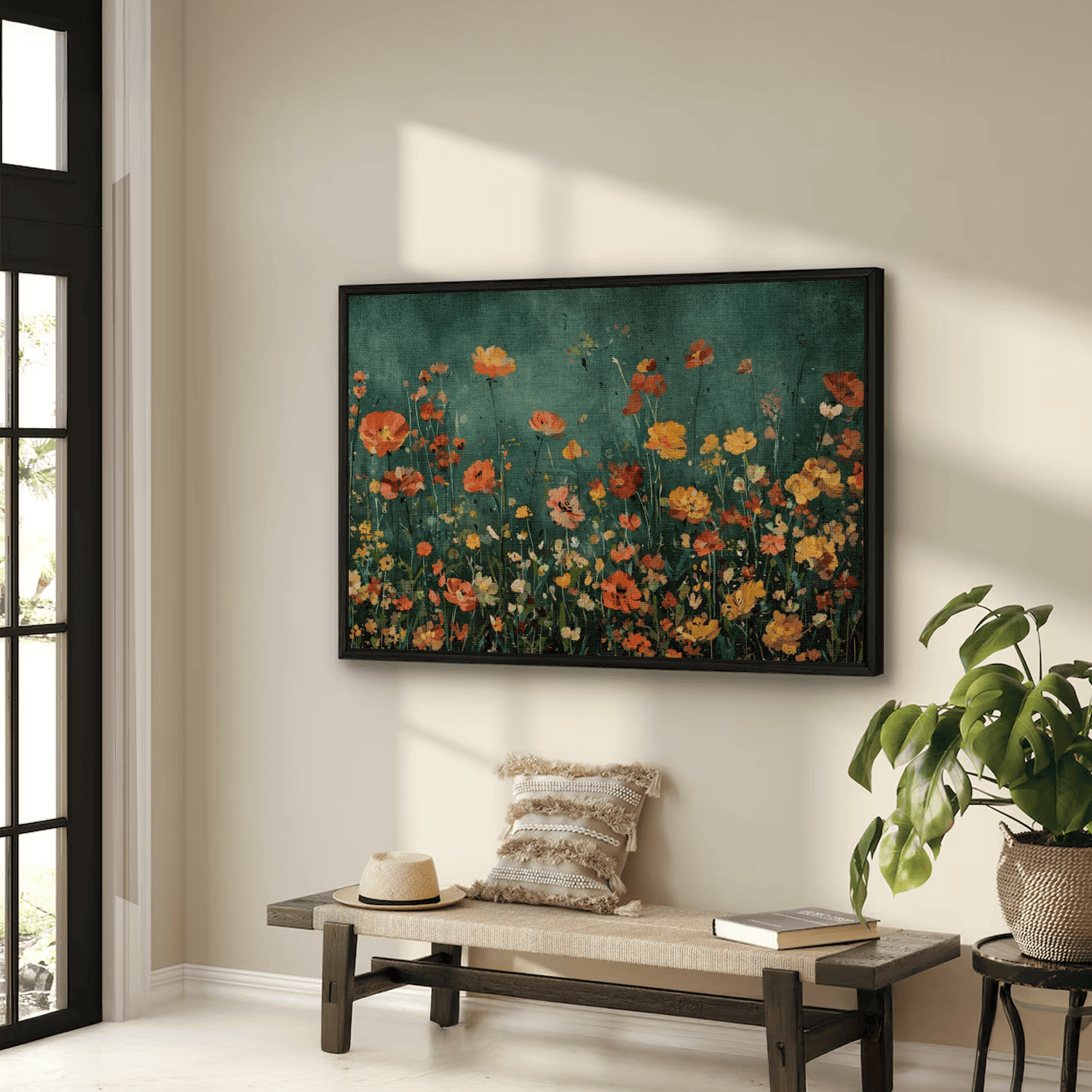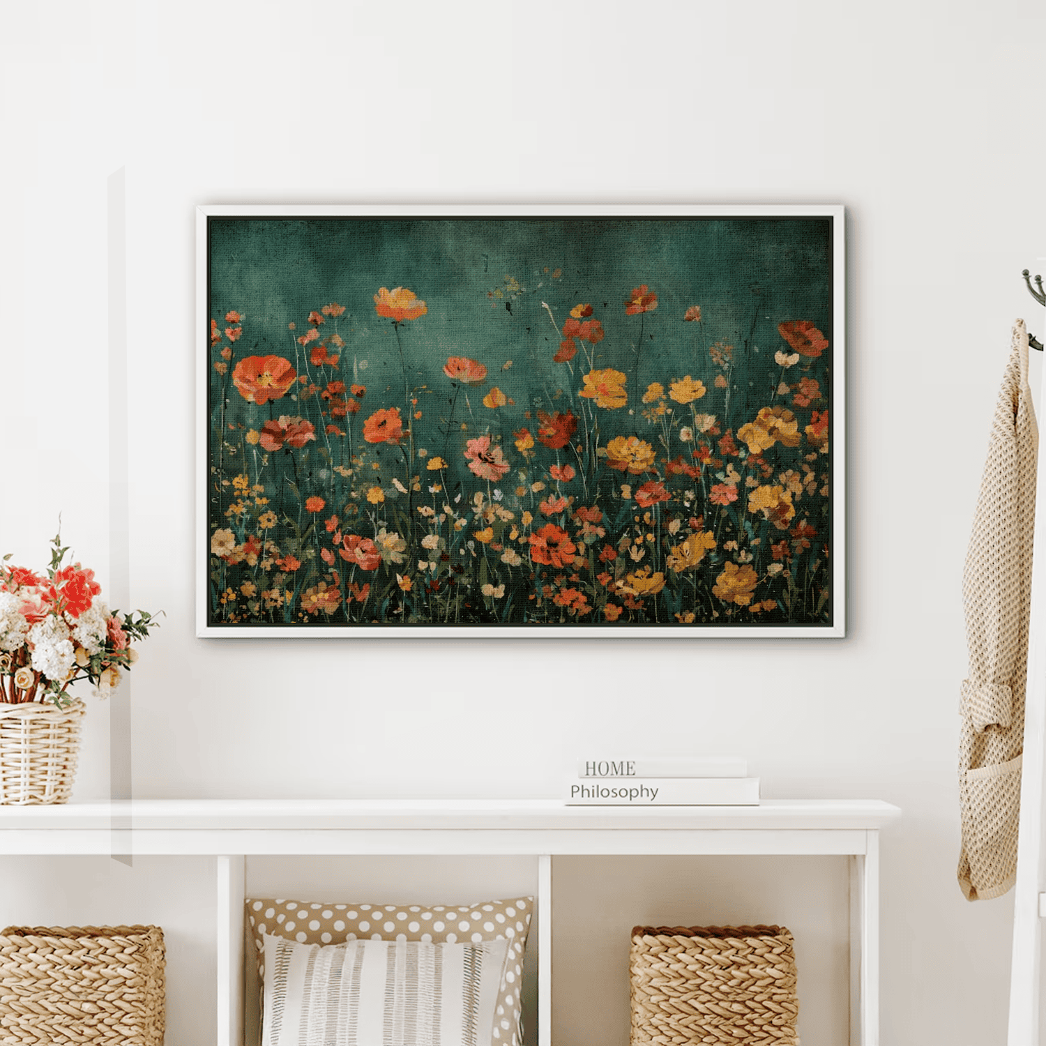 Moody Floral Canvas Art – Dark Botanical Stillness