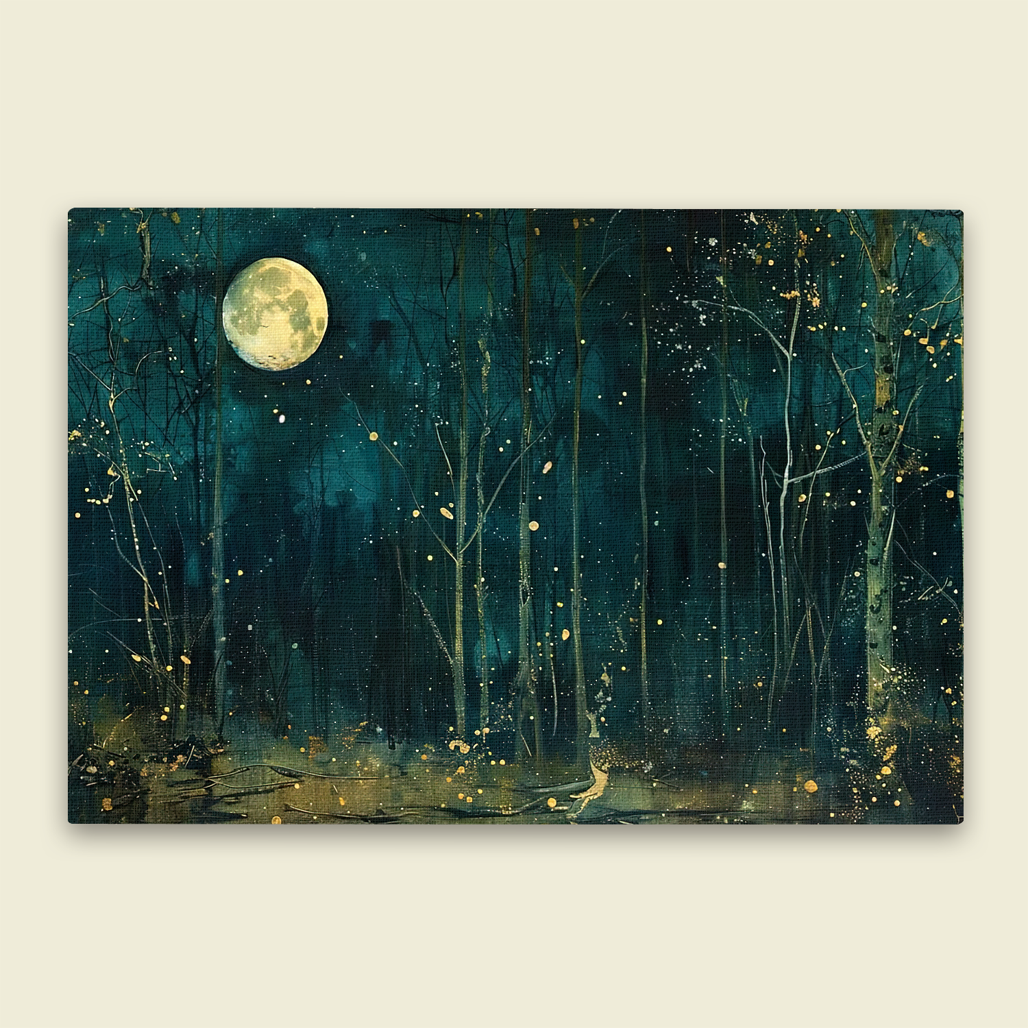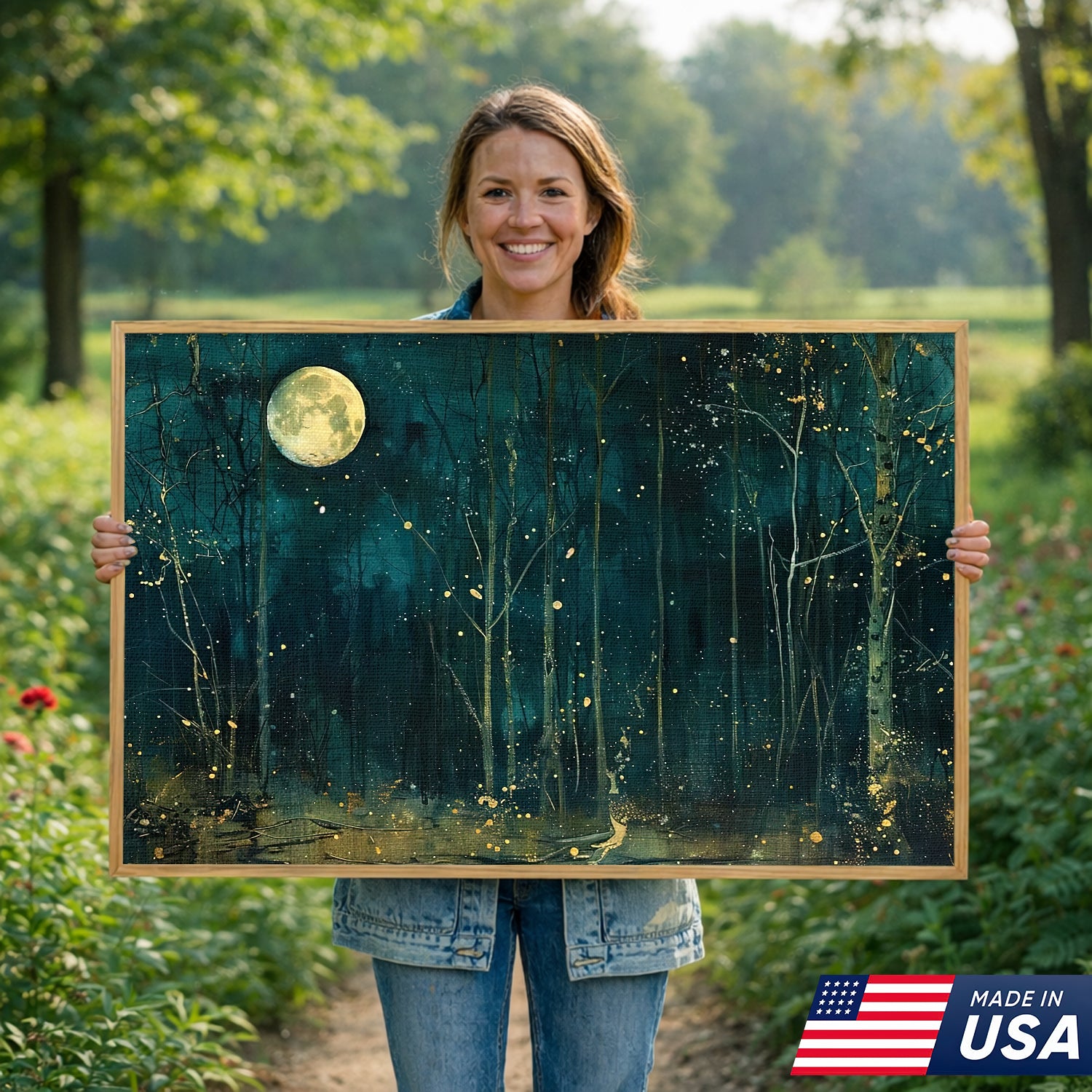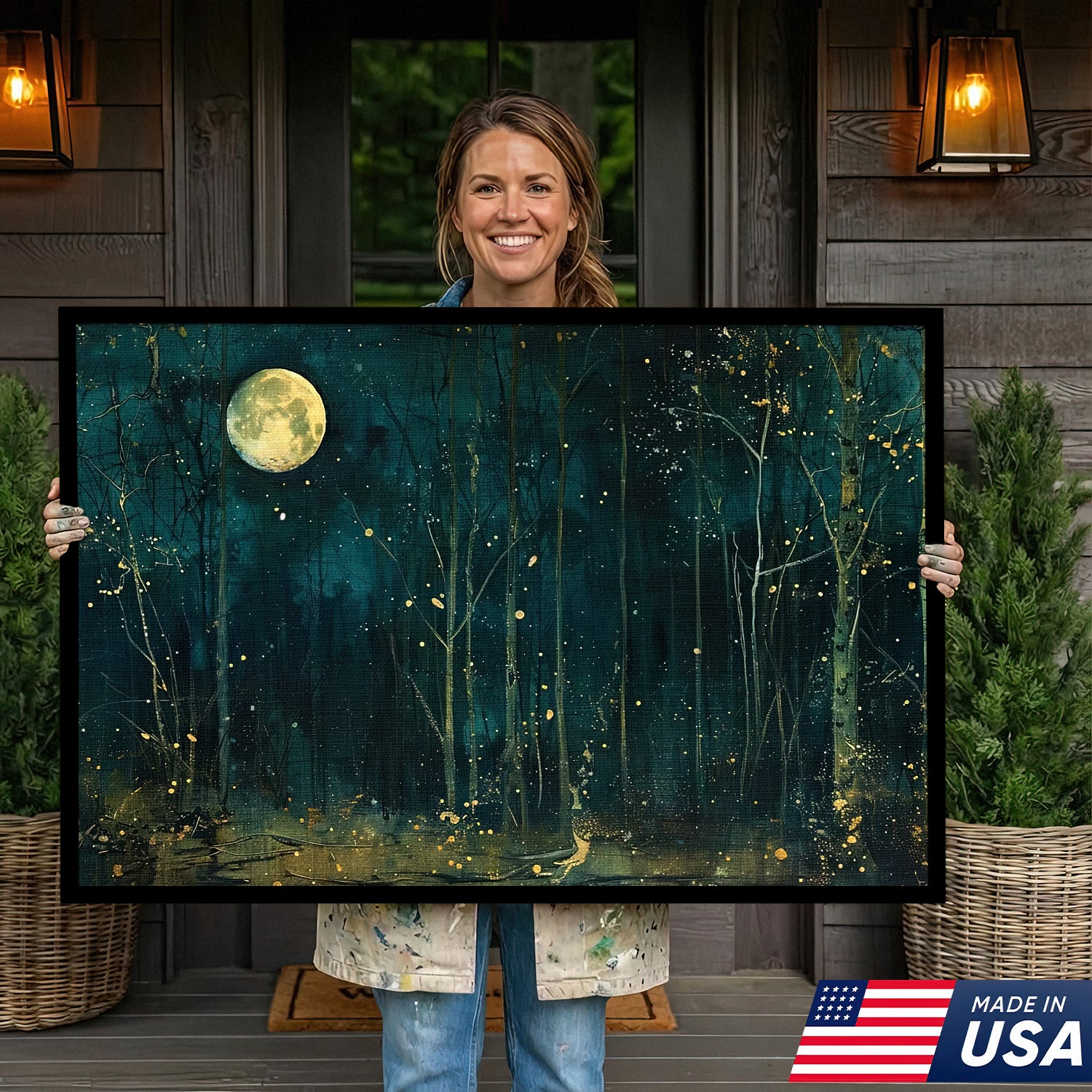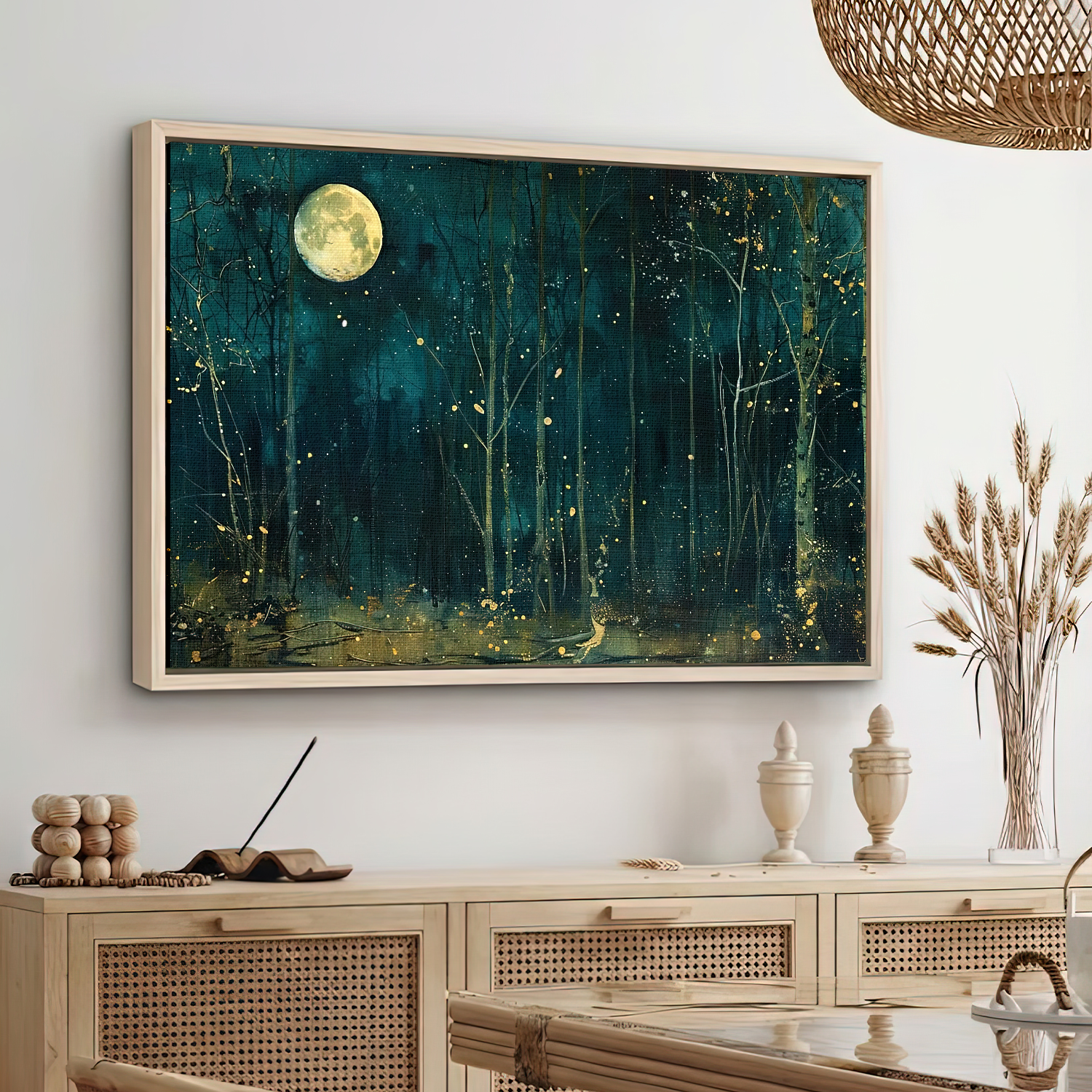 Moonlit Forest Stillness Framed Canvas β Quiet Night Scene