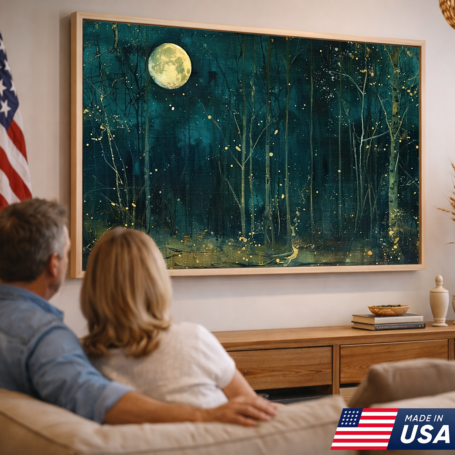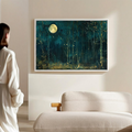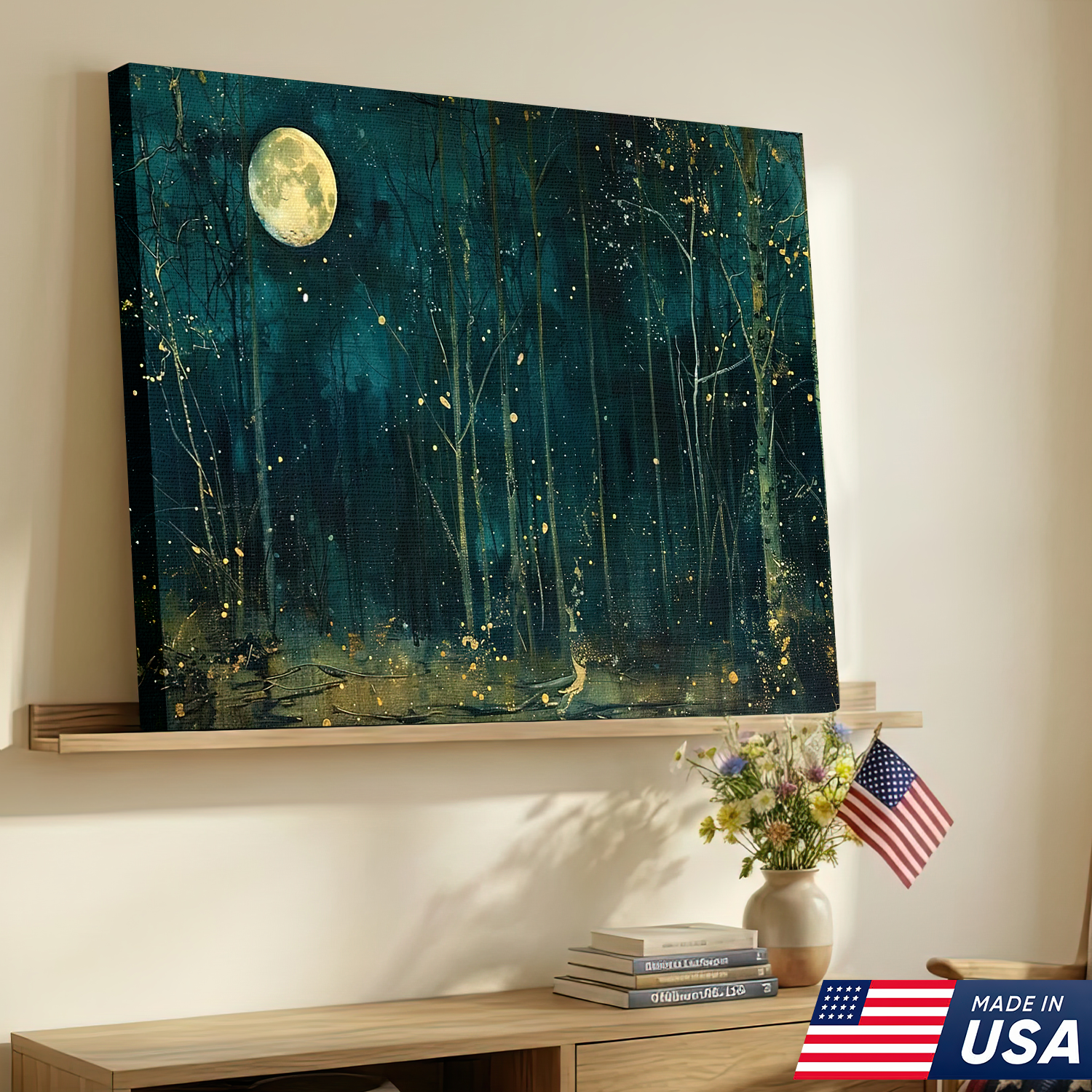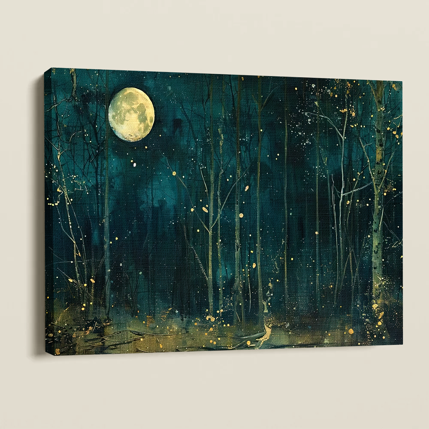 Moonlit Forest Stillness Framed Canvas β Quiet Night Scene