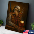 Mourning Dove Canvas Wall Art – Surreal Hunter Portrait with Beer Glass, Rustic Lodge Decor