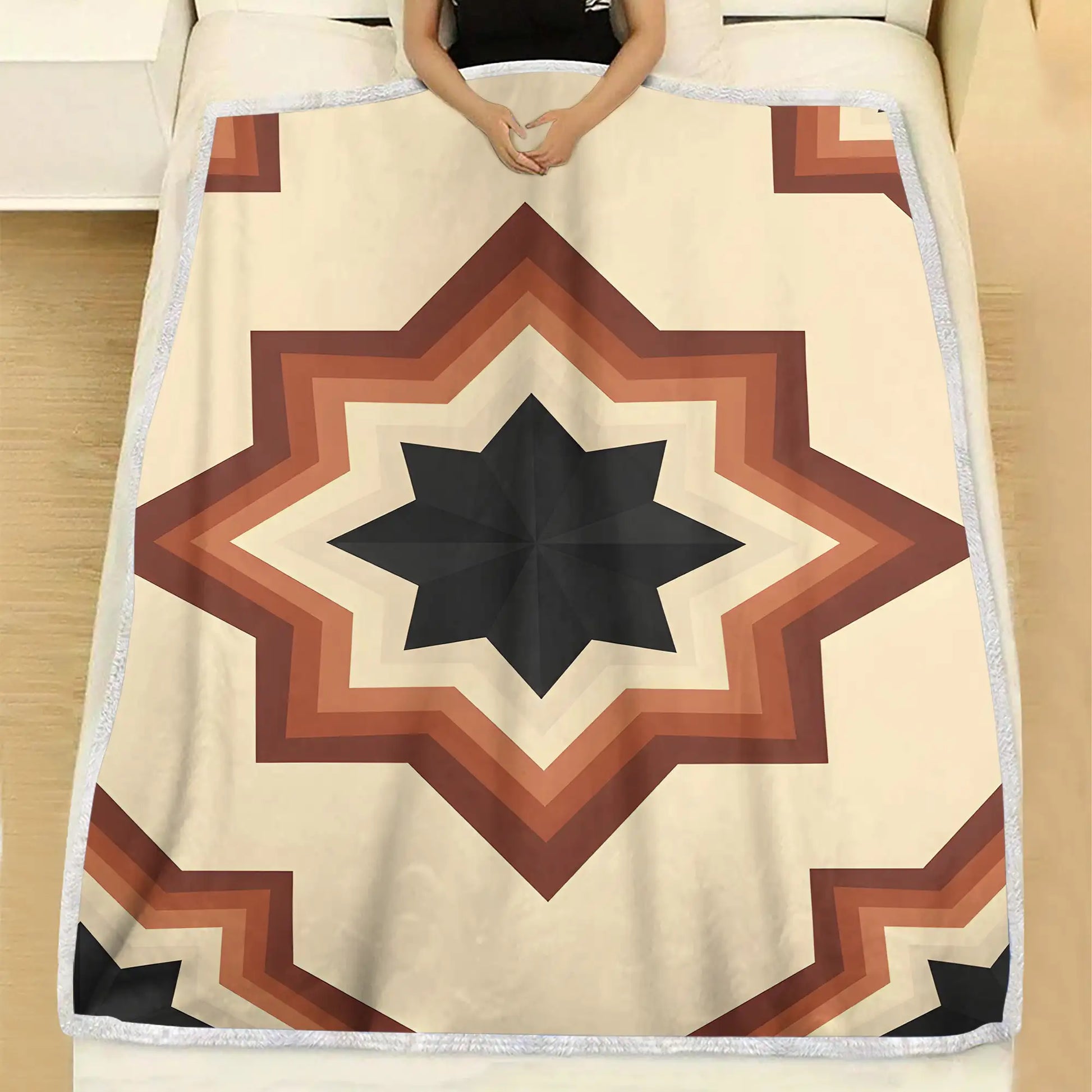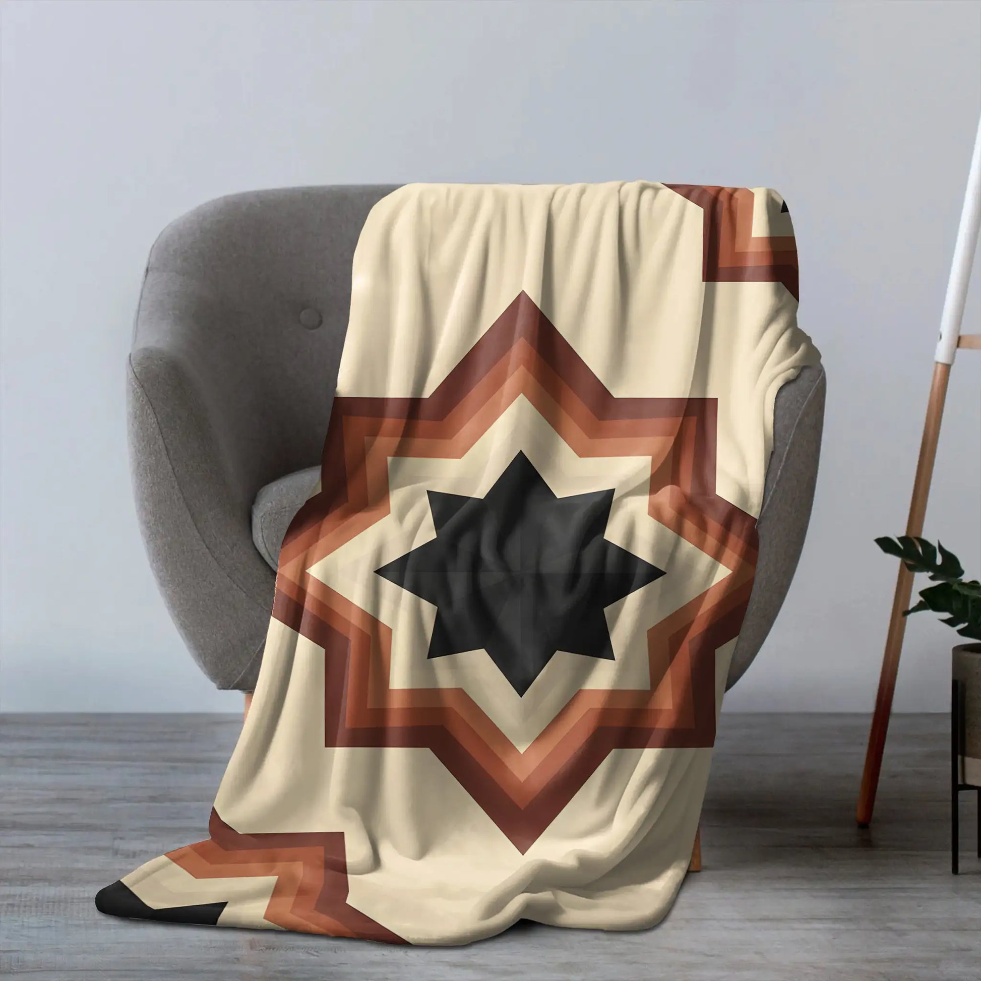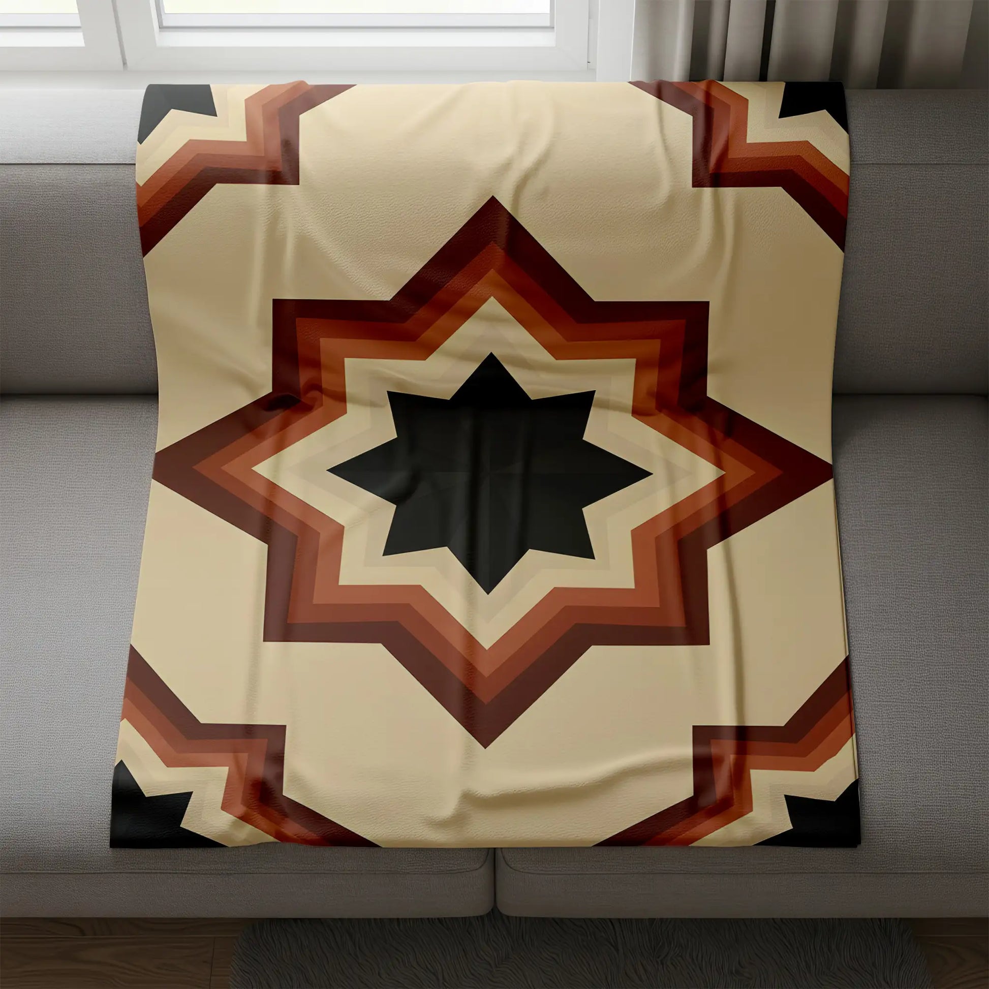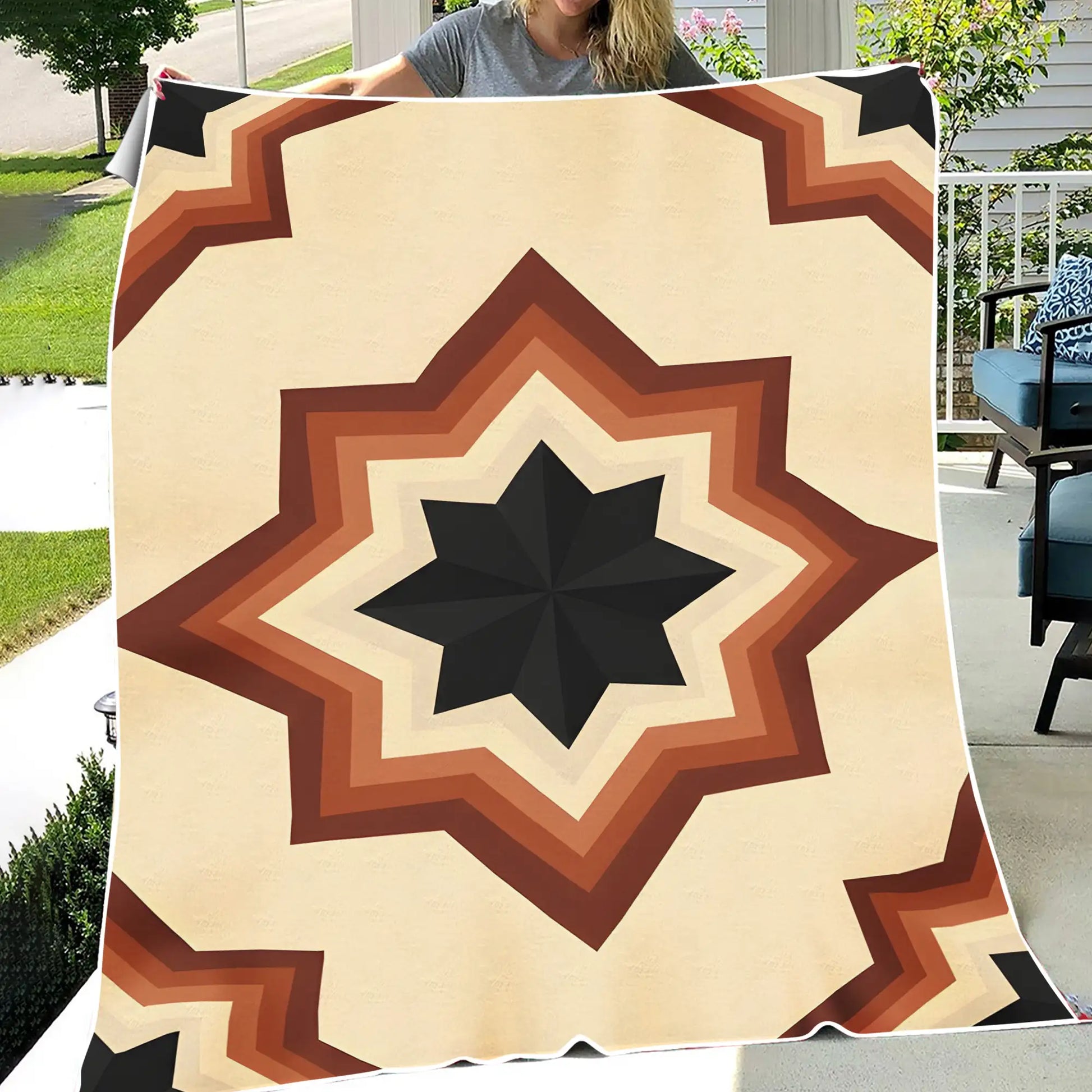 This blanket showcases the bold star motif often seen in Native America artistry, symbolizing guidance, strength, and unity. The geometric star is rendered in warm earthy tones of beige, brown, and black, creating a striking centerpiece that radiates balance and harmony. The pattern reflects the deep cultural traditions of tribal communities, where stars often represented spiritual direction and a connection to the universe. Soft yet durable, this blanket is perfect for everyday comfort or as a distinctive decorative piece in modern or rustic spaces, bringing warmth, heritage, and timeless beauty into your home environment.