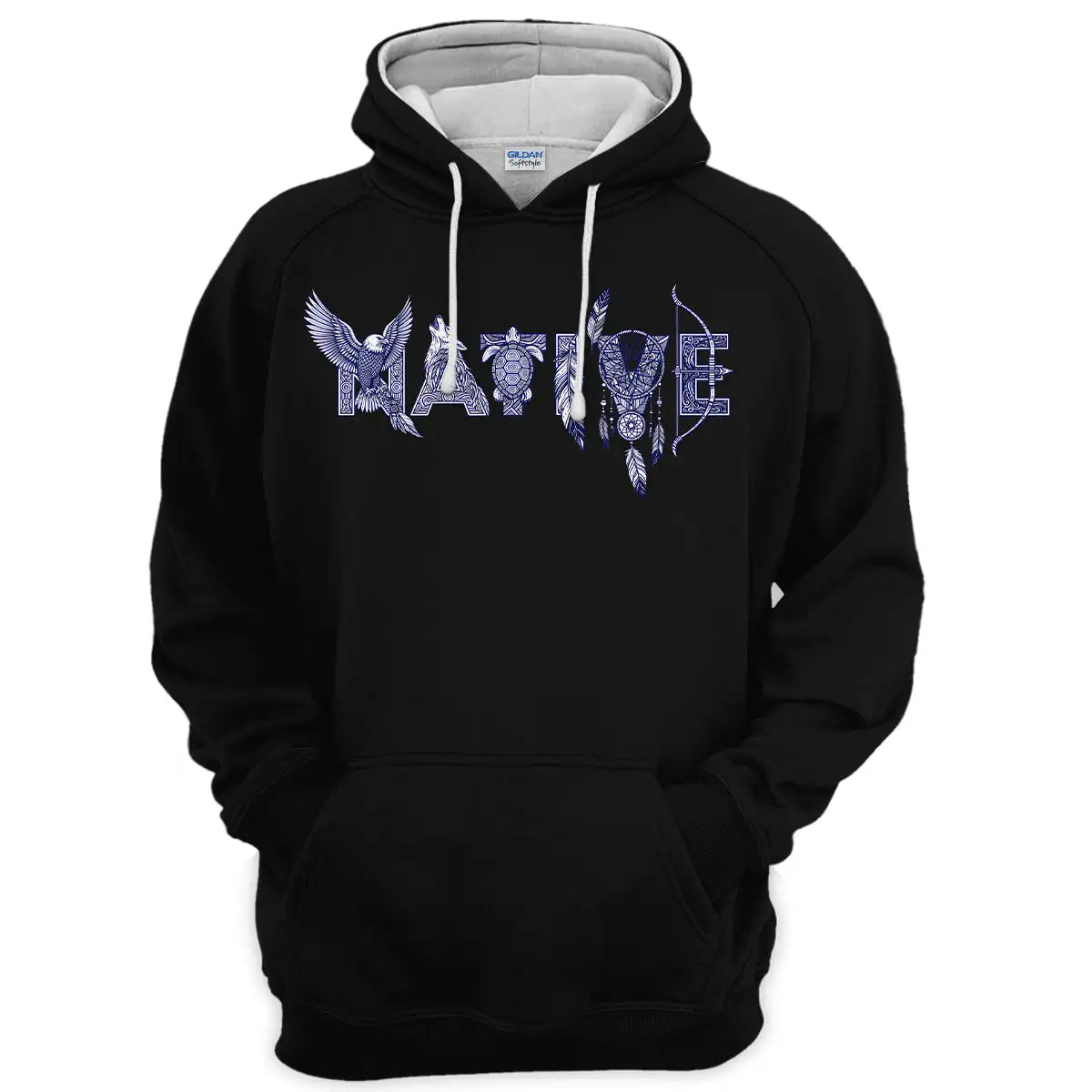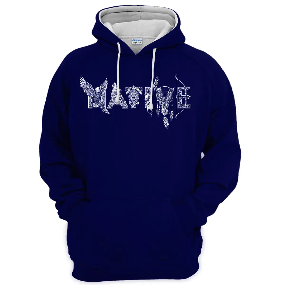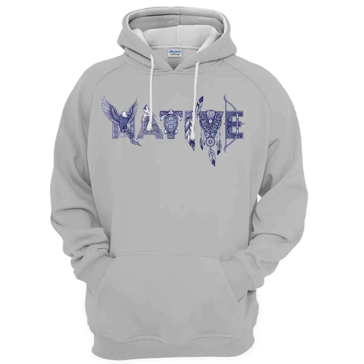 This hoodie is inspired by North American Native American tribal culture, where symbols such as falcons, turtles, feathers, and bows and arrows have deep spiritual significance. The design creates a unique Native word, symbolizing strength, longevity, and a connection to nature. The subtle combination of image and meaning makes the hoodie a statement of identity and pride. This hoodie not only provides everyday warmth and comfort, but also shows off a strong personality and attractive tribal style.