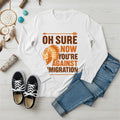Native American Long Sleeve T Shirt, “Now You’re Against Immigration” Statement Shirt