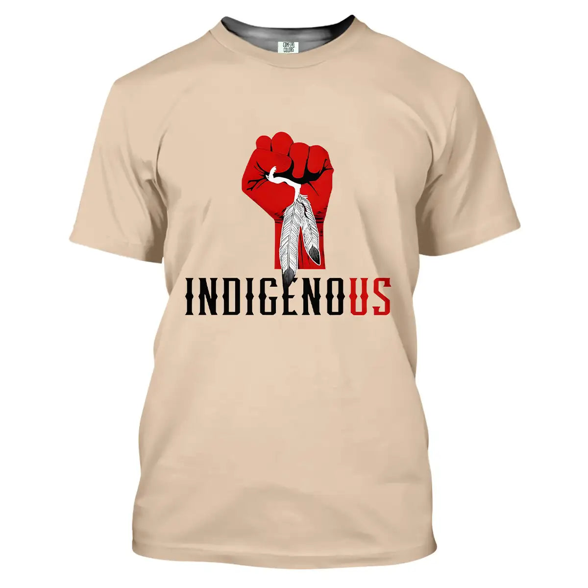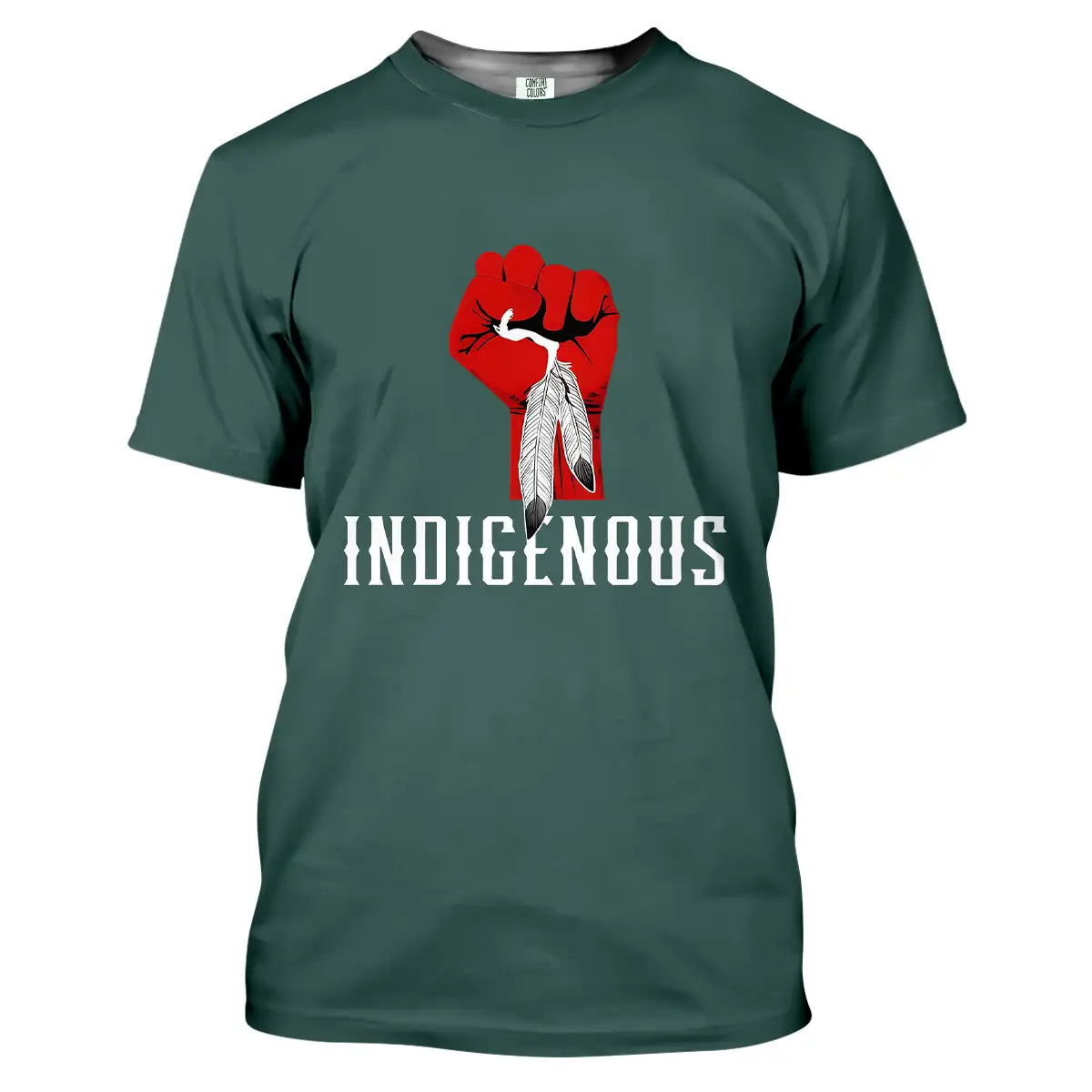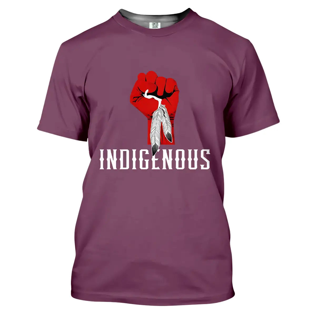 "Indigenous" Native America T-Shirt, Red Fist Feather Design Comfort Tee