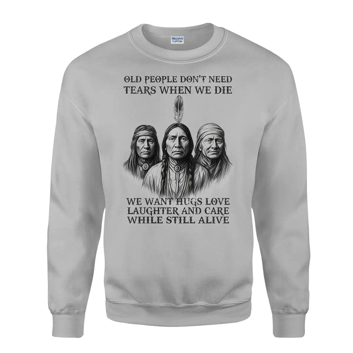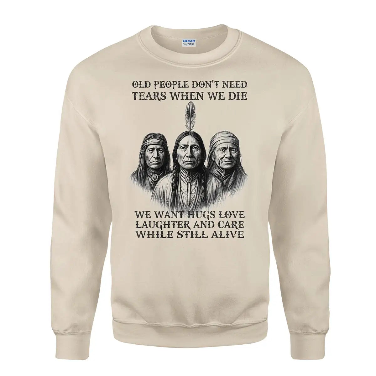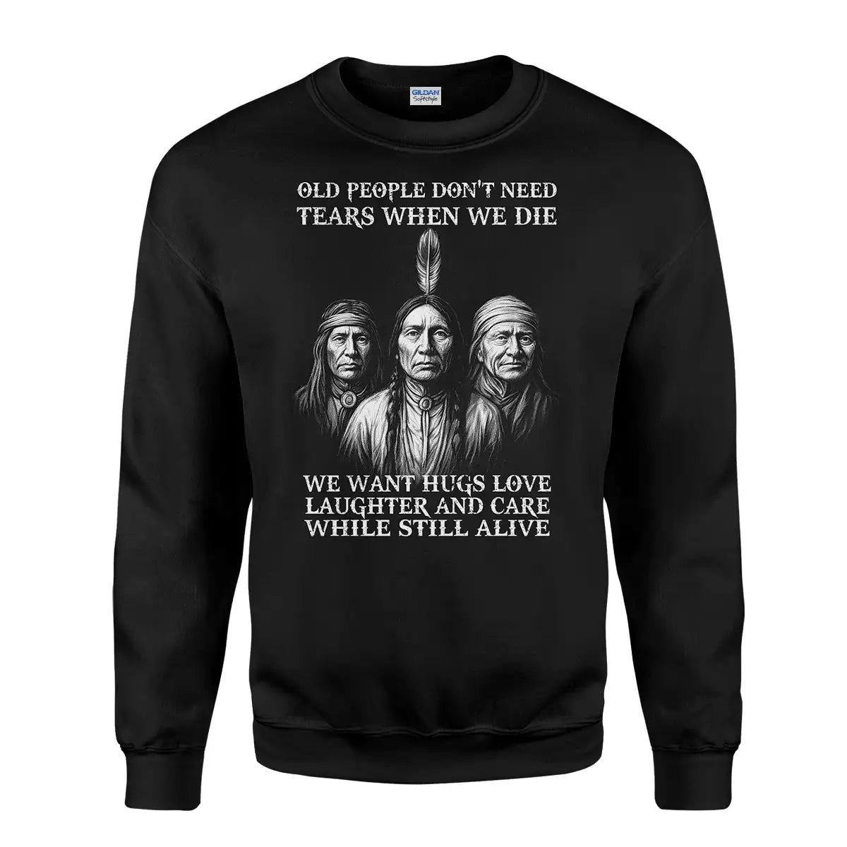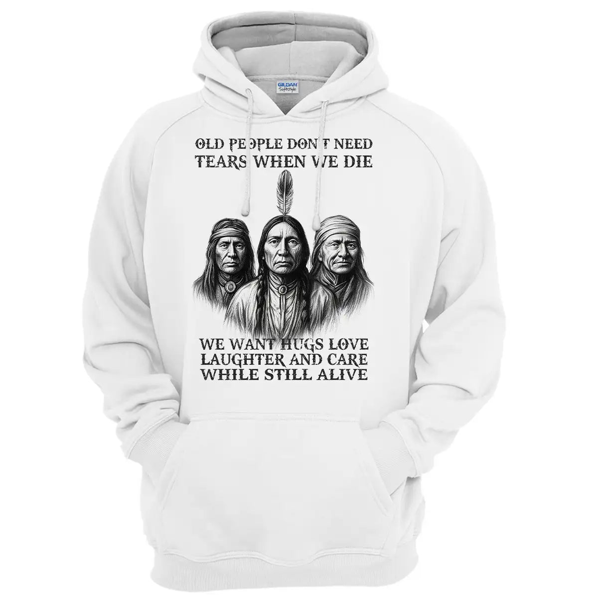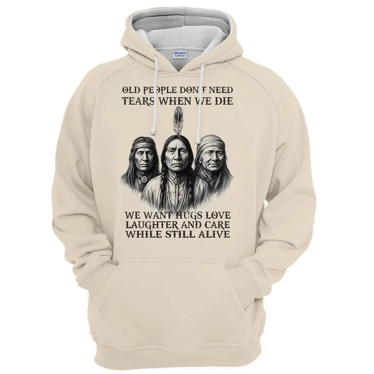 Native America "Old People Don’t Need Tears" Hoodie , Tribal Elder Graphic Pullover
