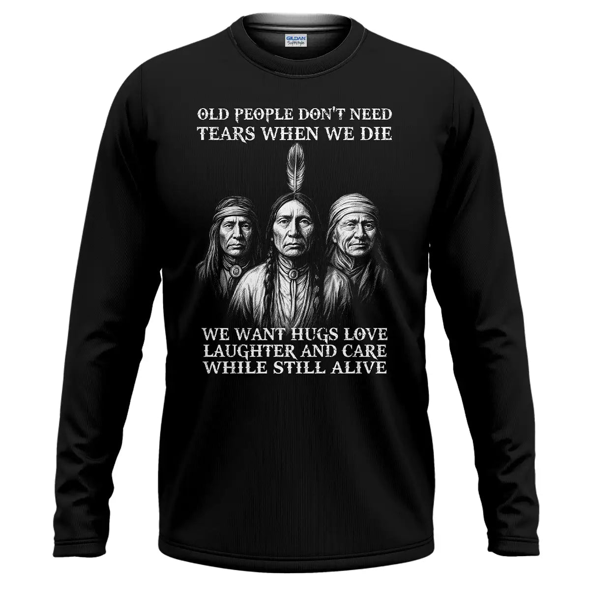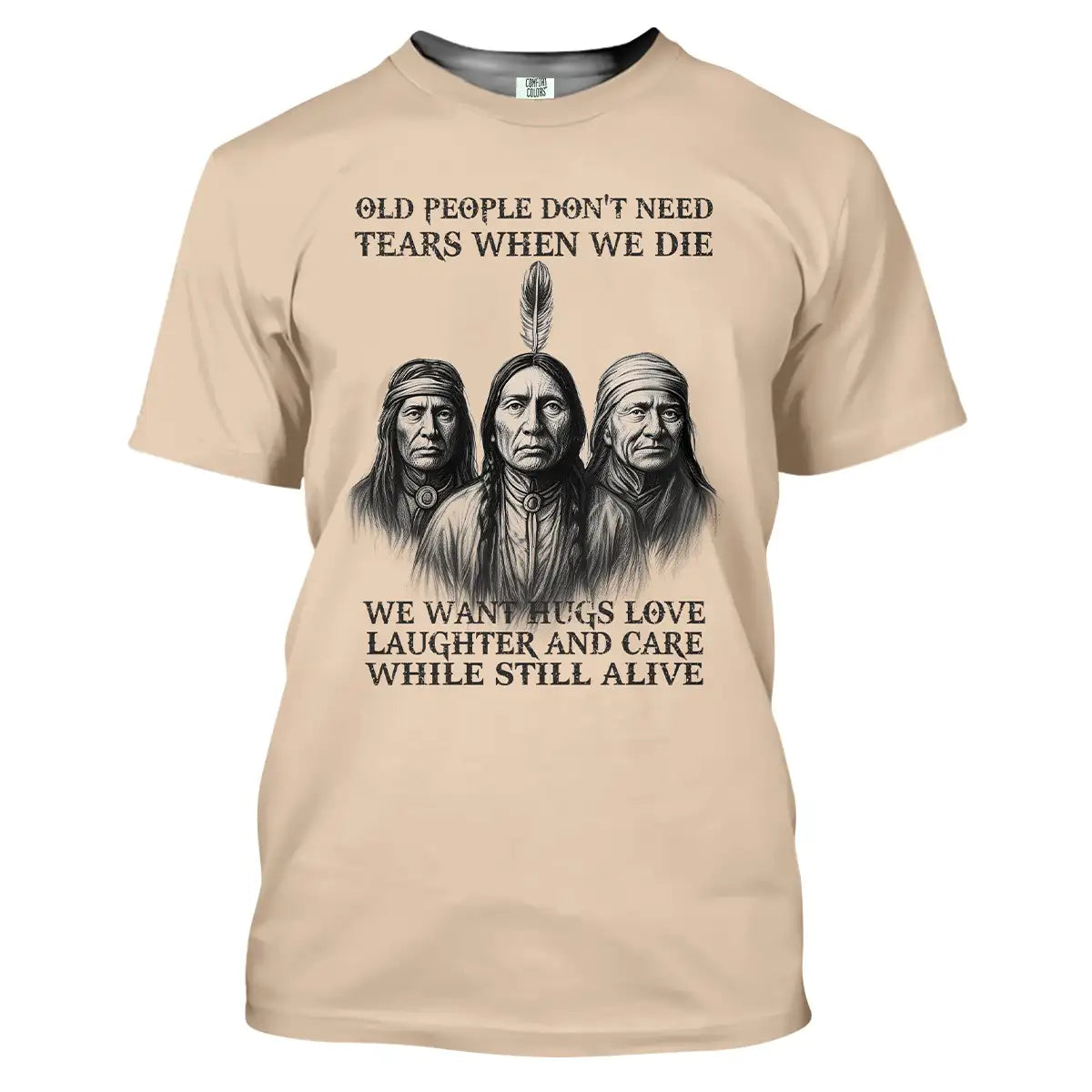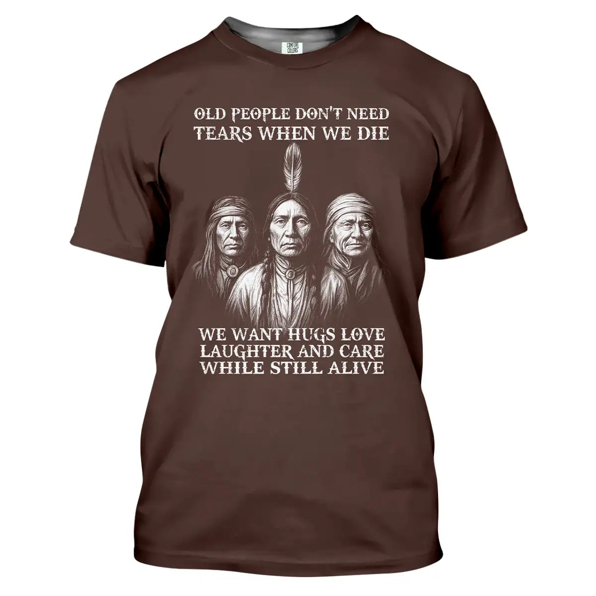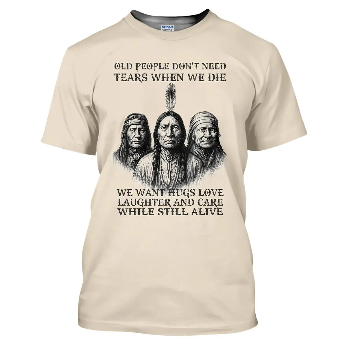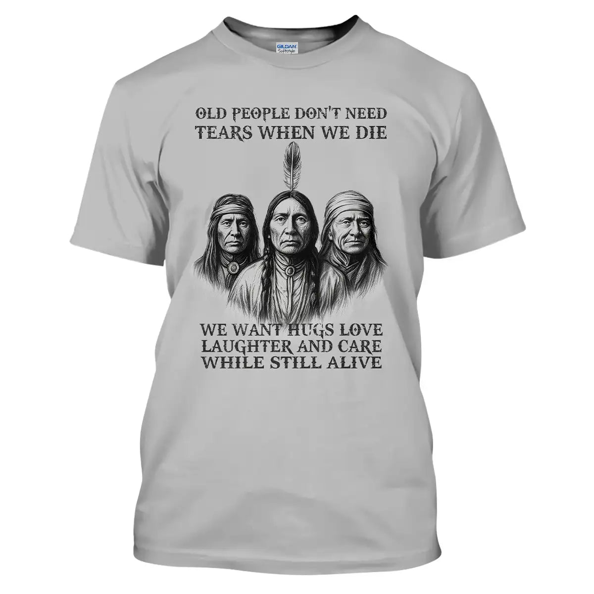 Native America "Old People Don’t Need Tears" T-shirt , Tribal Elder Graphic Tee