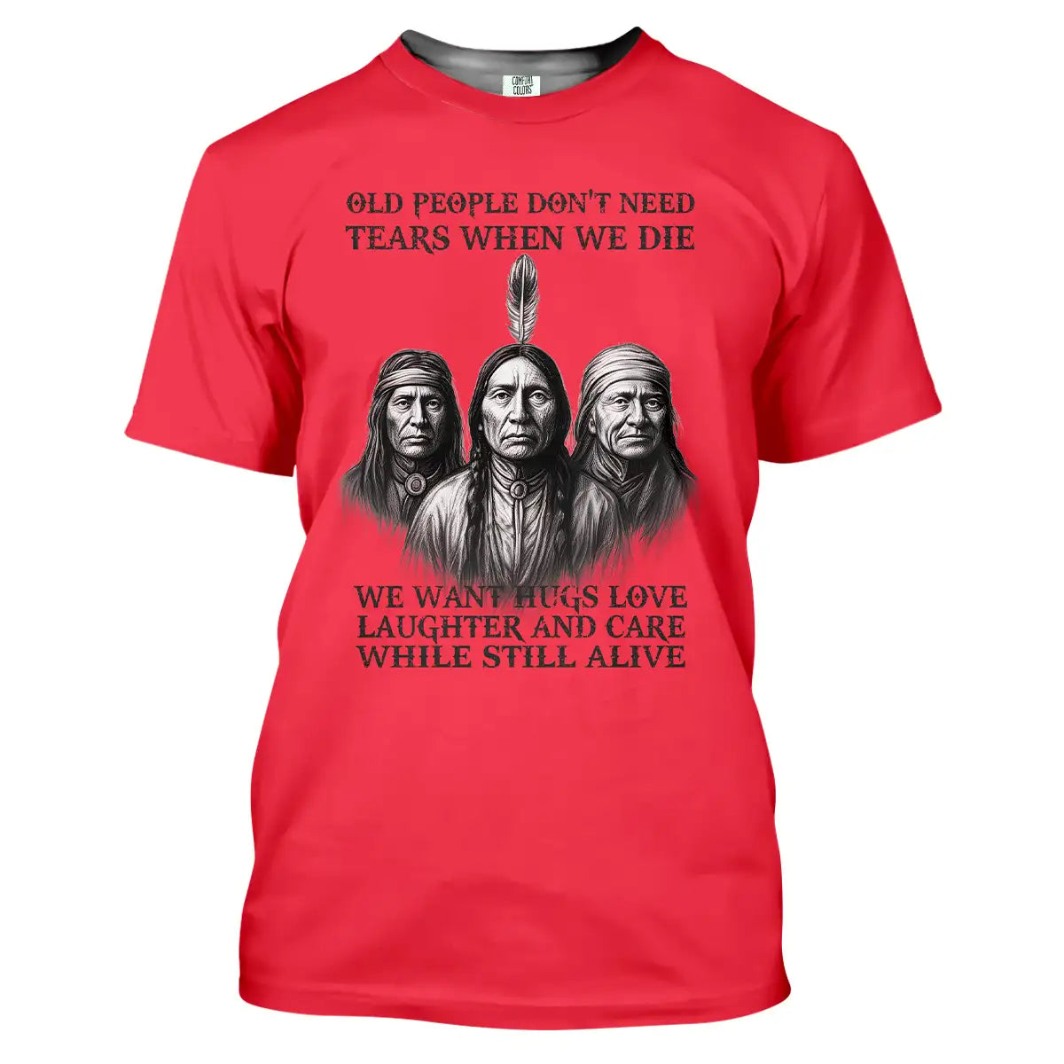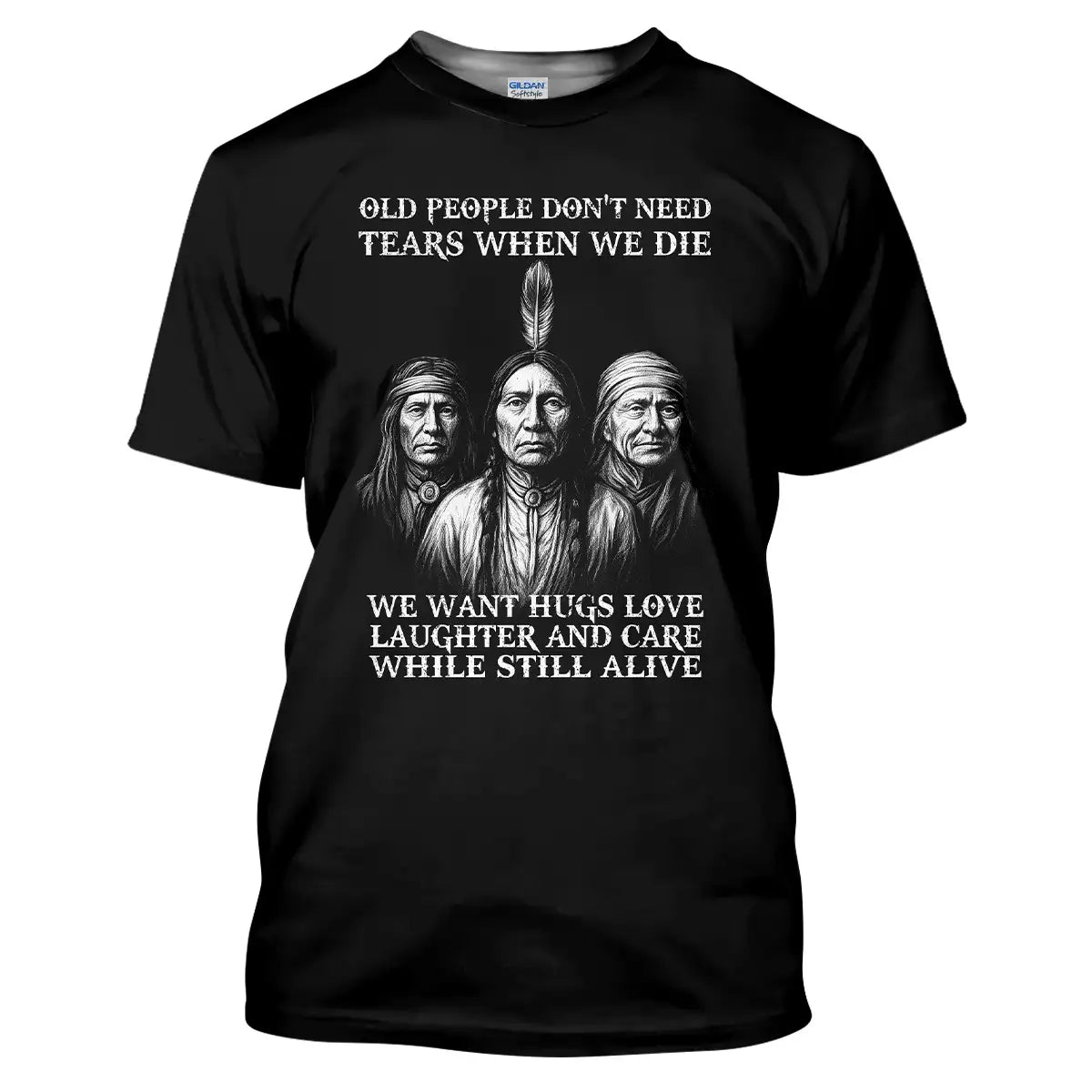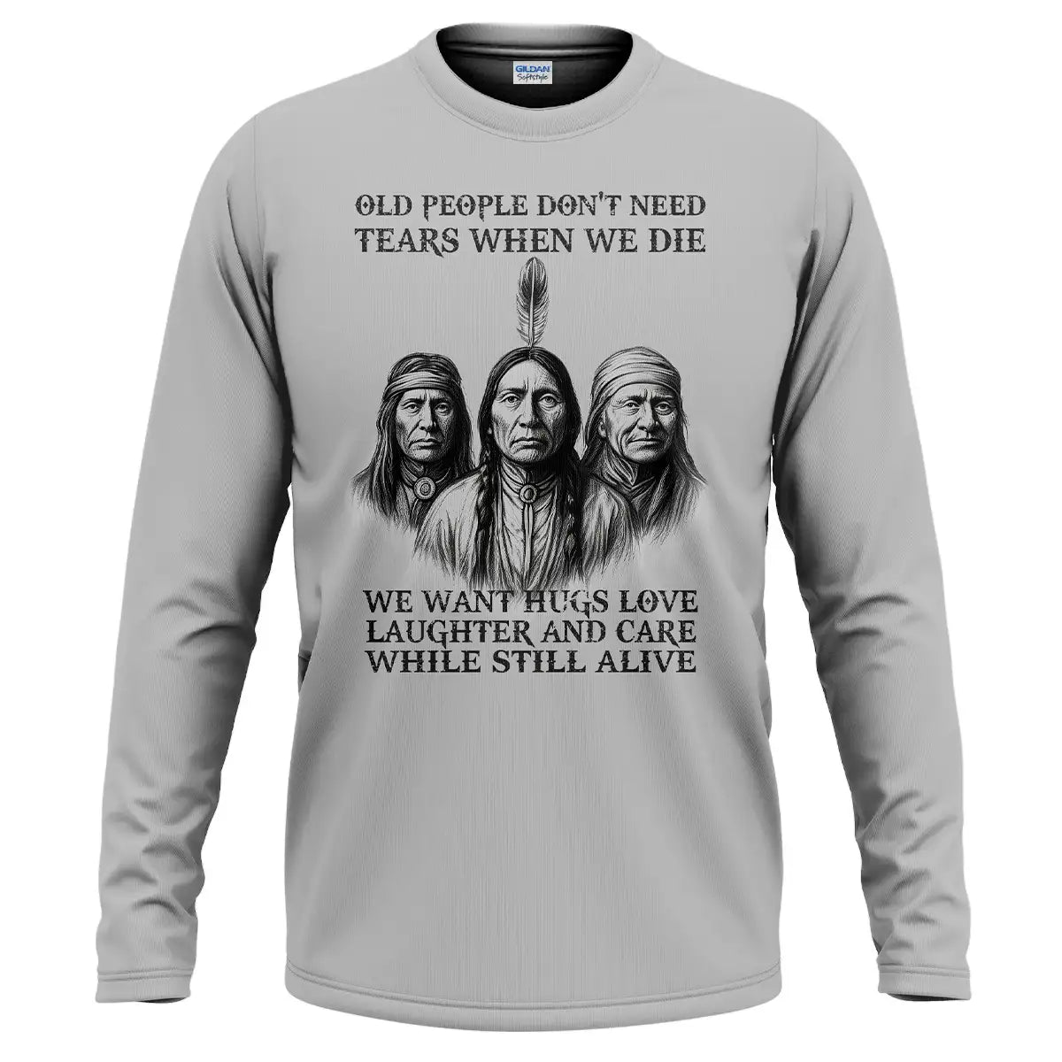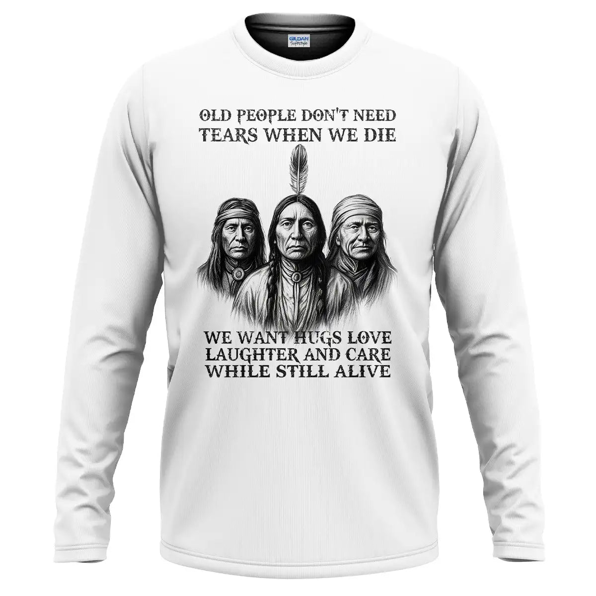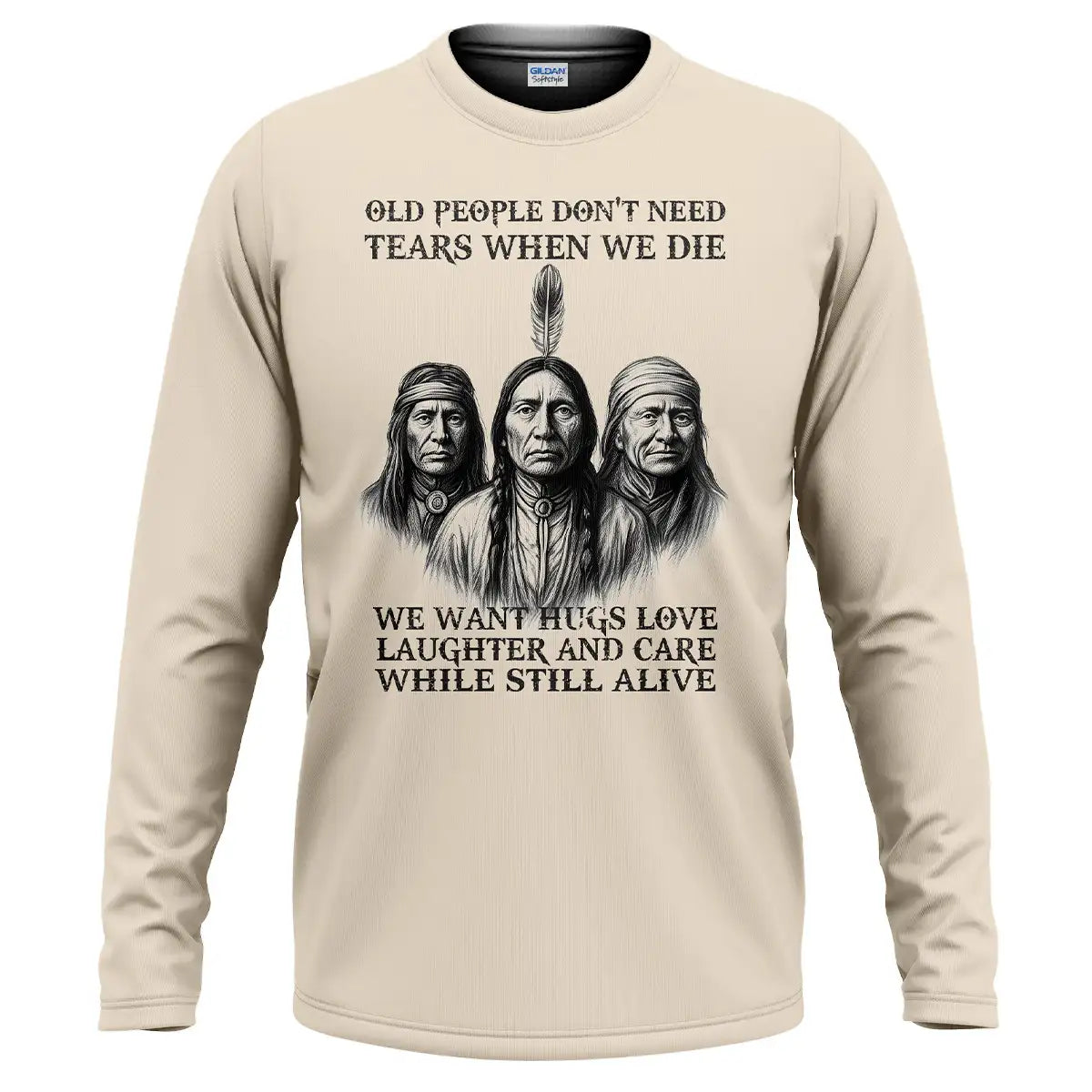 Native America "Old People Don’t Need Tears" T-shirt , Tribal Elder Graphic Tee