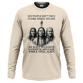 This T-shirt delivers a heartfelt message deeply rooted in Native America tradition: “Old people don’t need tears when we die, we want hugs love laughter and care while still alive.” The design features three powerful portraits of tribal elders, symbolizing resilience, dignity, and the wisdom passed through generations. It is more than apparel, it is a reminder to cherish our loved ones, offering them kindness and joy while they are with us. Crafted with soft fabric for everyday comfort, this T-shirt allows wearers to carry a message of respect, love, and family values wherever they go.