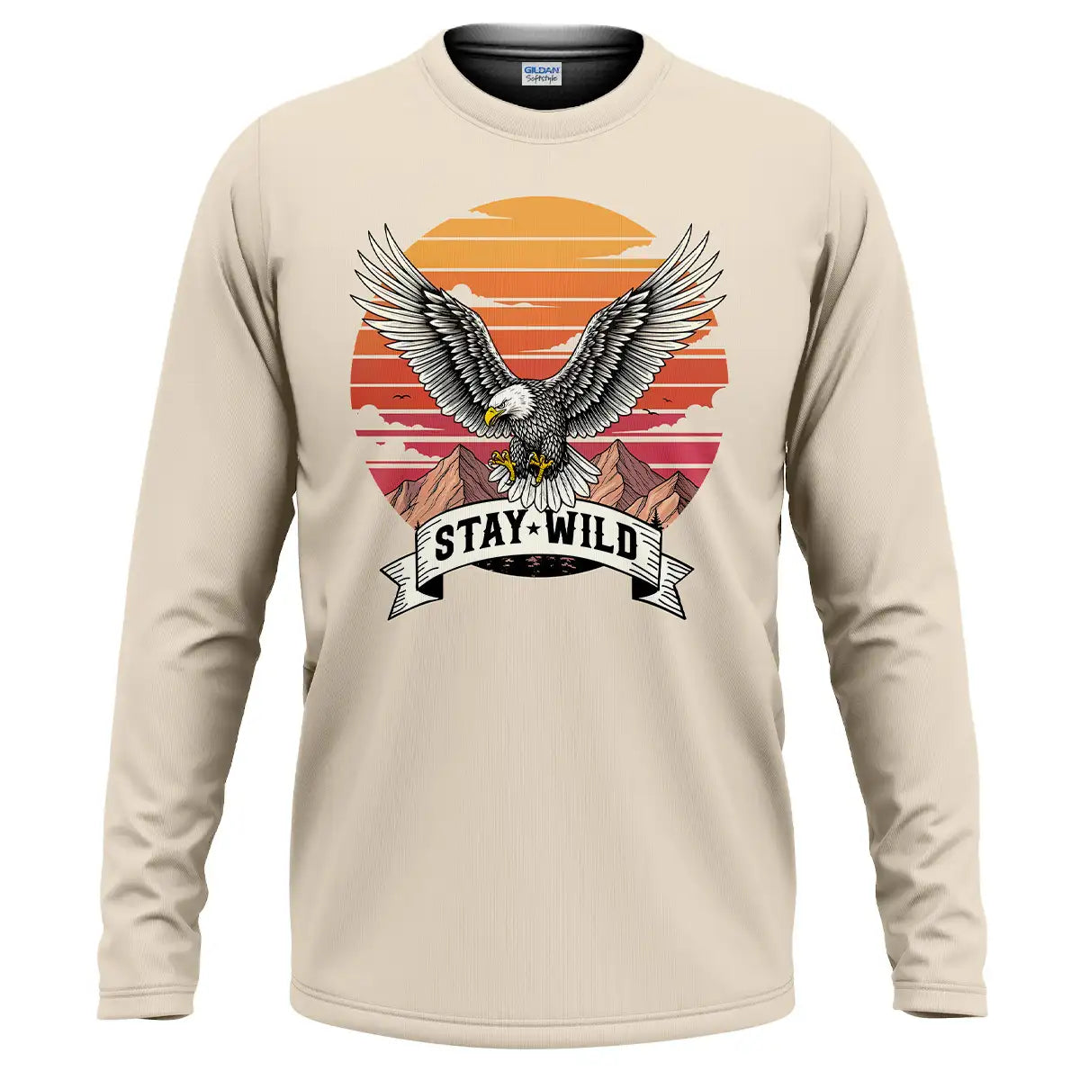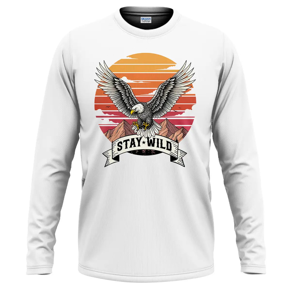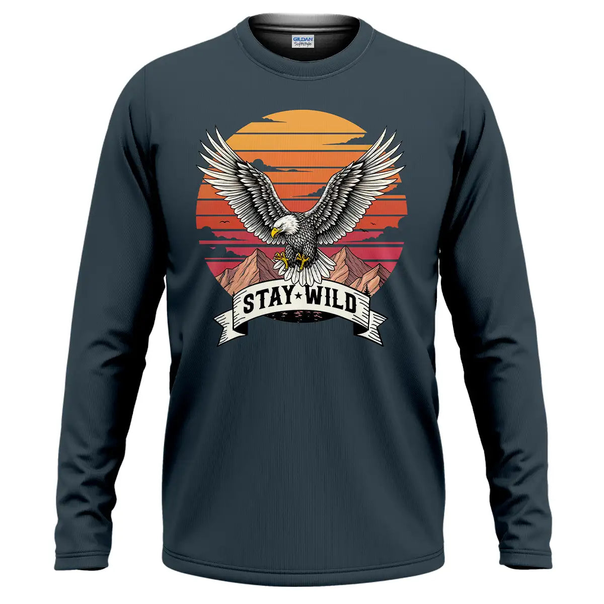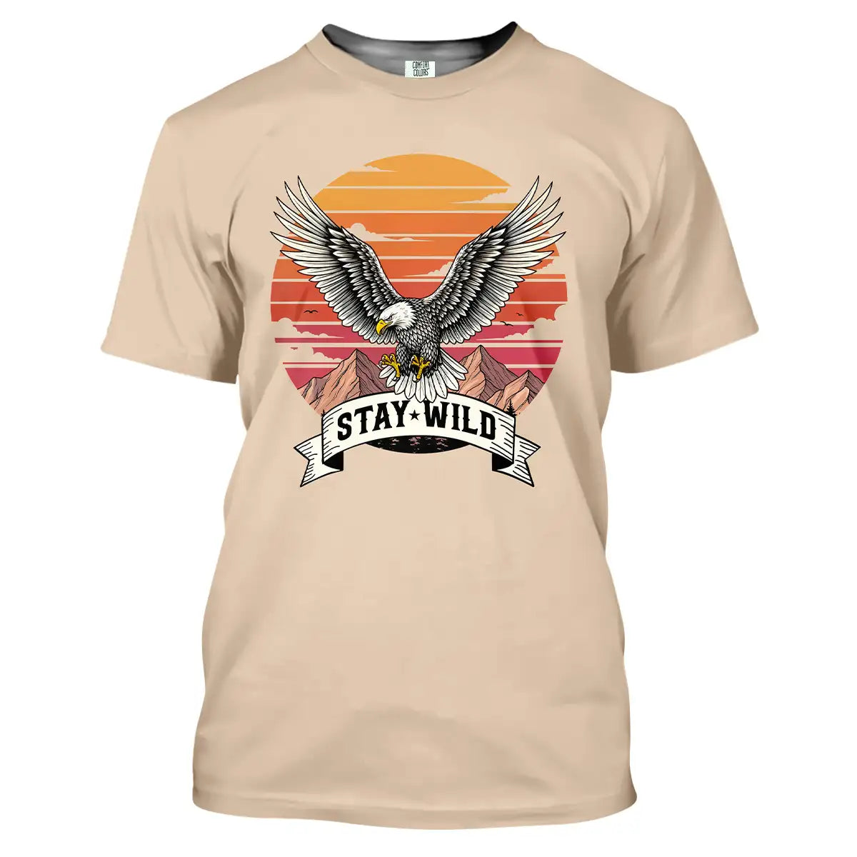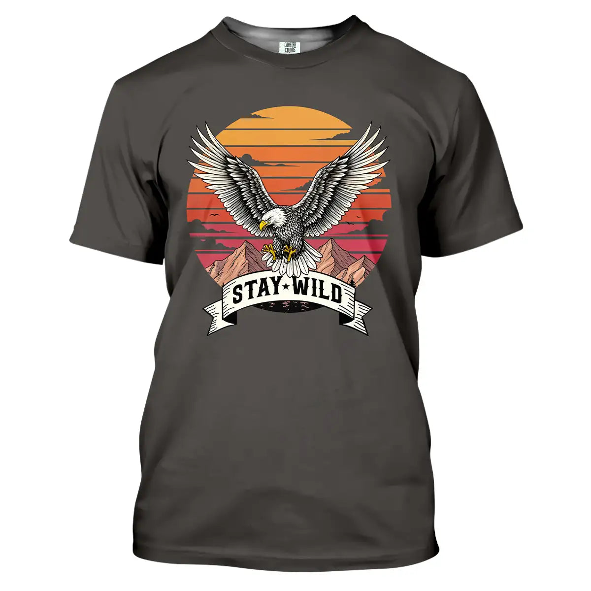 Native America "Stay Wild" T-shirt , Eagle Graphic , Sunset Mountain Tee
