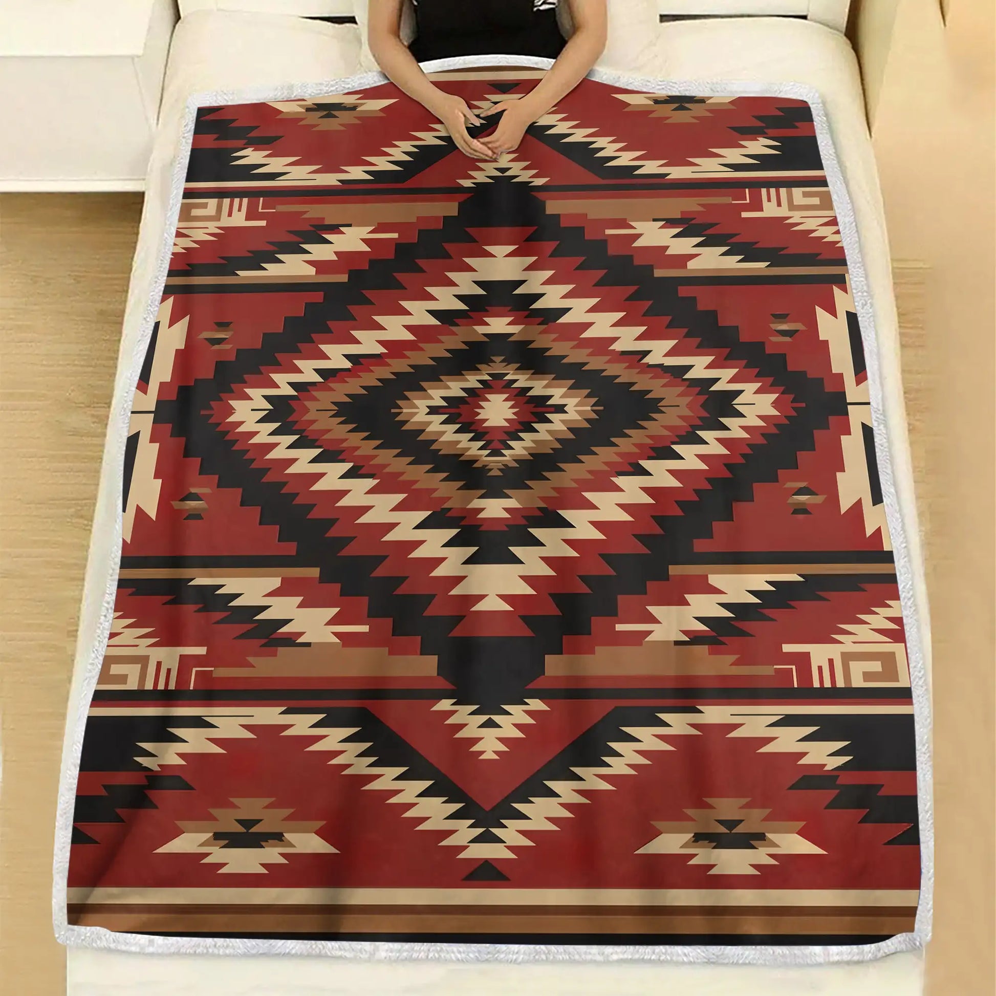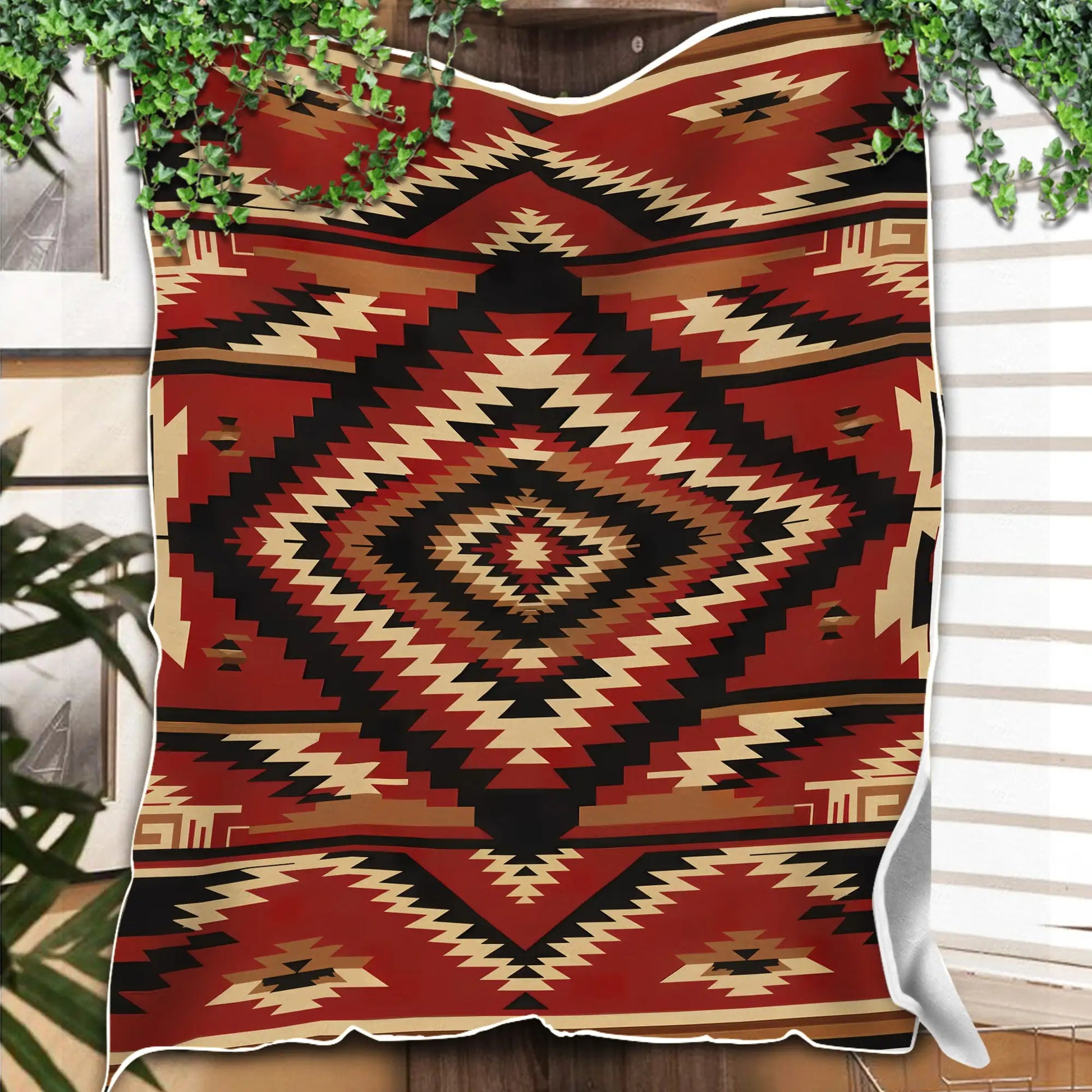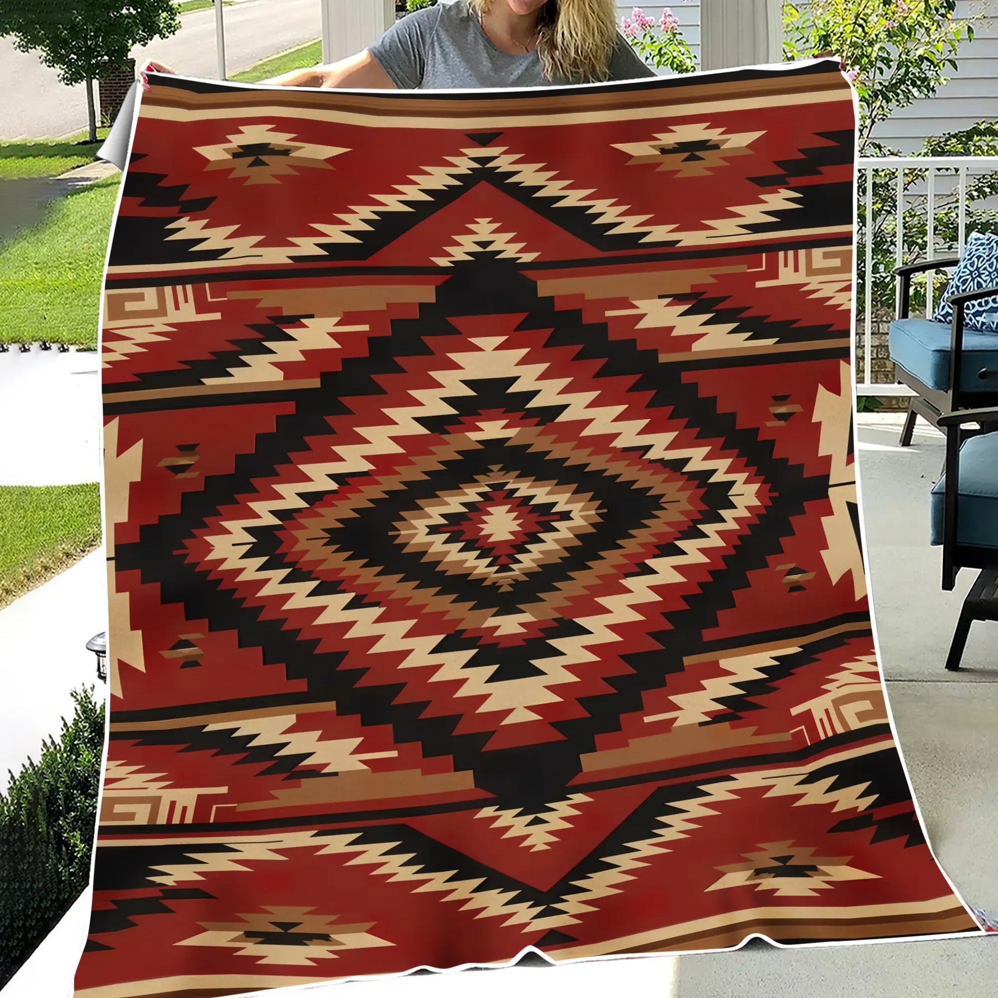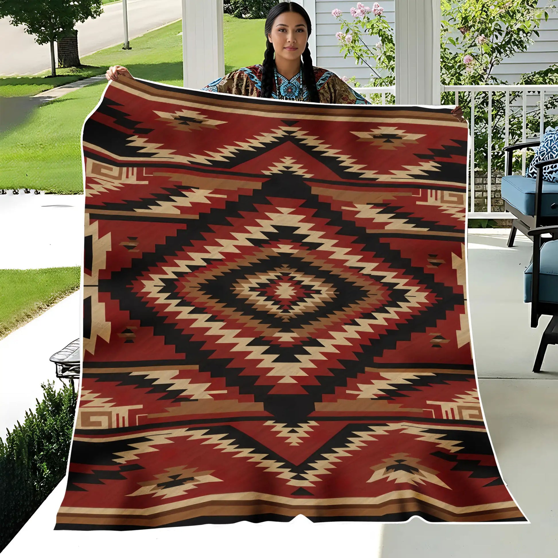 Indigenous Geometric Blanket, Red Diamond Pattern Cozy Home Throw