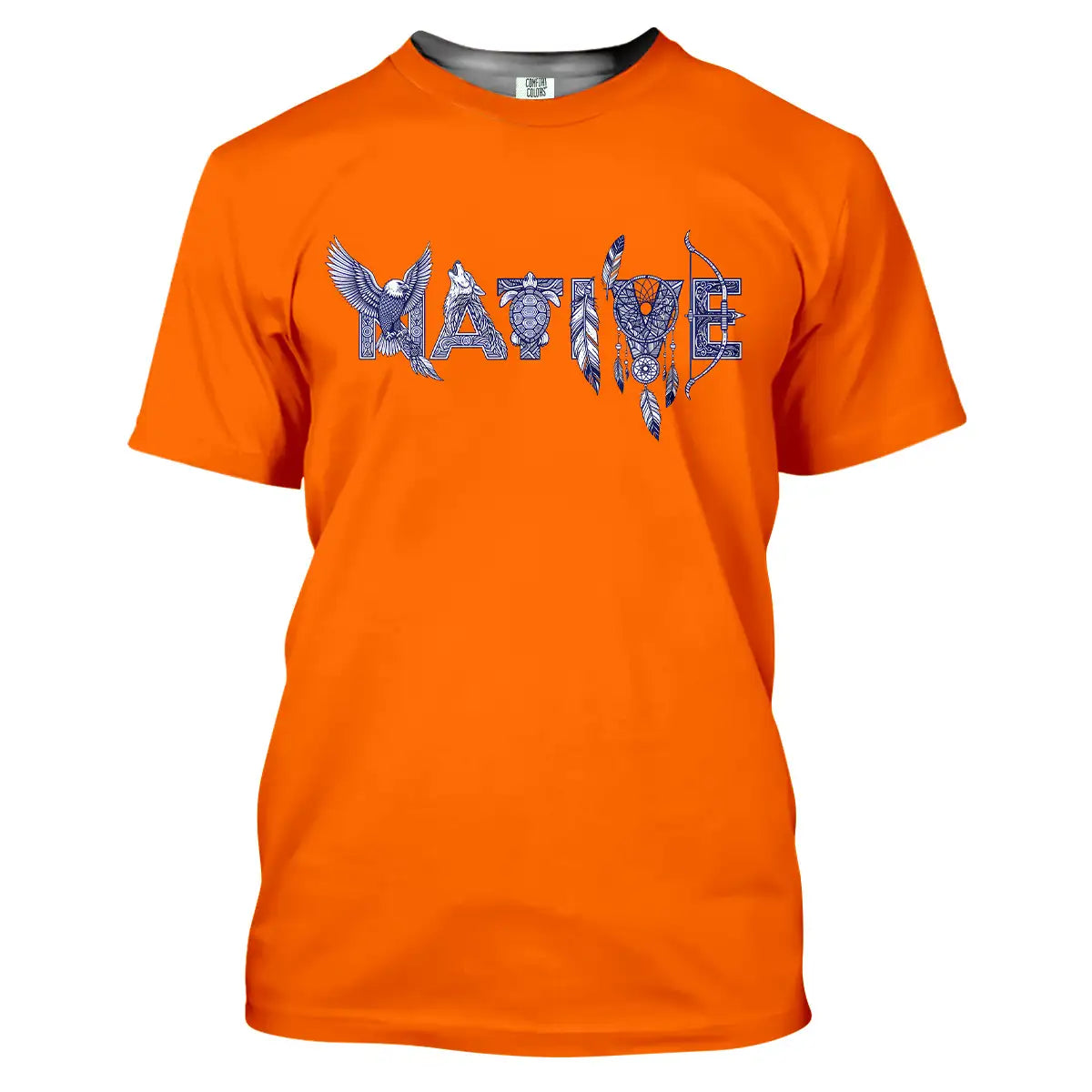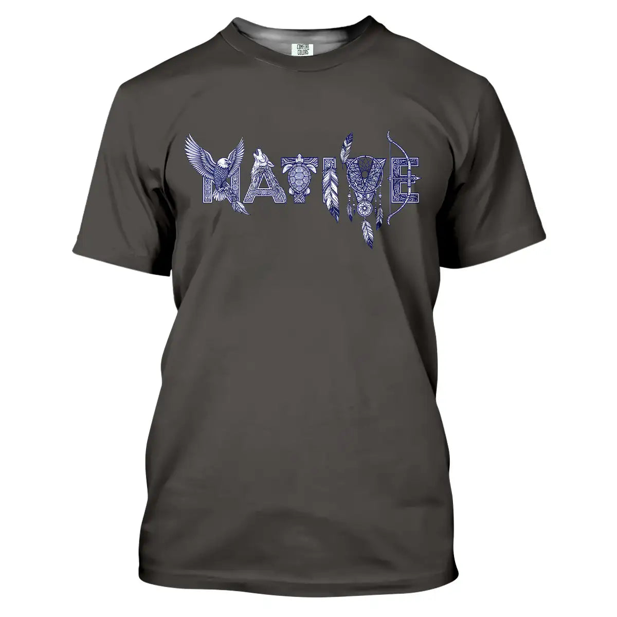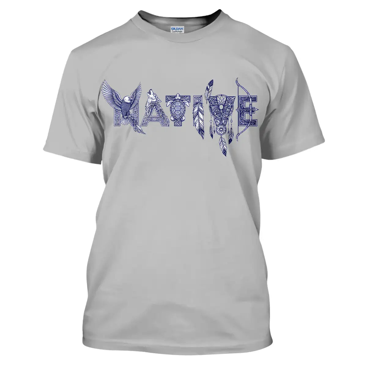 This t-shirt is steeped in Native American culture, with eagles, turtles, feathers, and bows representing strength, protection, and freedom. Each detail is intricately crafted to form the word Native, evoking pride and a sacred connection to nature. The design is more than just a casual wear; it is a symbol of strong heritage, faith, and identity. It is the perfect choice for those who love tribal, classic, and meaningful styles.