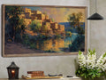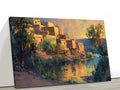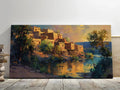 Pueblo Village by the River, Indigenous Canvas Wall Art