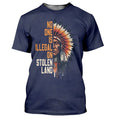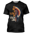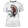No One Is Illegal On Stolen Land Quote - Indigenous Chief Headdress Graphic Tee