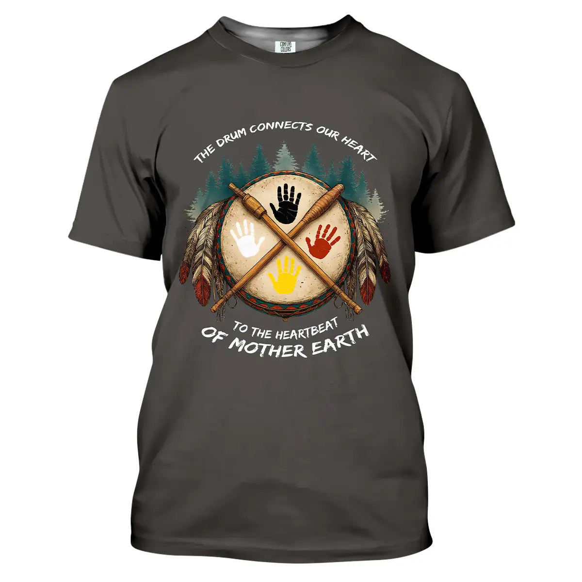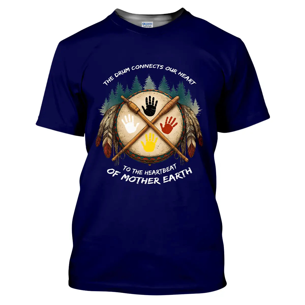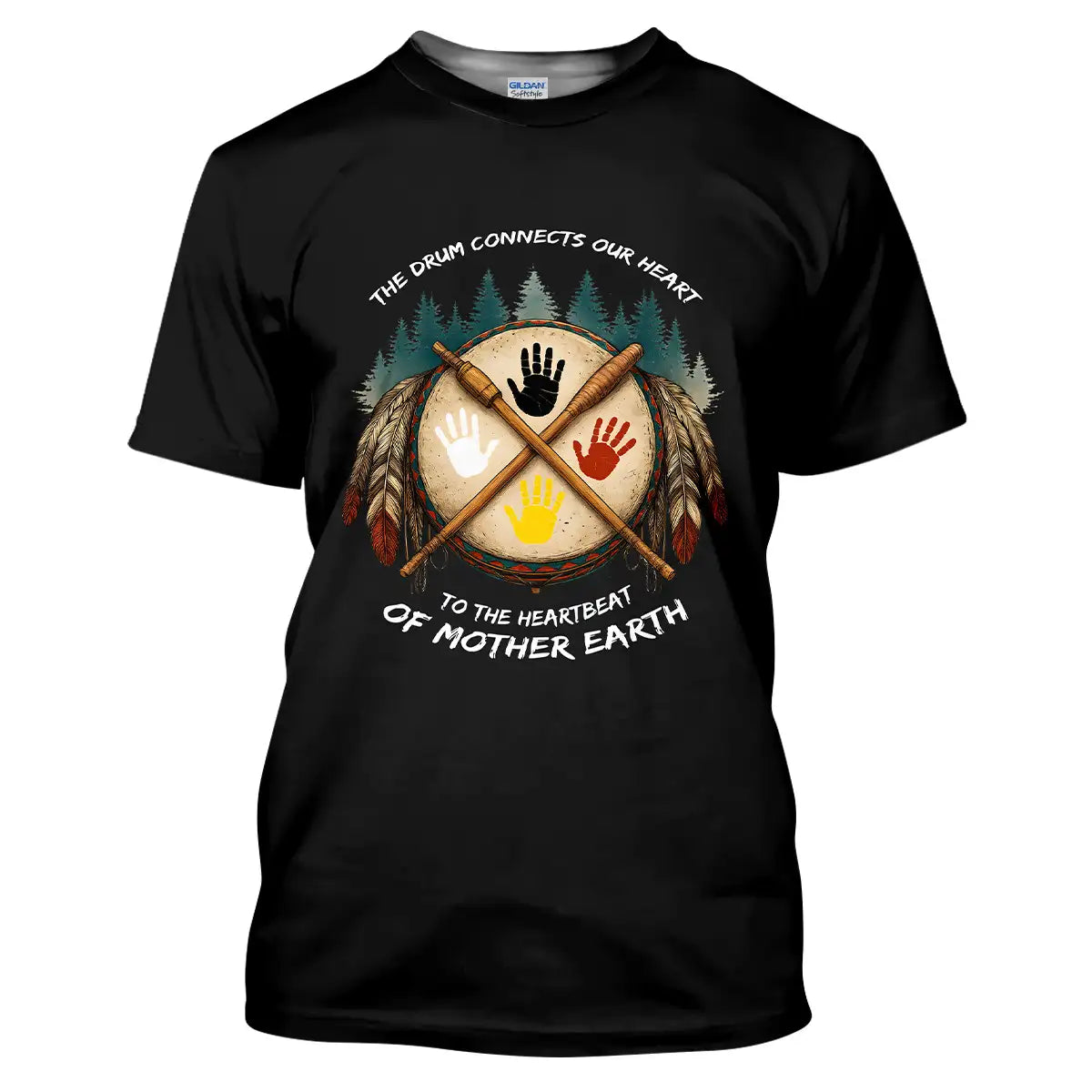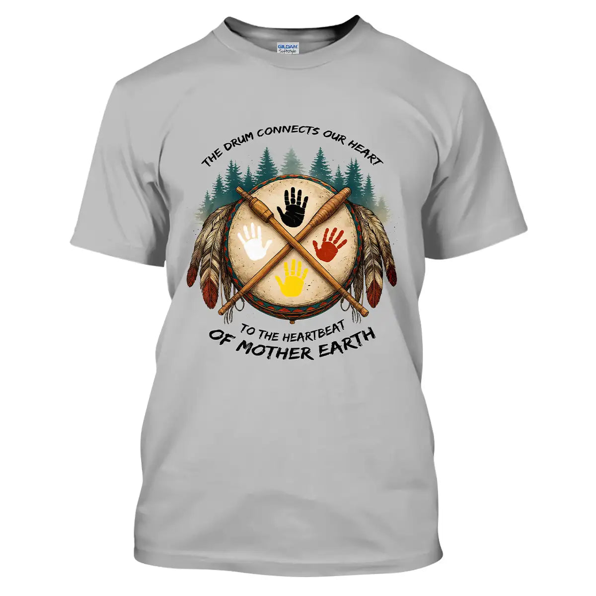 Native American "The Drum Connects Our Heart To The Heartbeat Of Mother Earth" Shirt