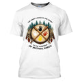 Designed by the traditions of Native American tribes this shirt celebrates the deep spiritual connection between the drum and the heartbeat of Mother Earth The design features a ceremonial drum adorned with four symbolic handprints in black white red and yellow representing unity among all peoples Feathers and crossed drumsticks highlight the sacred role of music in bringing communities together Set against a backdrop of evergreen trees this artwork carries the message that the rhythm of the drum unites hearts and honors the earth Perfect for those who value indigenous culture spirituality and meaningful symbolism