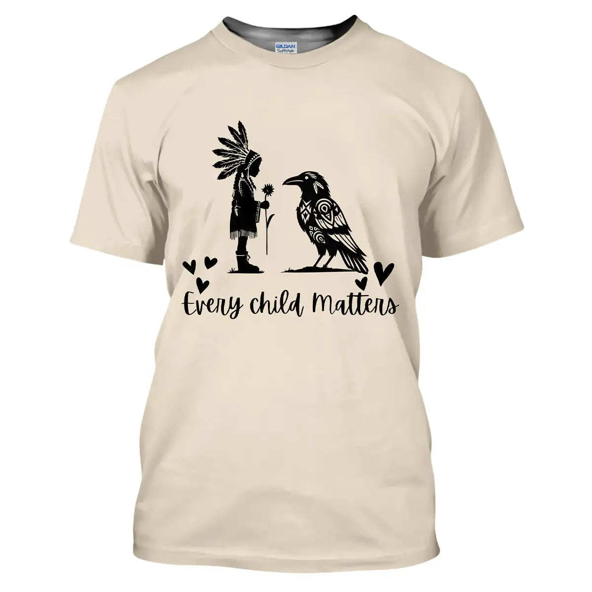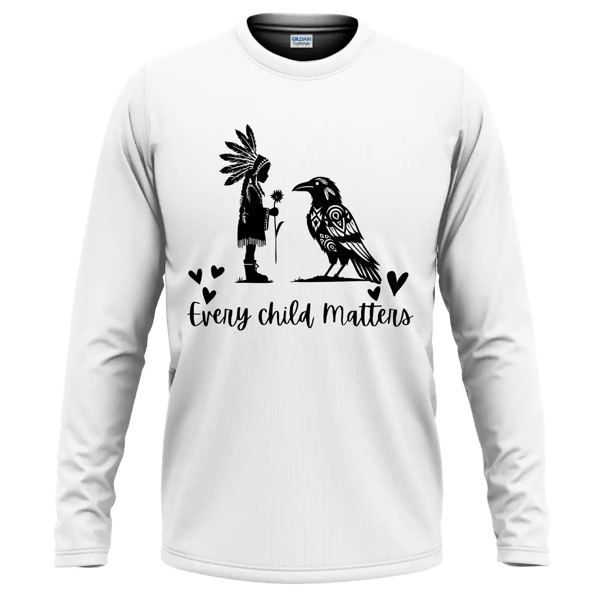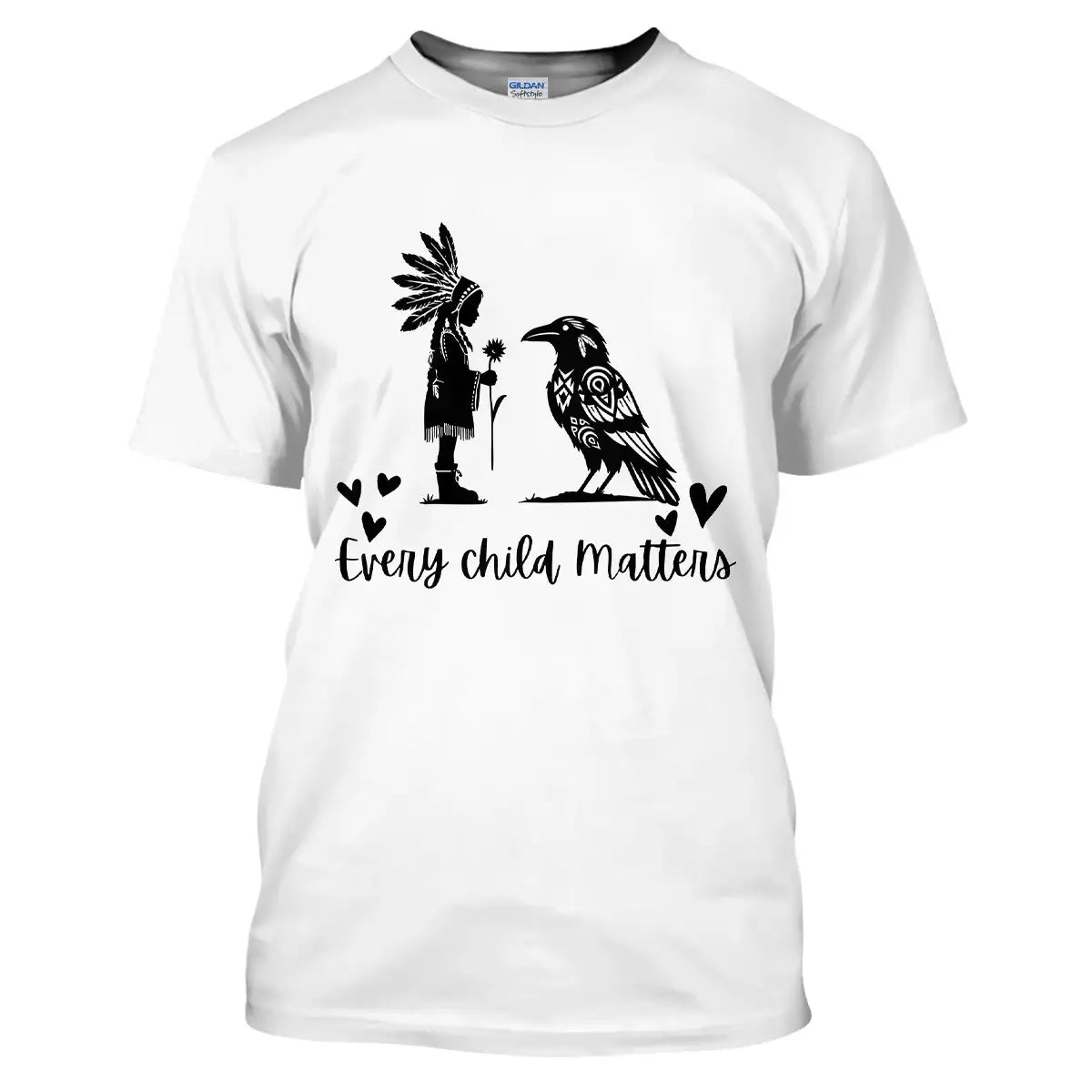 Native American designed "Every Child Matters" Shirt, Tribal Indian Girl with Raven