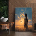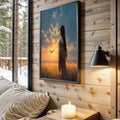 Native American Sunset Wall Art, Girl with Eagle, Western Canvas Print