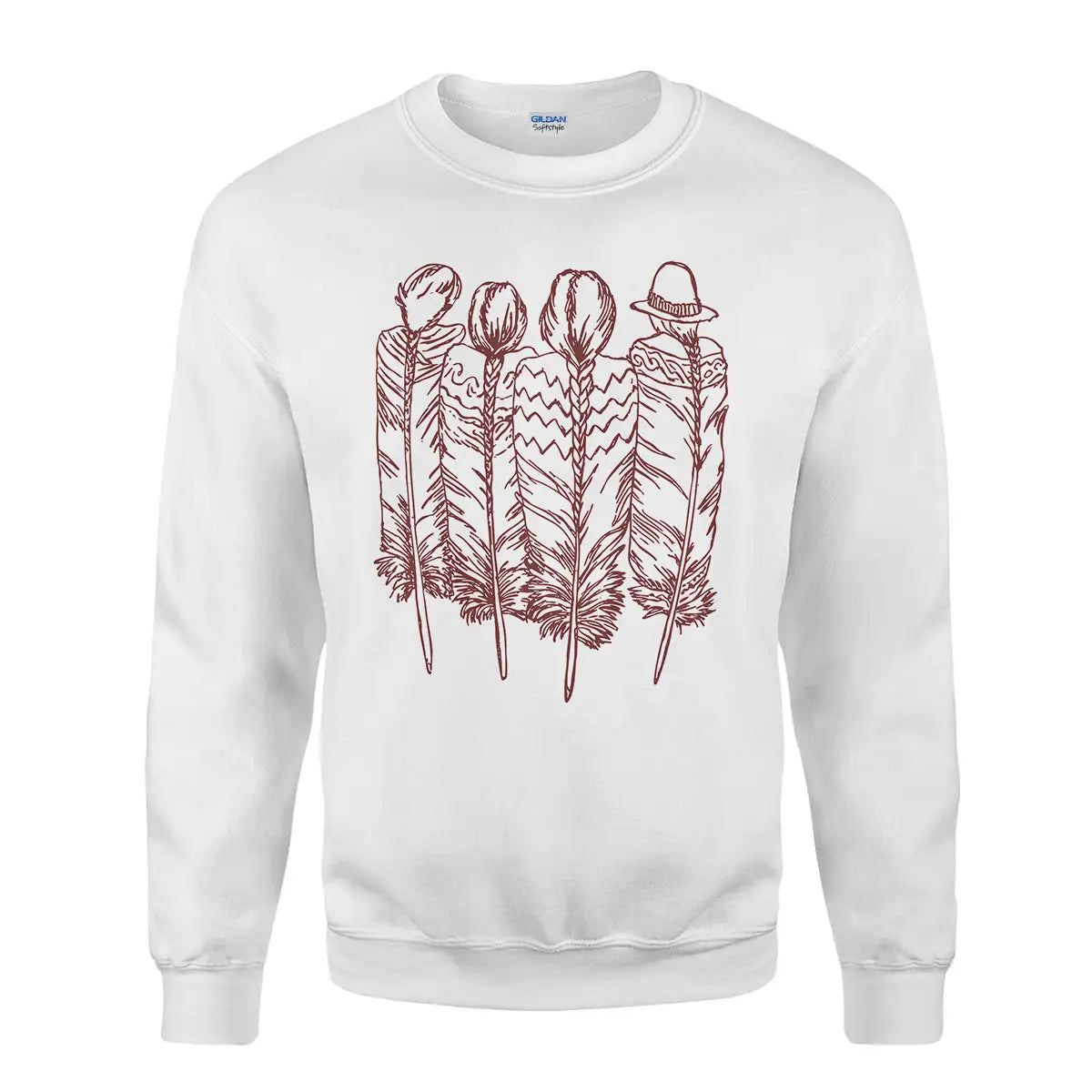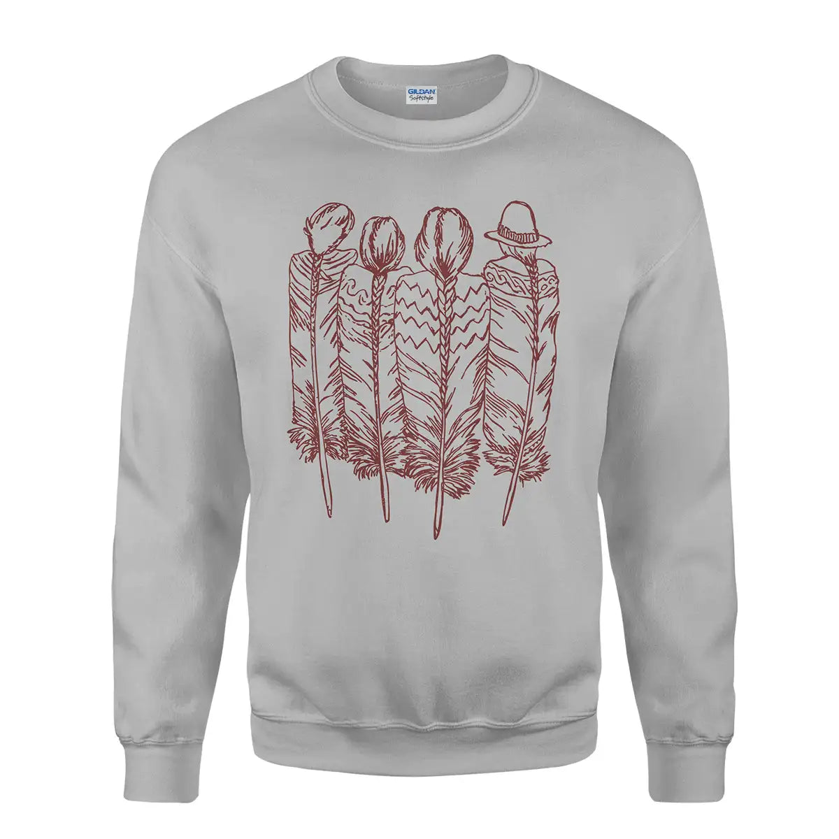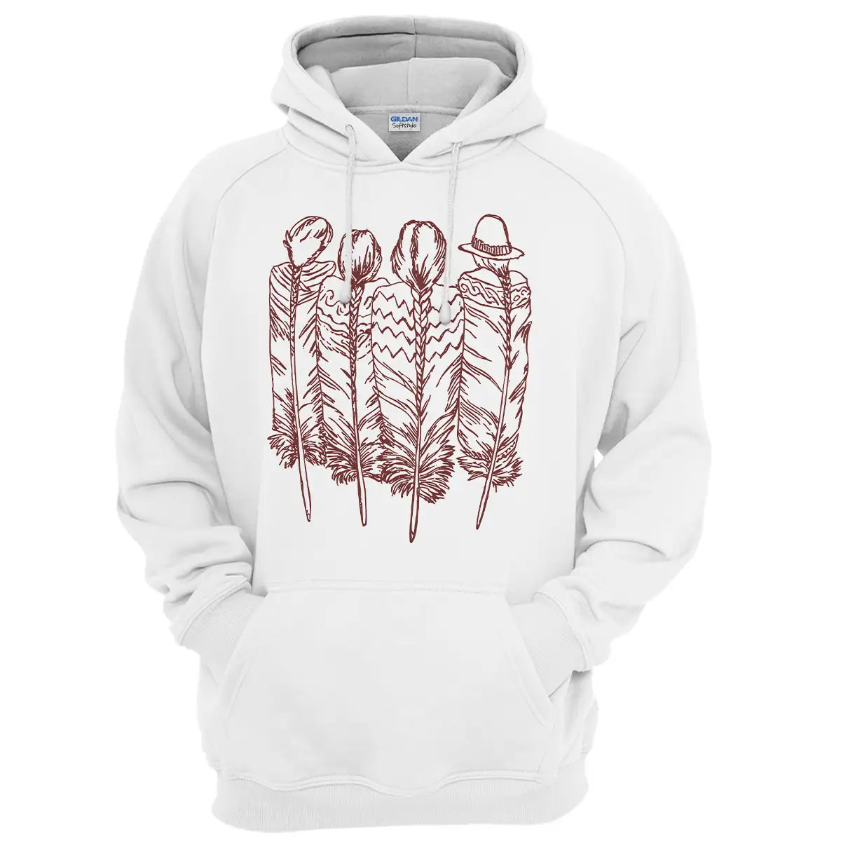 This hoodie features a clean yet powerful design designed by Native American artistry. The four feathers, each adorned with unique patterns, represent values such as honor, strength, freedom, and unity in many Indigenous cultures. Feathers are often gifted as marks of respect and accomplishment, making them a deeply meaningful symbol. Printed in an earthy red tone on a textured white background, the design blends tradition with modern minimalism. Crafted from high-quality, soft fabric, this hoodie offers all-day comfort and durability, making it perfect for casual wear, cultural events, or as a thoughtful gift for those who appreciate heritage and meaningful art.