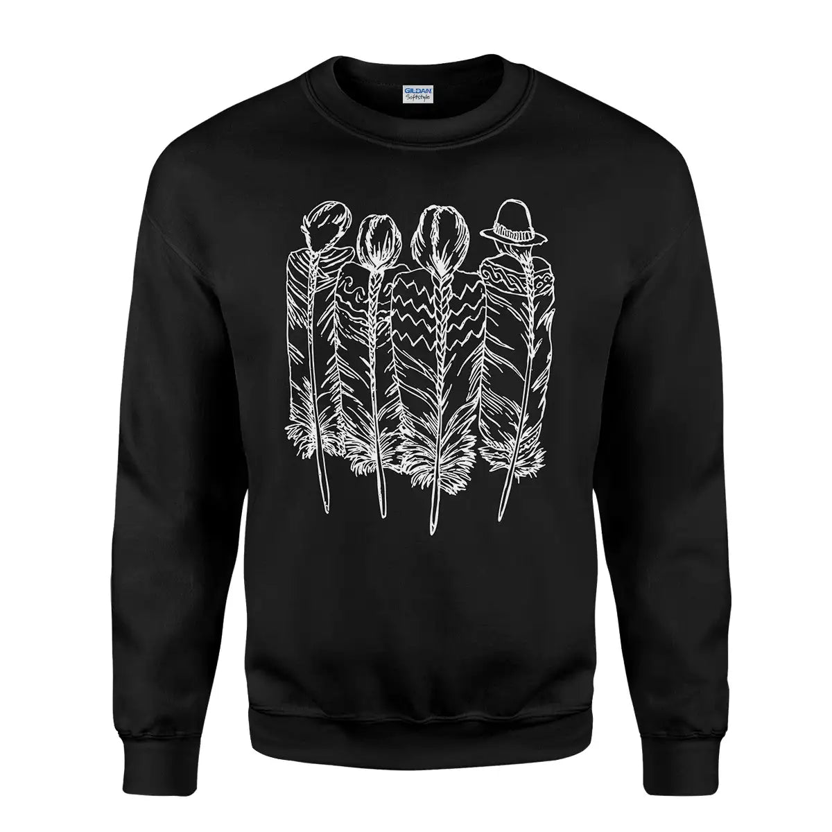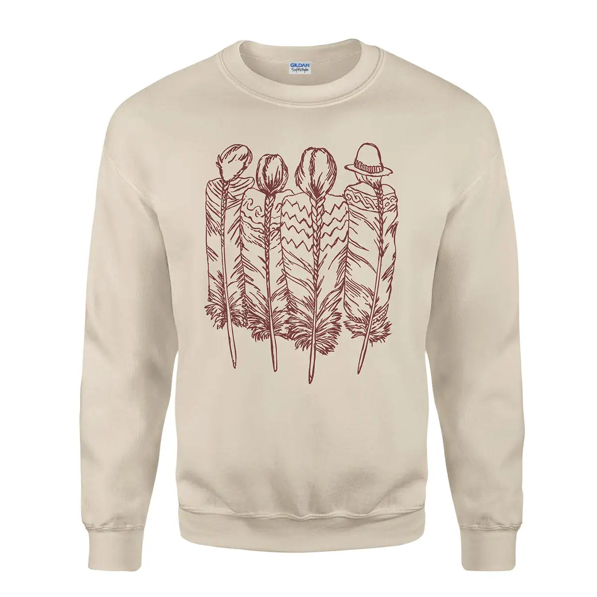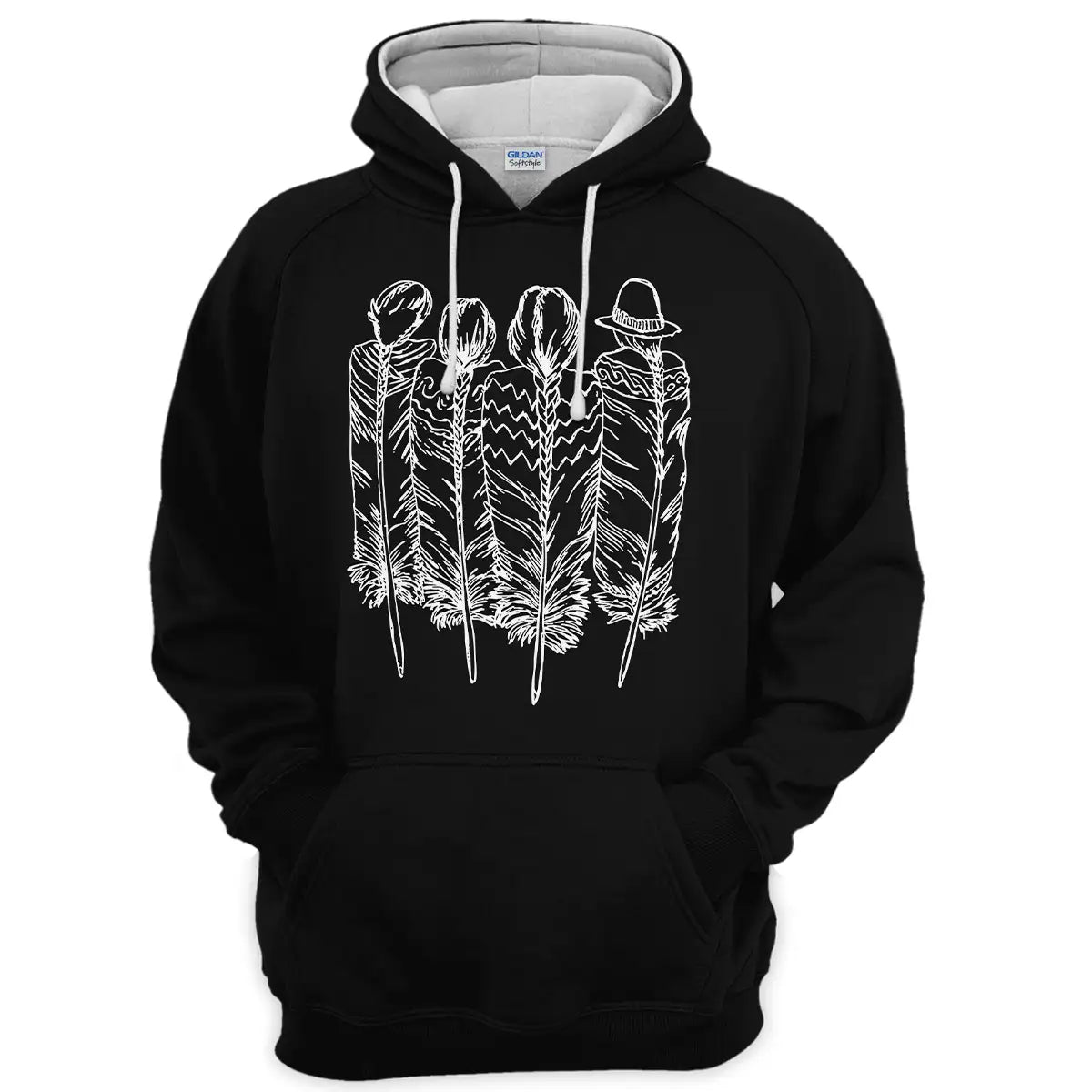 This hoodie features a clean yet powerful design designed by Native American artistry. The four feathers, each adorned with unique patterns, represent values such as honor, strength, freedom, and unity in many Indigenous cultures. Feathers are often gifted as marks of respect and accomplishment, making them a deeply meaningful symbol. Printed in an earthy red tone on a textured white background, the design blends tradition with modern minimalism. Crafted from high-quality, soft fabric, this hoodie offers all-day comfort and durability, making it perfect for casual wear, cultural events, or as a thoughtful gift for those who appreciate heritage and meaningful art.