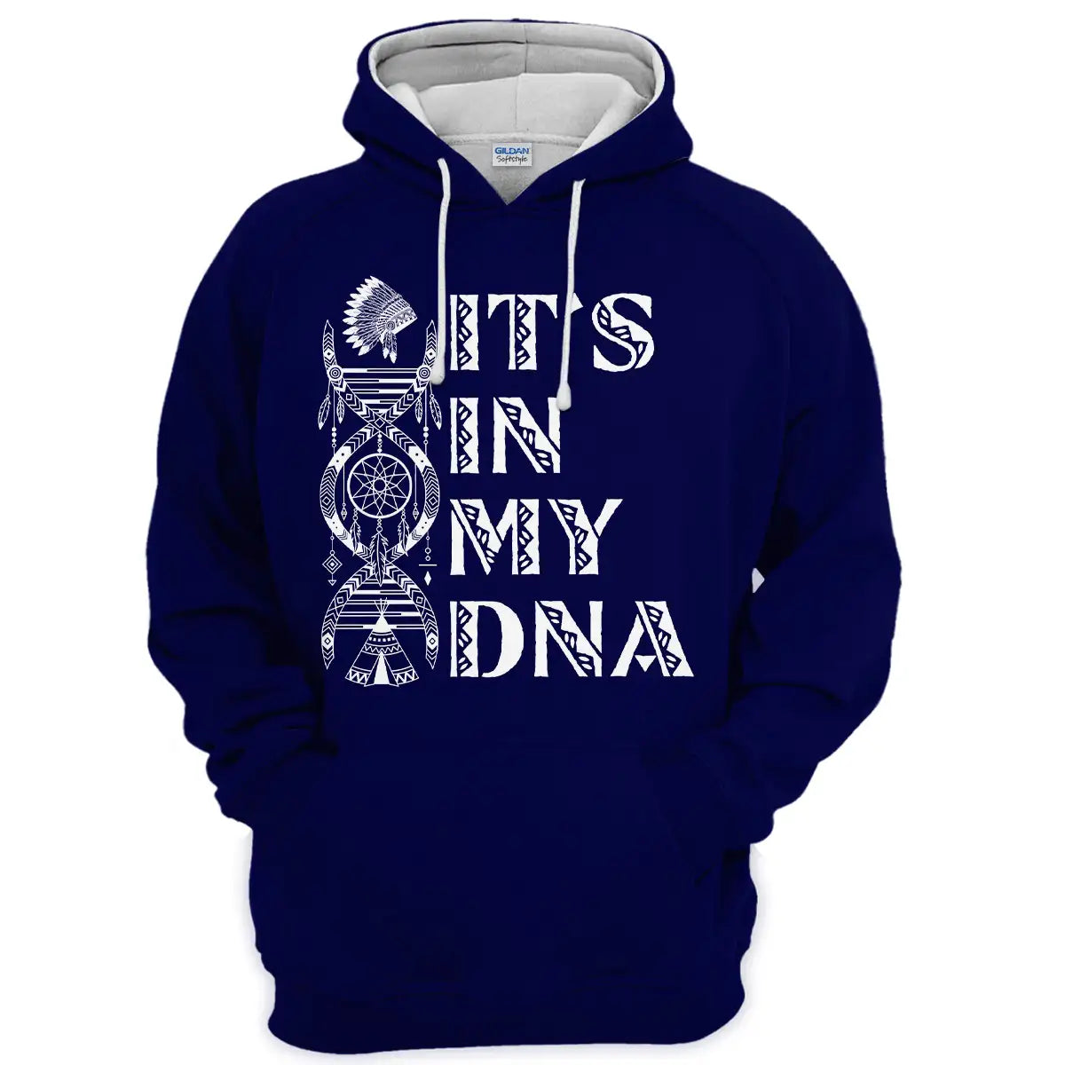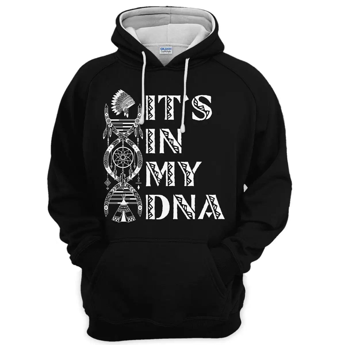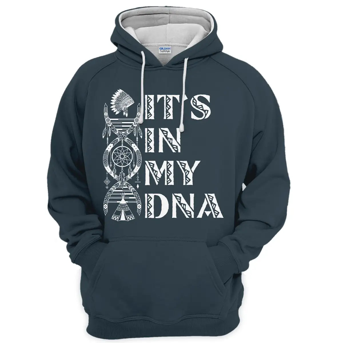 This Native American hoodie proudly displays the quote “It’s In My DNA” with a unique tribal-designed design featuring dreamcatcher and warrior symbols. The artwork draws inspiration from Indigenous traditions, celebrating strength, heritage, and the unbroken connection to ancestry. More than just clothing, this hoodie is a statement of pride and identity. Crafted for comfort and warmth, it’s perfect for casual wear or as a meaningful gift for those who honor Native culture. Every detail reflects resilience and the deep roots of Native heritage, making it a bold expression of cultural pride.