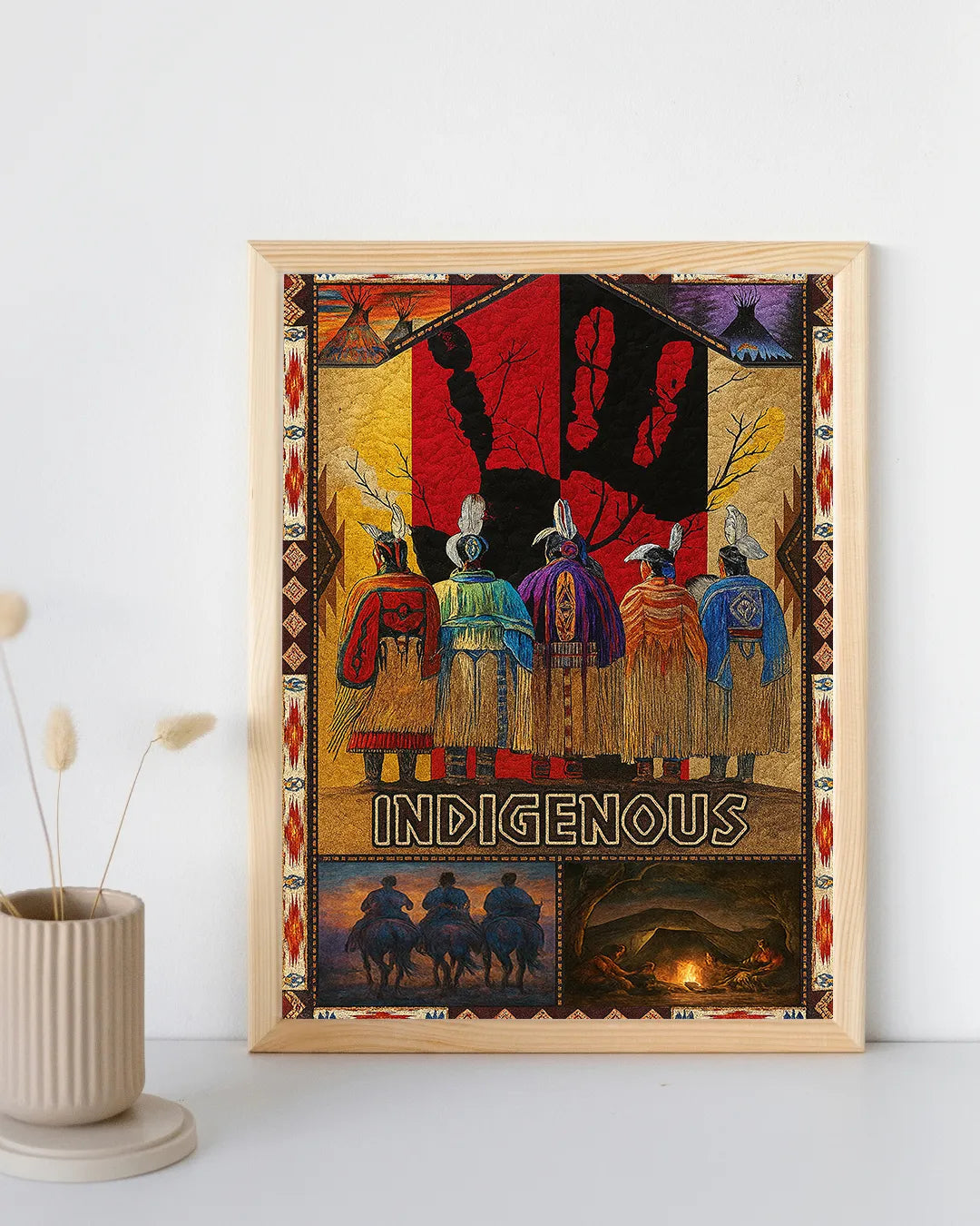 Native America Canvas Print “INDIGENOUS” Handprint & Tribal Scenes Wall Art