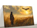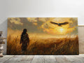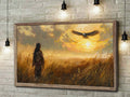 Native American Sunset Wall Art, Tribal Warrior and Eagle Canvas Poster