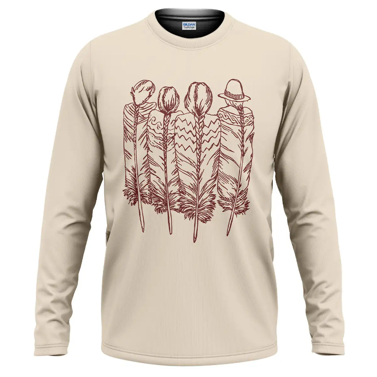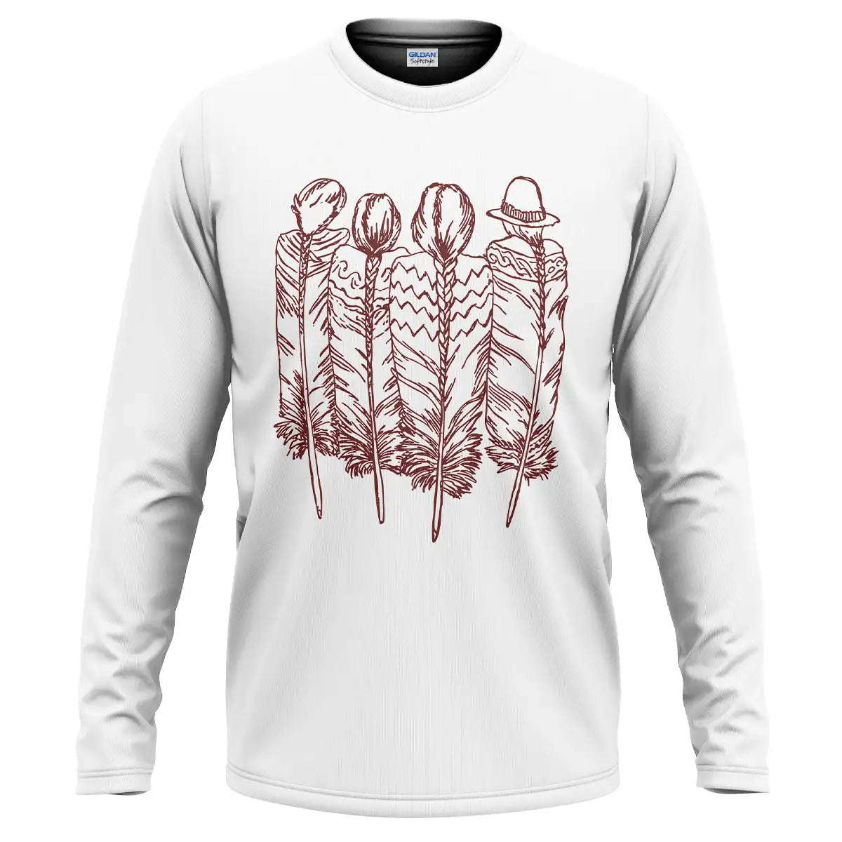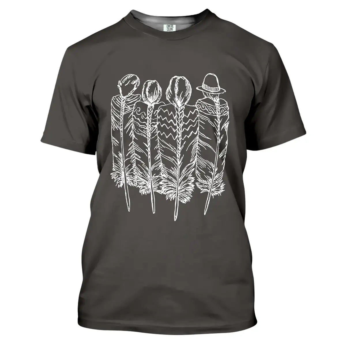 Minimalist tee with four feather Native tribal line art