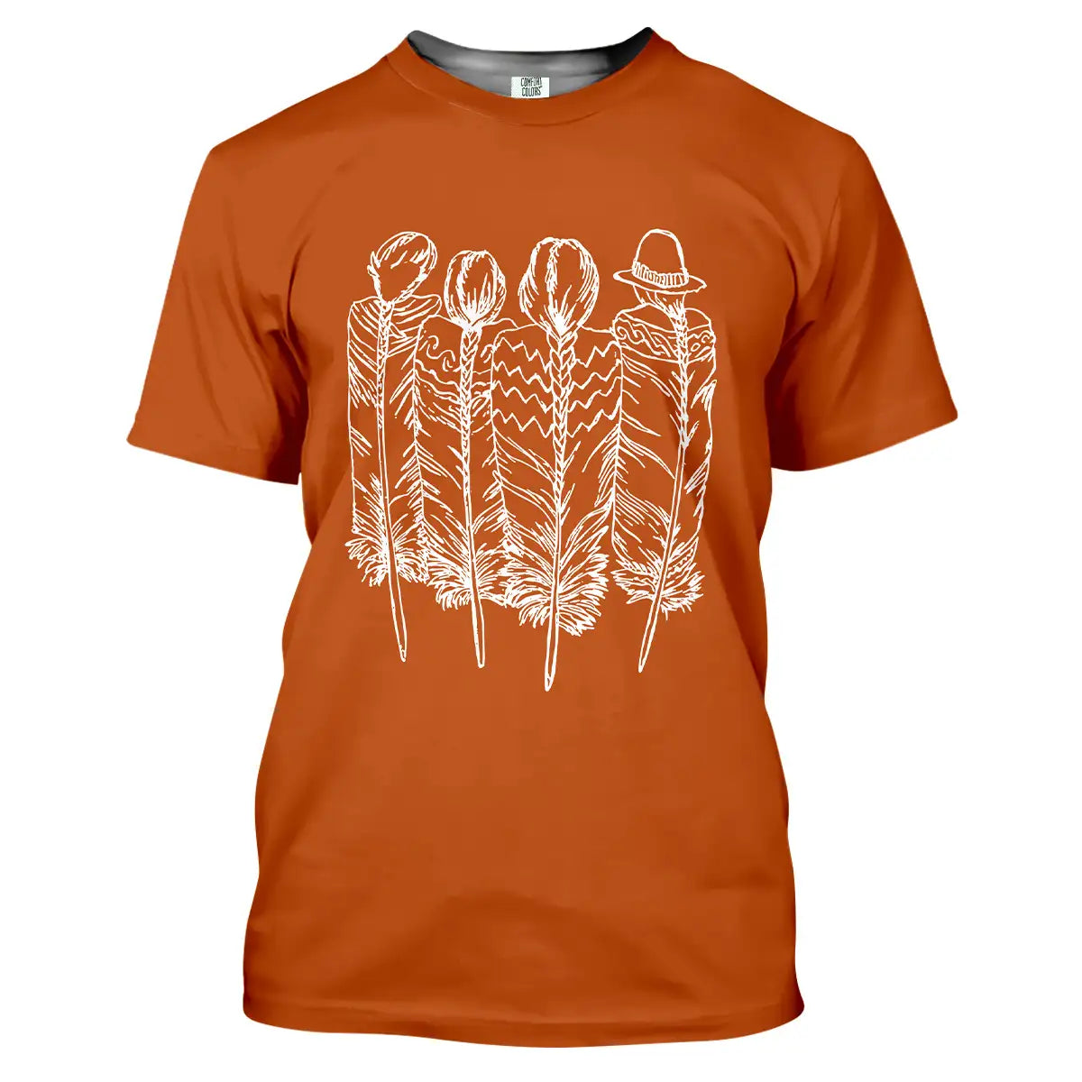 This T-shirt blends simplicity with cultural depth through its four-feather tribal design, designed by Native American traditions. Each feather is adorned with unique patterns, representing values such as honor, strength, freedom, and unity—core principles in many Indigenous communities. Feathers hold deep spiritual meaning and are often symbols of respect, courage, and connection to nature. Printed in a crisp white outline on a deep navy background, the design offers a versatile, modern look while paying homage to heritage. Made from premium, breathable fabric, this shirt is ideal for daily wear, cultural events, or as a thoughtful gift for heritage enthusiasts and art lovers.