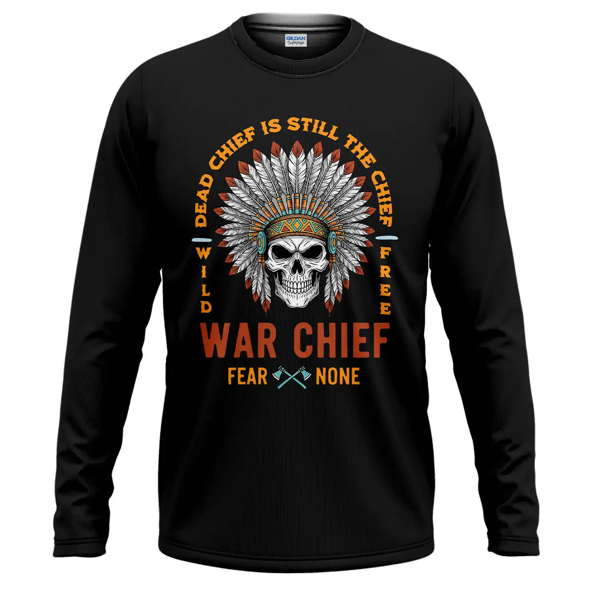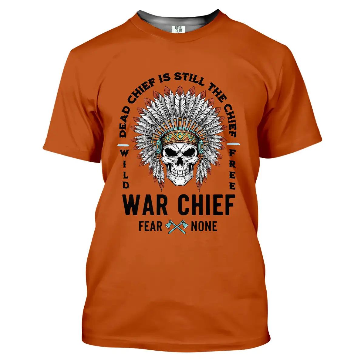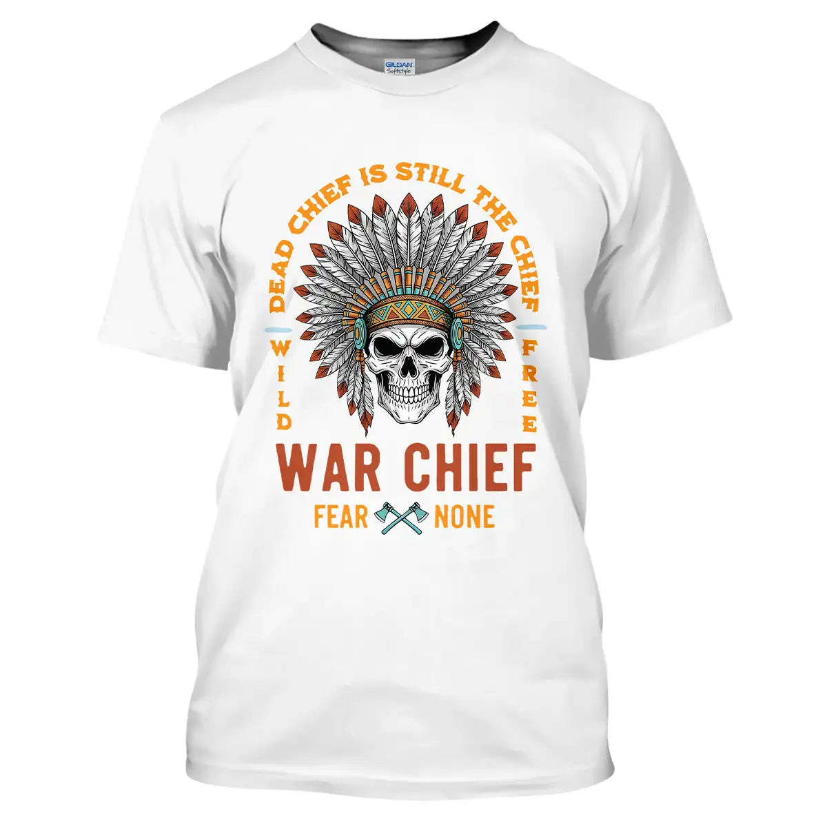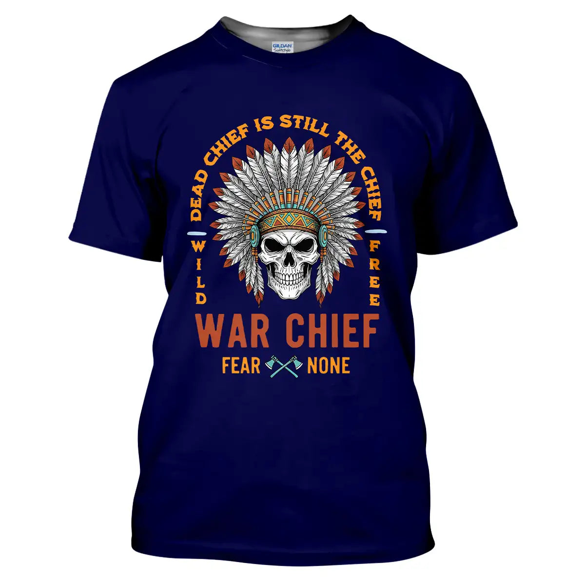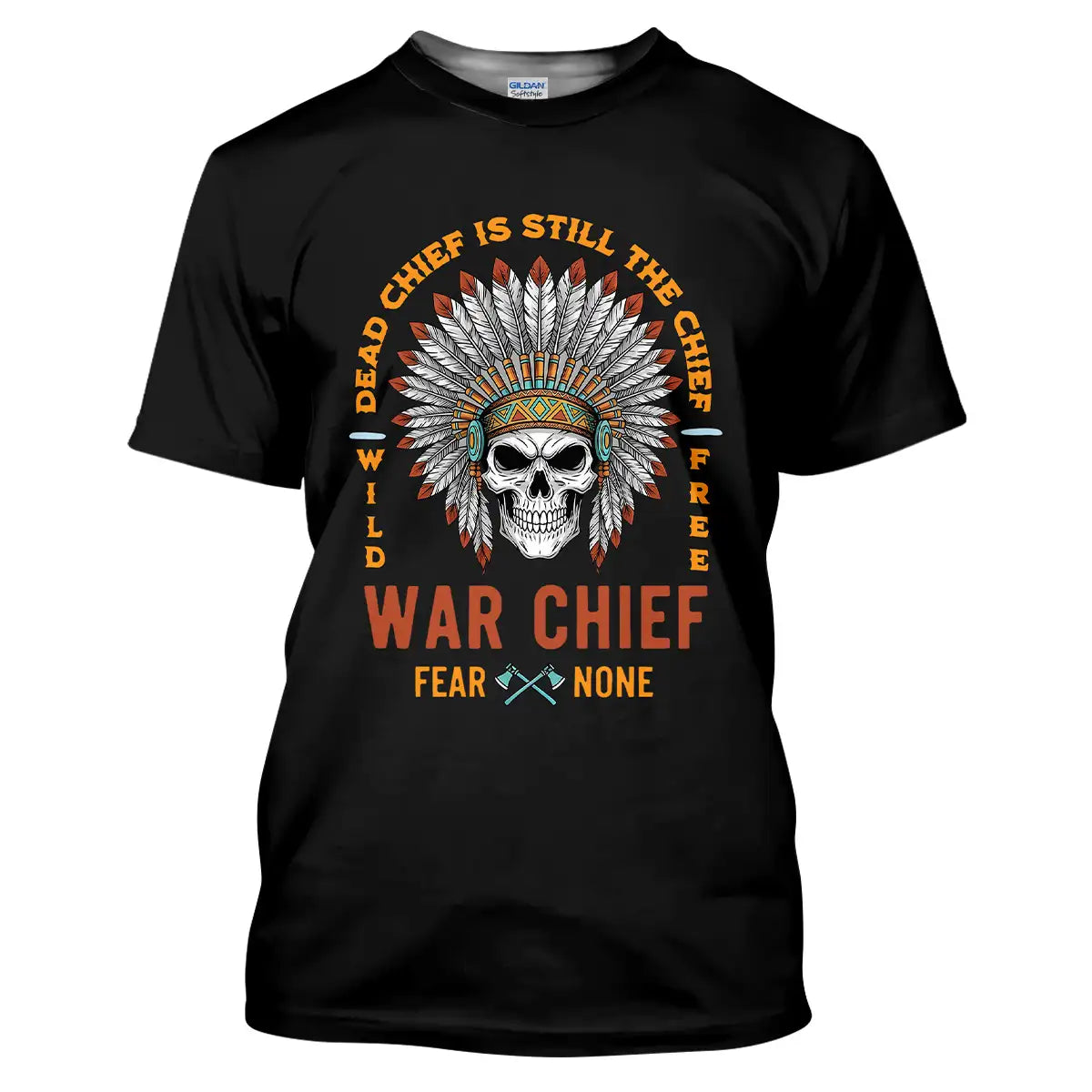 This T-shirt delivers a bold mix of cultural symbolism and fearless energy. At its center is a detailed skull adorned with a vibrant Native American war chief headdress, symbolizing strength, resilience, and leadership. Surrounding it is the powerful quote Dead Chief Is Still The Chief – Fear None along with Wild Free, reflecting a warrior spirit that never fades. The colorful feather arrangement contrasts strikingly against the black background, making the design visually captivating. Made from premium, breathable fabric, this tee offers all-day comfort and durability. It’s perfect for casual wear, themed events, or as a standout gift for bold and confident individuals.