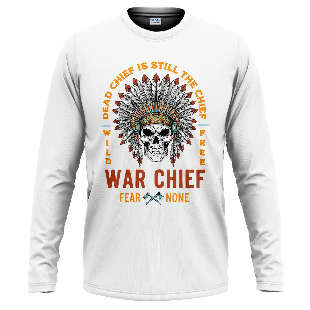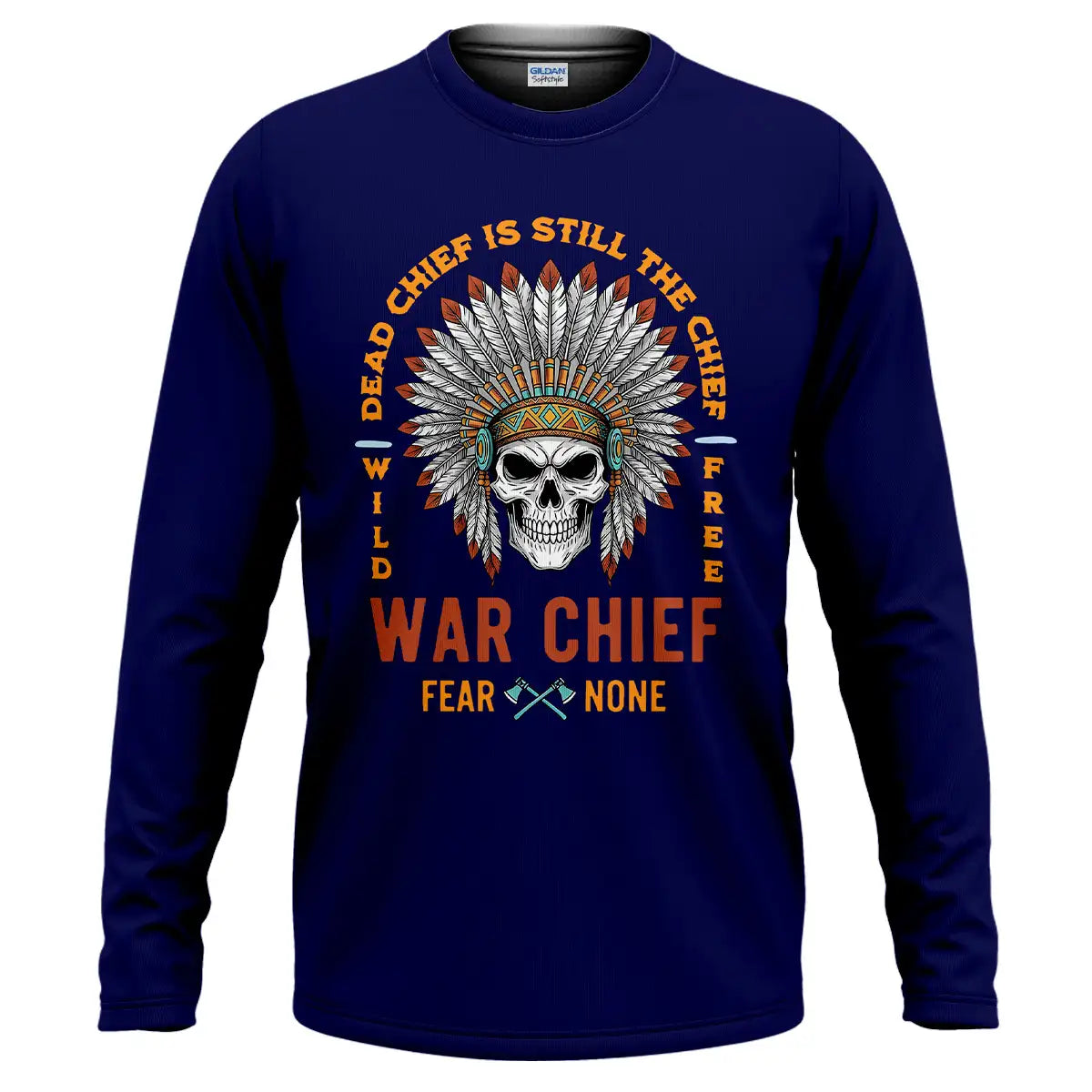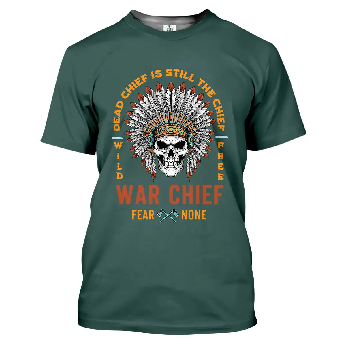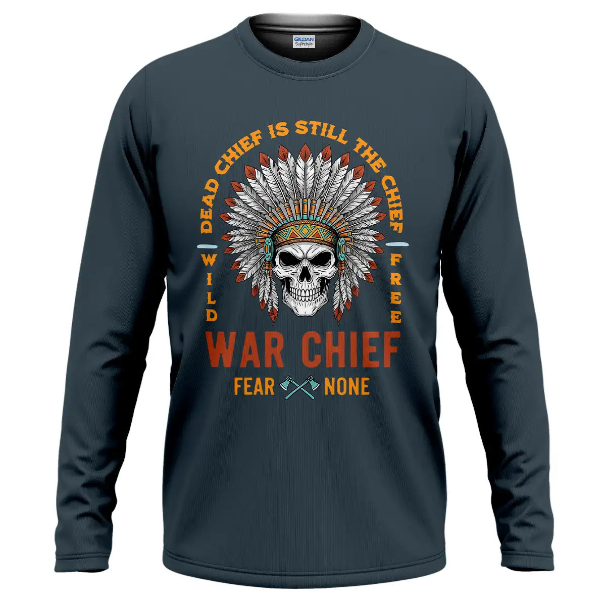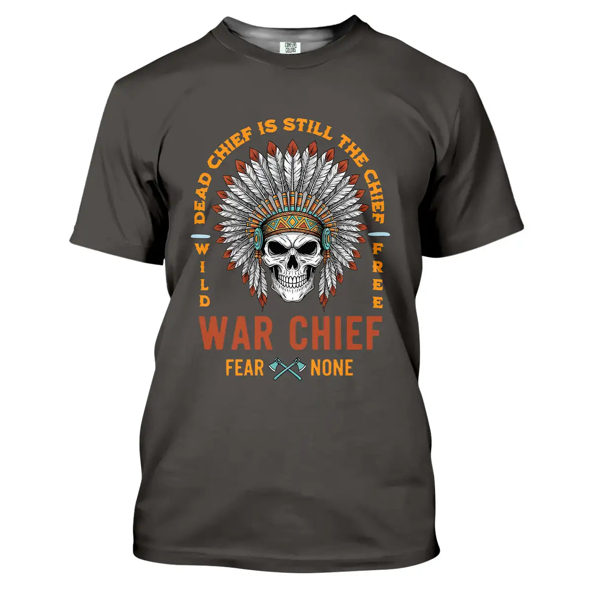 This T-shirt delivers a bold mix of cultural symbolism and fearless energy. At its center is a detailed skull adorned with a vibrant Native American war chief headdress, symbolizing strength, resilience, and leadership. Surrounding it is the powerful quote Dead Chief Is Still The Chief – Fear None along with Wild Free, reflecting a warrior spirit that never fades. The colorful feather arrangement contrasts strikingly against the black background, making the design visually captivating. Made from premium, breathable fabric, this tee offers all-day comfort and durability. It’s perfect for casual wear, themed events, or as a standout gift for bold and confident individuals.