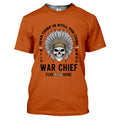 Bold tee with skull war chief and fearless warrior quote