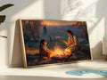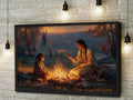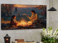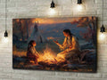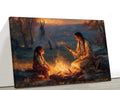 Campfire Storytelling Mother and Child Canvas, Cultural Canvas Wall Art