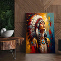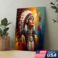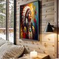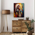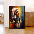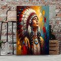 Native American Woman Chief Canvas Wall Art | Tribal Headdress Painting