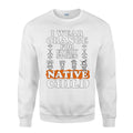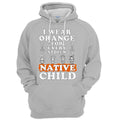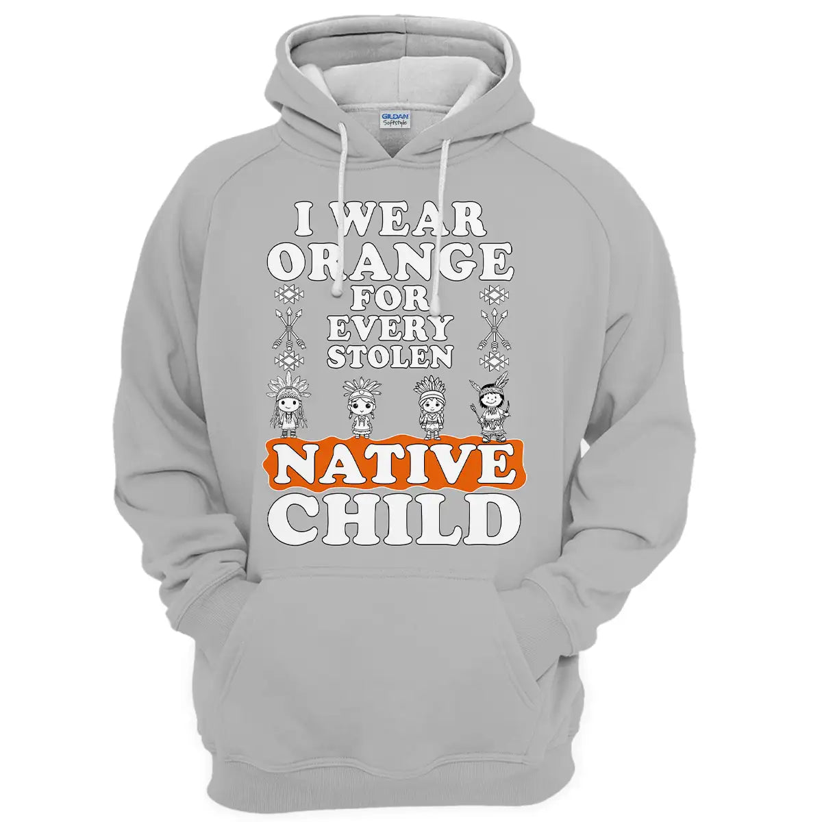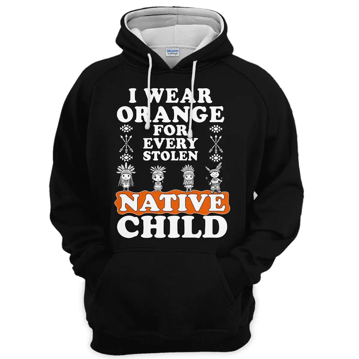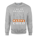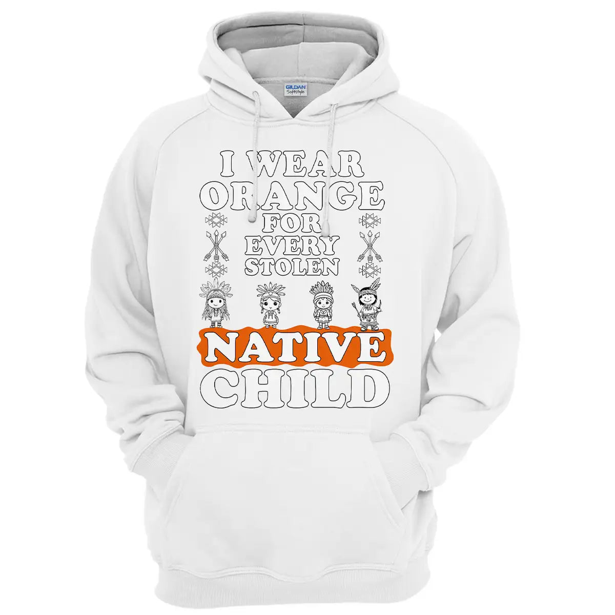Drawn from Plains and Great Lakes communities, this design carries remembrance and care. Bright white lettering on deep black centers the pledge I wear orange for every stolen Native child. Small child figures and floral motifs echo beadwork and ribbon patterns seen at gatherings, walks, and classrooms. Many customers want apparel that feels respectful, meaningful, and comfortable rather than loud slogans. This crewneck is made soft and warm with durable print so the message lasts. Wear it to start gentle conversation, lift survivors, and keep memory close. Every purchase helps keep attention on safety, language, and home for children everywhere.