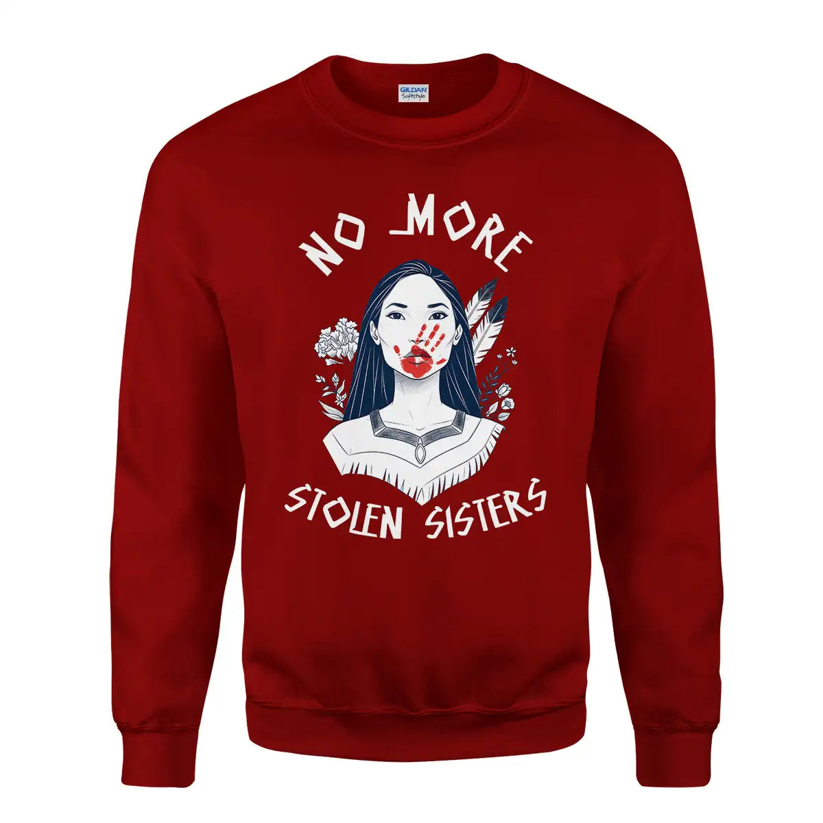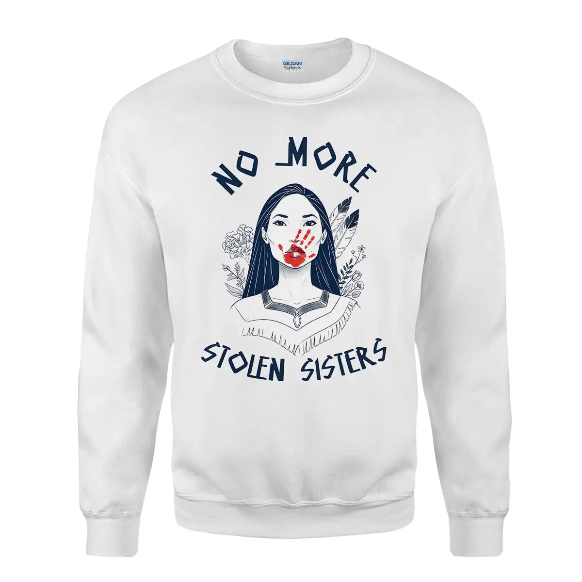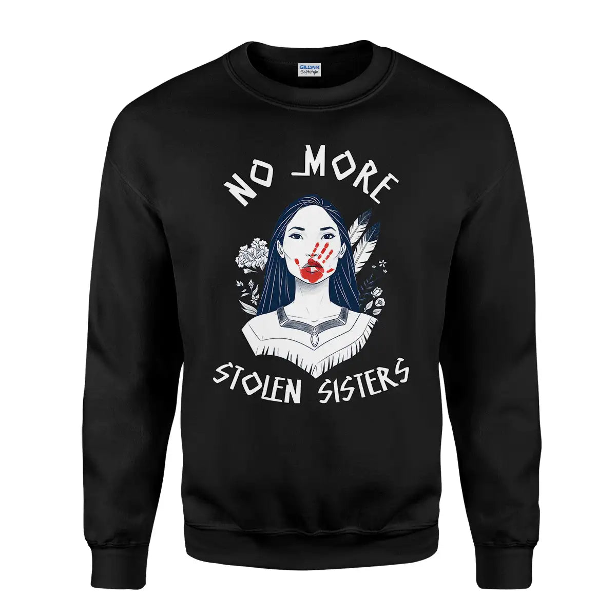 This Native American-designed hoodie is designed to honor the powerful message of No More Stolen Sisters, which highlights the importance of raising awareness for missing Indigenous women. The striking feathered headdress and bold design capture the spirit of the Native American culture, making it a meaningful and empowering piece. Whether you’re wearing it for cultural pride or to support the cause, this hoodie is perfect for women and supporters of Indigenous rights. The striking graphic design brings an essential conversation to the forefront in a stylish and impactful way.