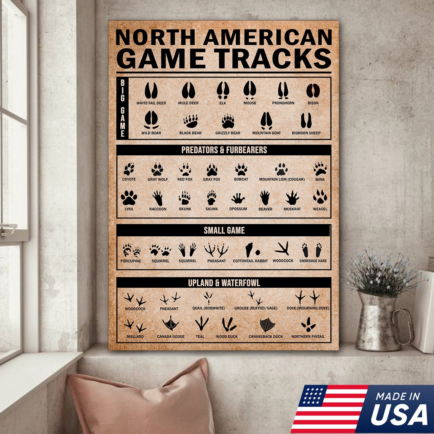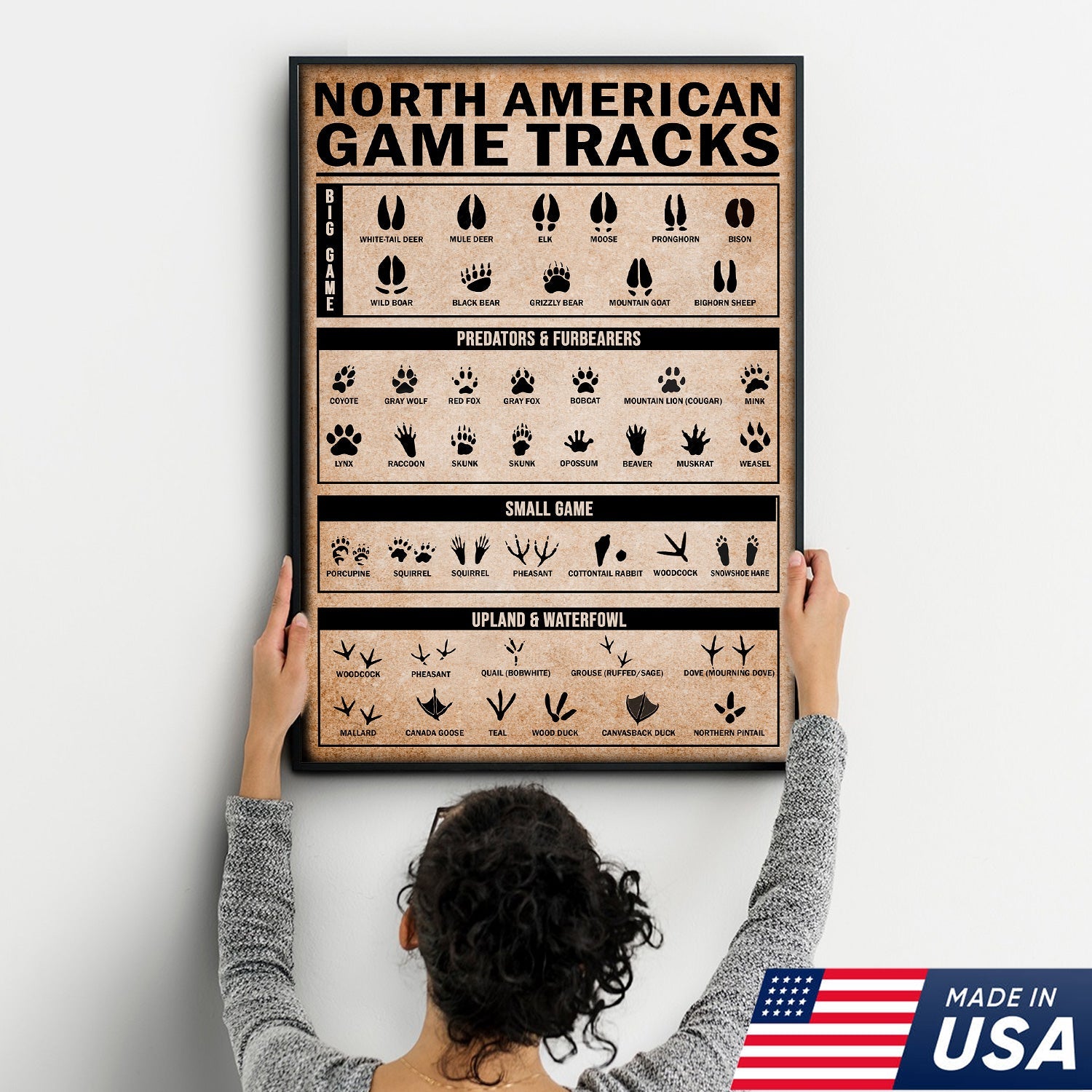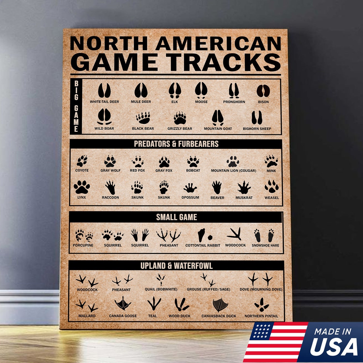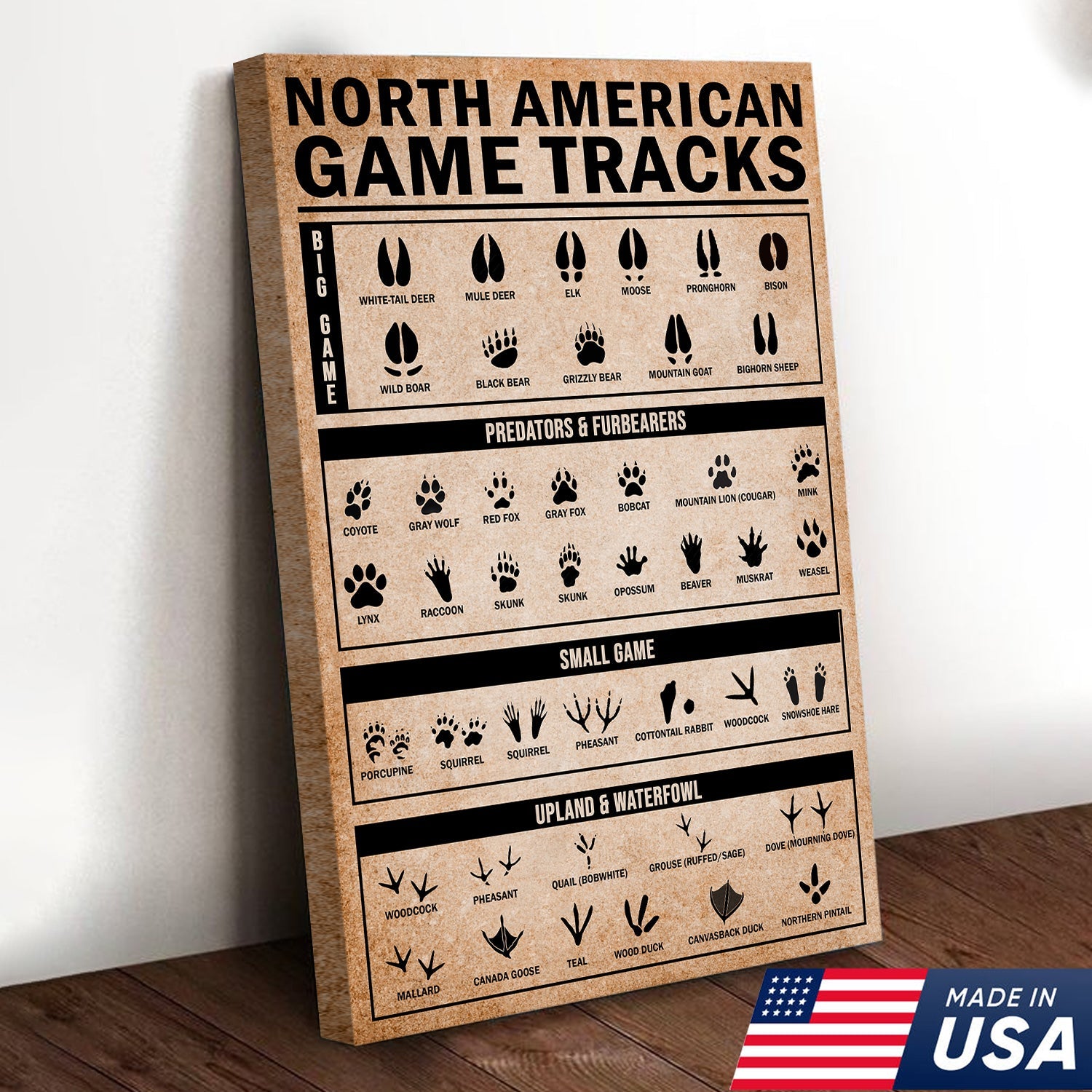North American Game Tracks Canvas, Hunting Lodge Wall Art, Rustic Cabin Canvas Decor