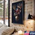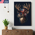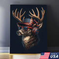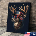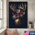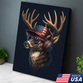 Patriotic Deer Wall Art Canvas – Cool Buck with American Flag Hat and Headphones – Rustic Hunting Lodge Decor USA