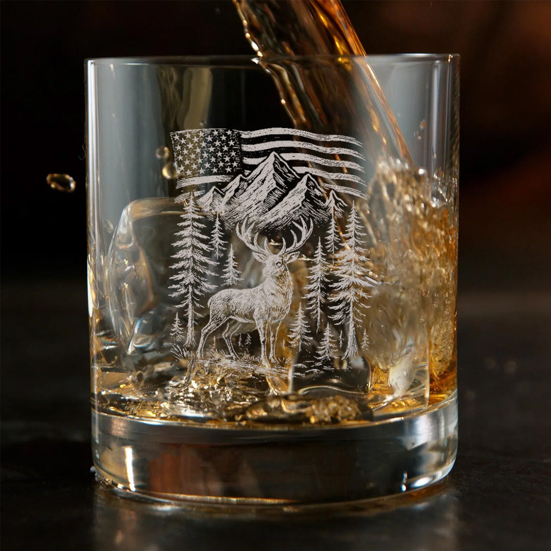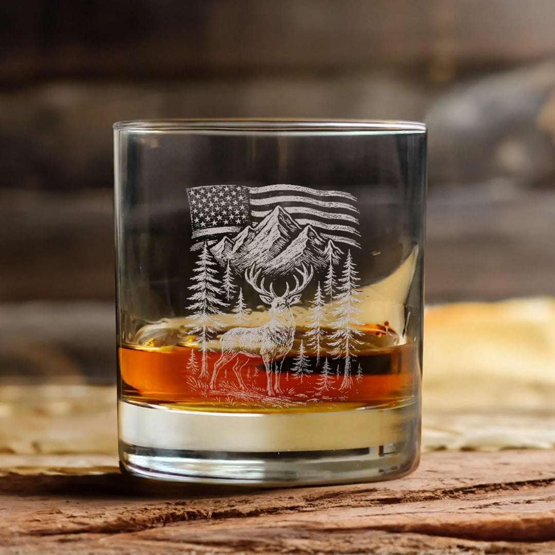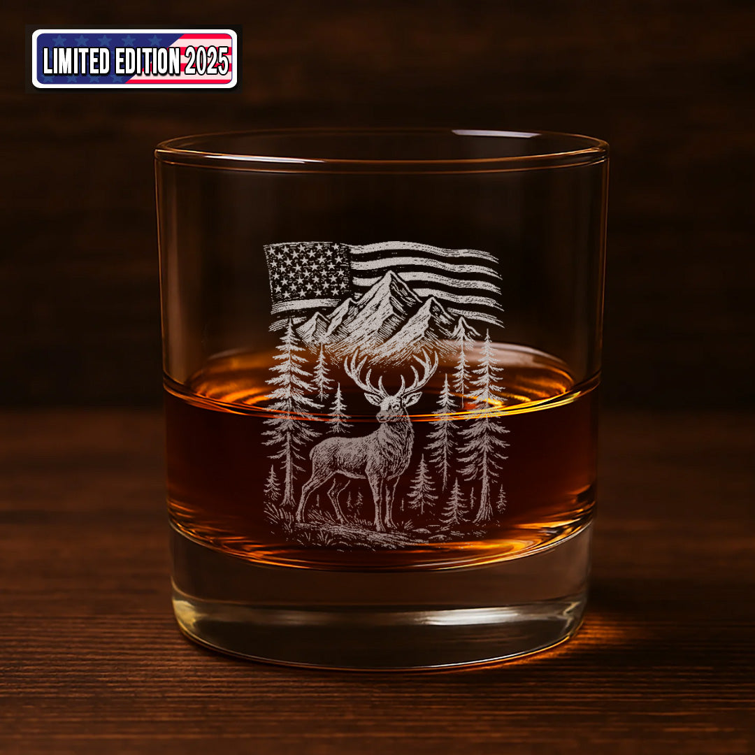 Patriotic Deer Whiskey Glass – Custom Engraved American Flag Hunting Gift for Outdoorsmen 2025